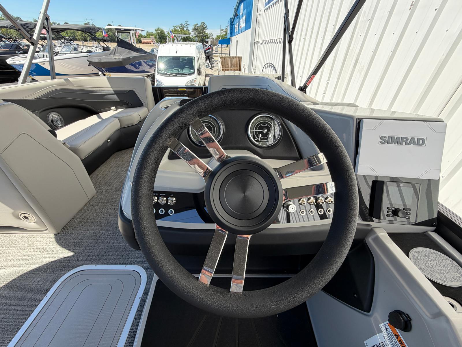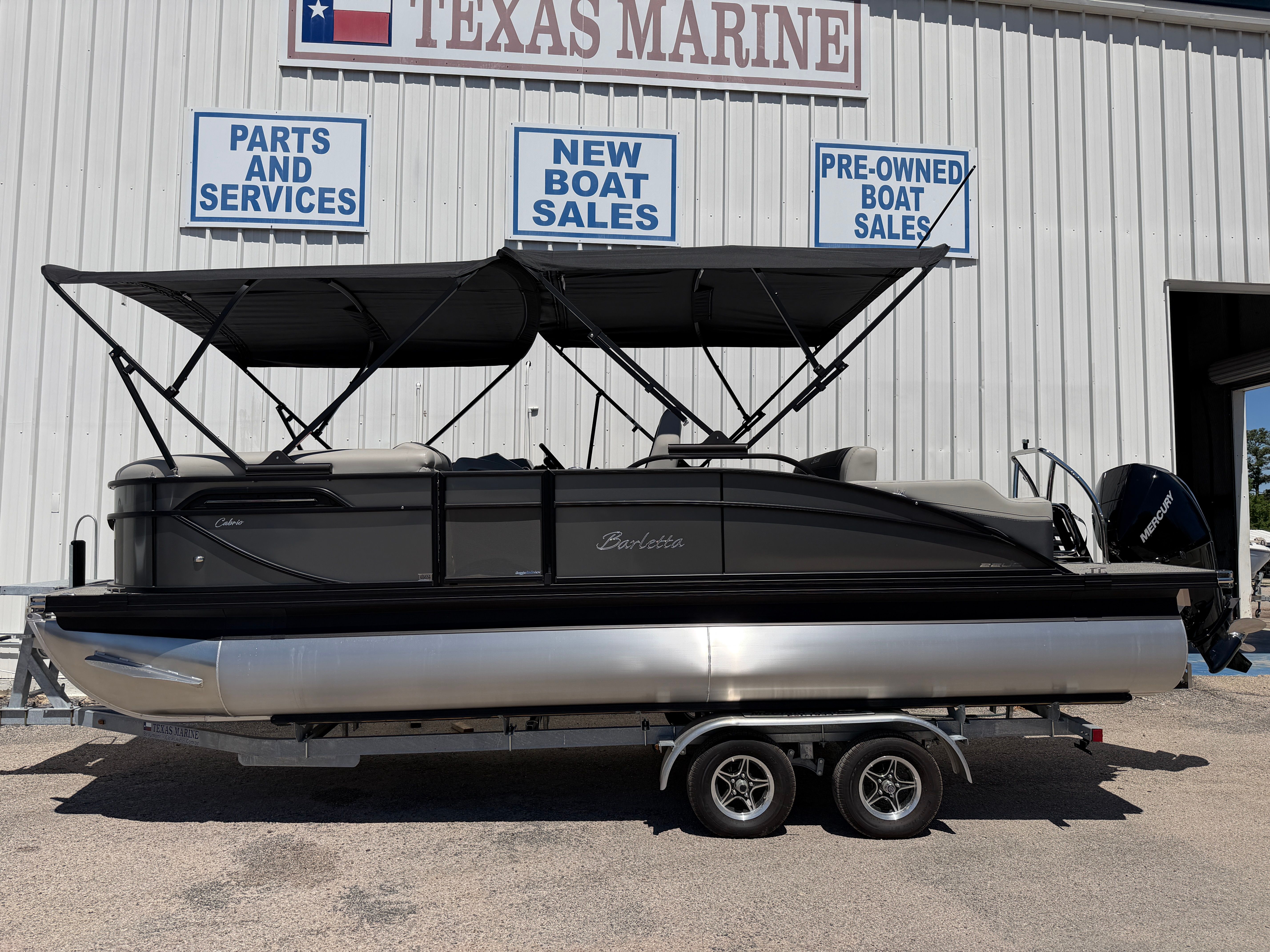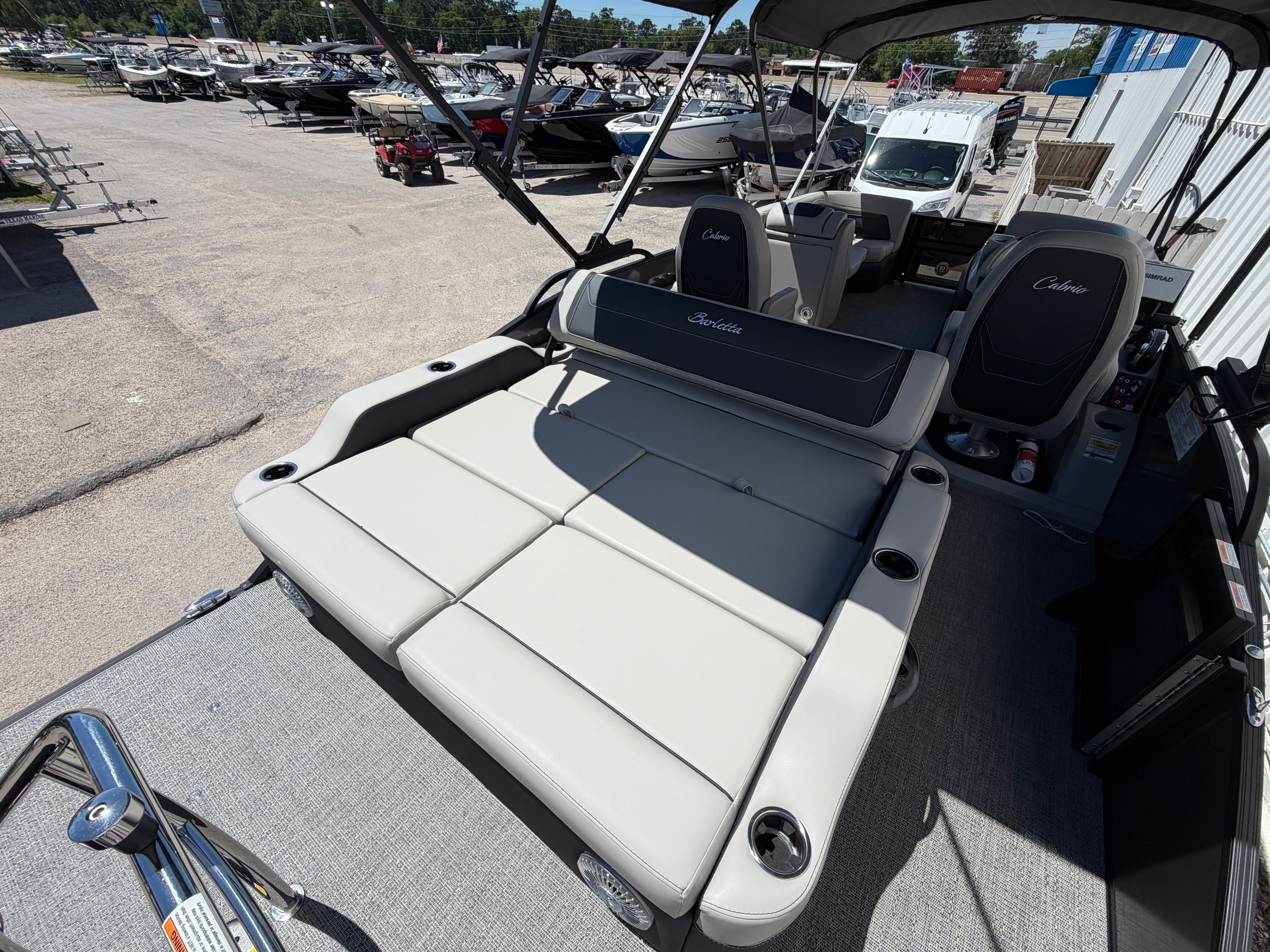 The Barletta Cabrio C22UC is as practical as it is stylish. The midship storage included in the triple toon package offers ample space for life jackets, water toys, and other essentials, keeping your deck tidy and your gear within easy reach. The power assist steering makes docking and maneuvering a breeze, reducing stress and allowing you to focus on having fun.Fuel efficiency is enhanced by the advanced Mercury FourStroke engine, so you can spend more time on the water and less time at the pump. The durable flooring and high-quality materials are designed to withstand the rigors of regular use, ensuring your pontoon boat remains in top condition for years to come. The double bimini provides flexible shade options, making it easy to adapt to changing weather and keep everyone comfortable.