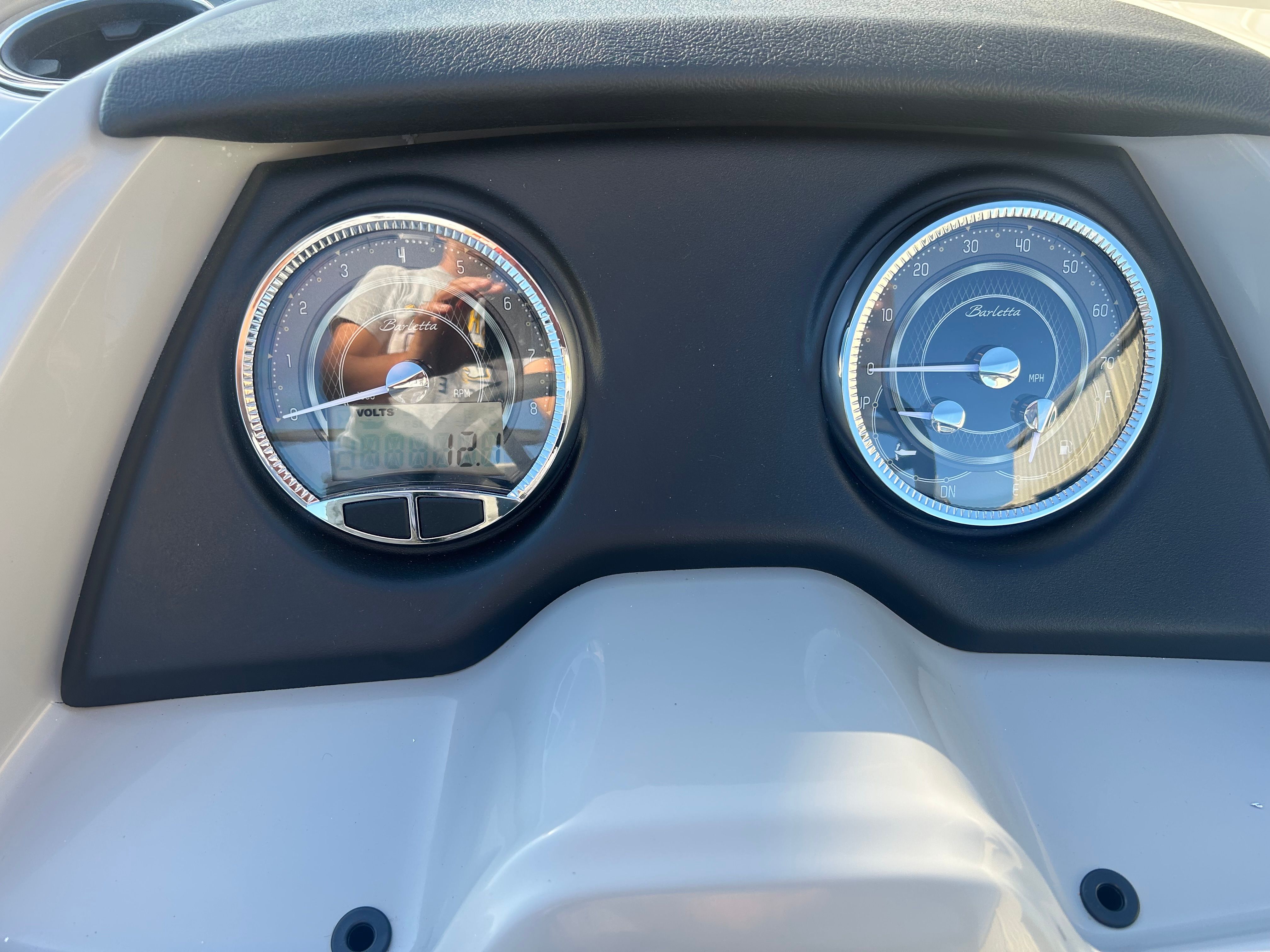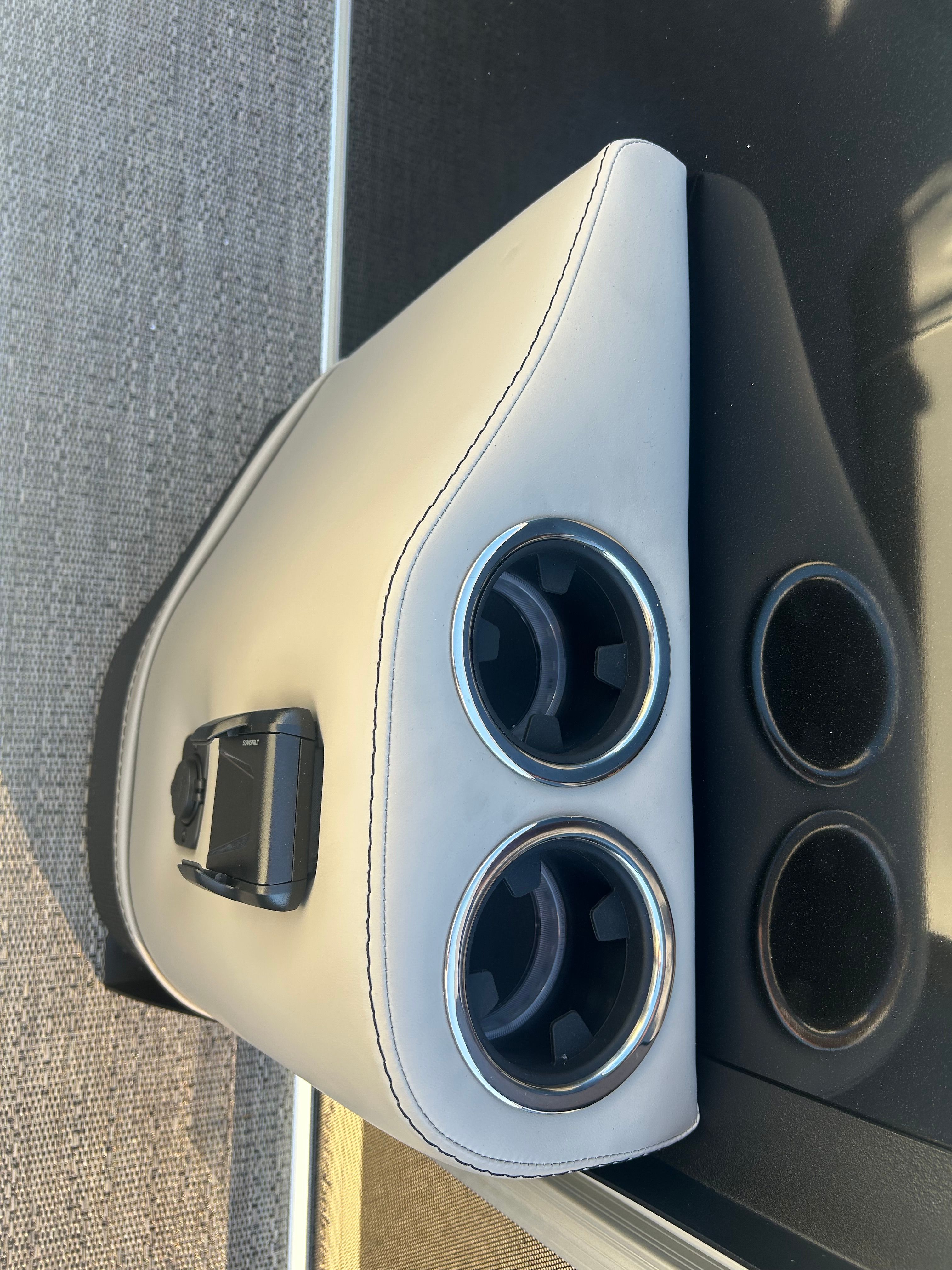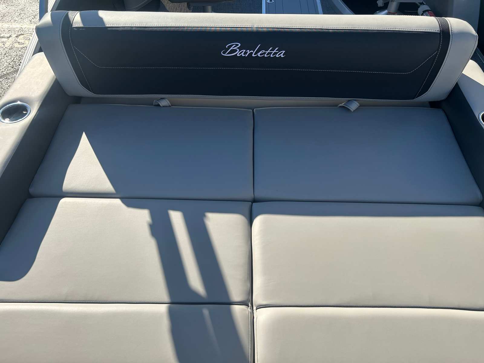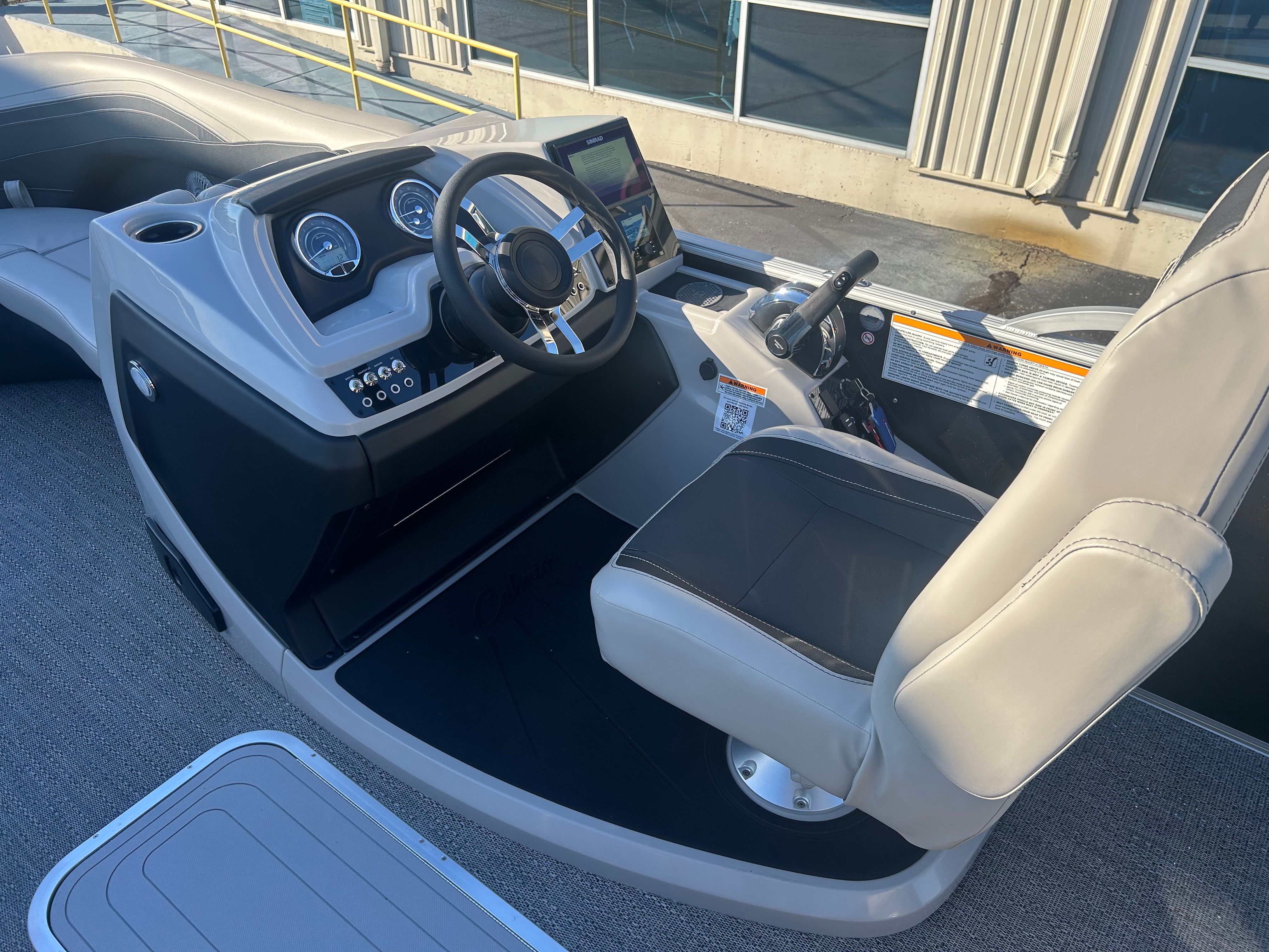 The Barletta Cabrio C22UC is loaded with features that elevate your boating experience. The Triple Toon Package with midship storage maximizes stability and buoyancy, allowing for a smoother ride even in choppier conditions. The midship storage compartment provides ample space for stowing gear, water toys, and essentials, keeping the deck clutter-free and organized.The interior of the Cabrio C22UC is a showcase of luxury and functionality. The Marquesan Gray with Onyx furniture offers plush seating and a contemporary look, while the Amore Gray flooring is both stylish and easy to maintain. The interior RGB lighting package creates a customizable ambiance, perfect for evening cruises or entertaining guests after sunset.At the helm, the Simrad 7" G07 XSR Chartplotter/Multifunction Display puts advanced navigation and system controls at your fingertips. This intuitive display allows you to monitor your route, track your speed, and access vital boat information with ease, ensuring a safe and enjoyable journey every time.The exterior is just as impressive, featuring a stainless steel flag pole with an American flag, adding a patriotic touch and a sense of pride to your boating adventures.