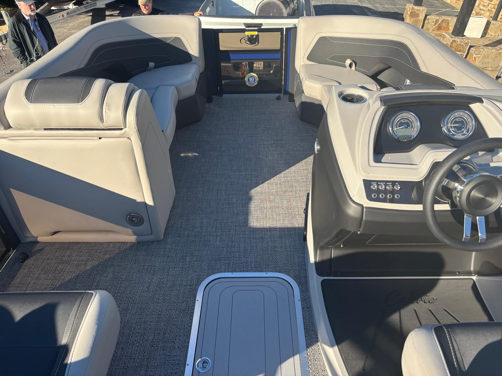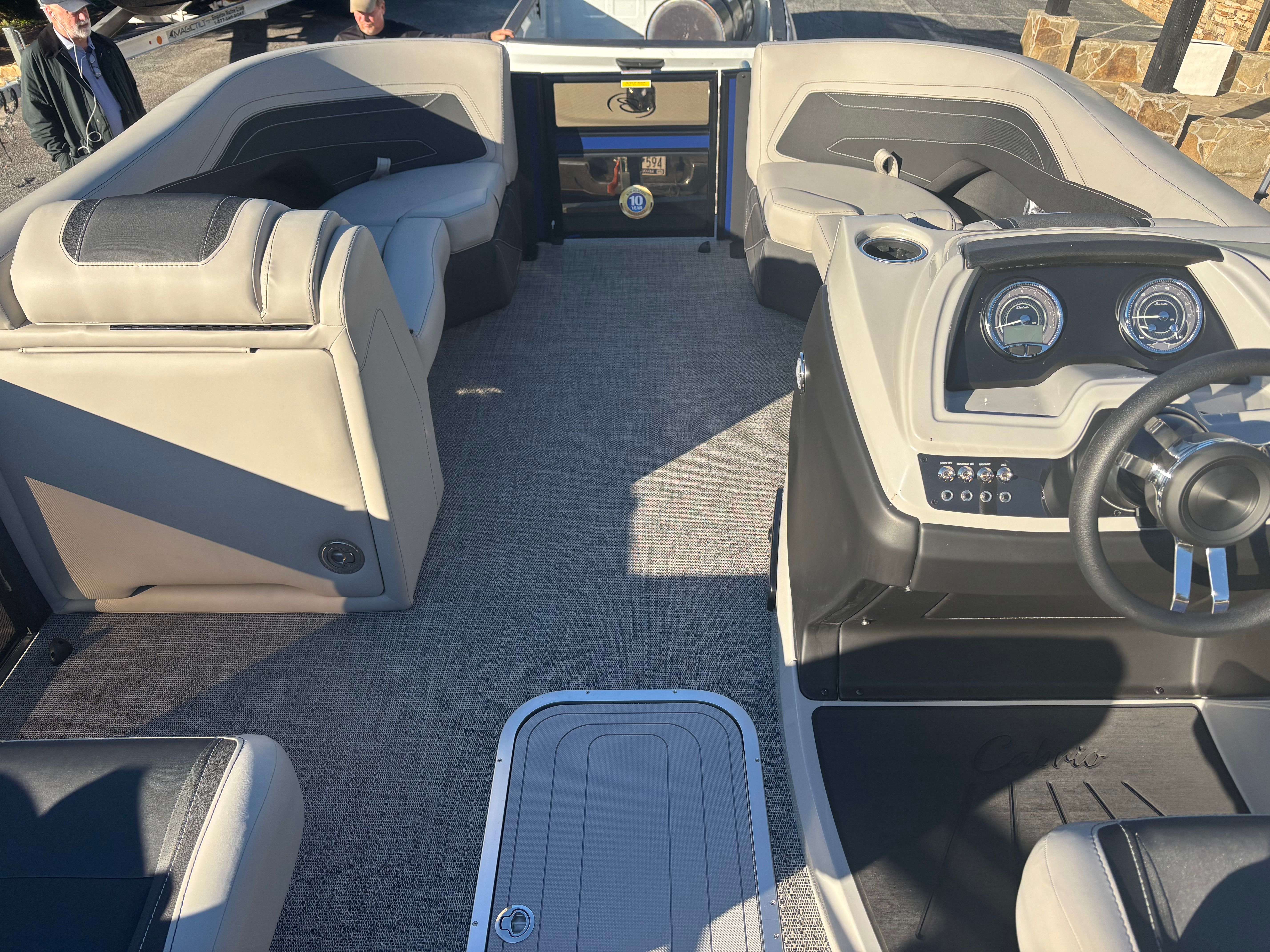 The 2026 Barletta Cabrio C22UC is packed with features designed to maximize your enjoyment and convenience on the water. The Bohemian Blue railskin color, paired with the Blackout Package Cabrio, gives the exterior a modern, sophisticated look that is sure to turn heads. The stainless steel flag pole with an American flag adds a patriotic touch, making every outing feel like a celebration.Step aboard and you’ll be greeted by Marquesan Gray furniture with Onyx accents, creating a refined and inviting atmosphere for you and your guests. The Amore Gray flooring is both stylish and practical, offering durability and easy maintenance for all your on-water activities. At the helm, the Simrad 7" G07 XSR Chartplotter/Multifunction Display provides advanced navigation and system monitoring, ensuring you stay informed and in control throughout your journey.The Triple Toon Package with midship storage not only enhances performance but also provides additional space for storing gear, water toys, or picnic essentials. Every detail, from the stainless steel accents to the thoughtfully designed seating, reflects Barletta’s dedication to quality and comfort.