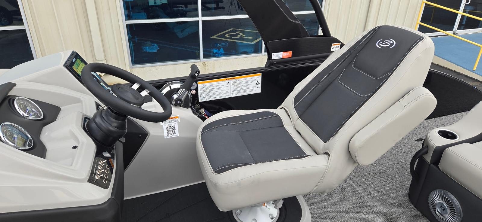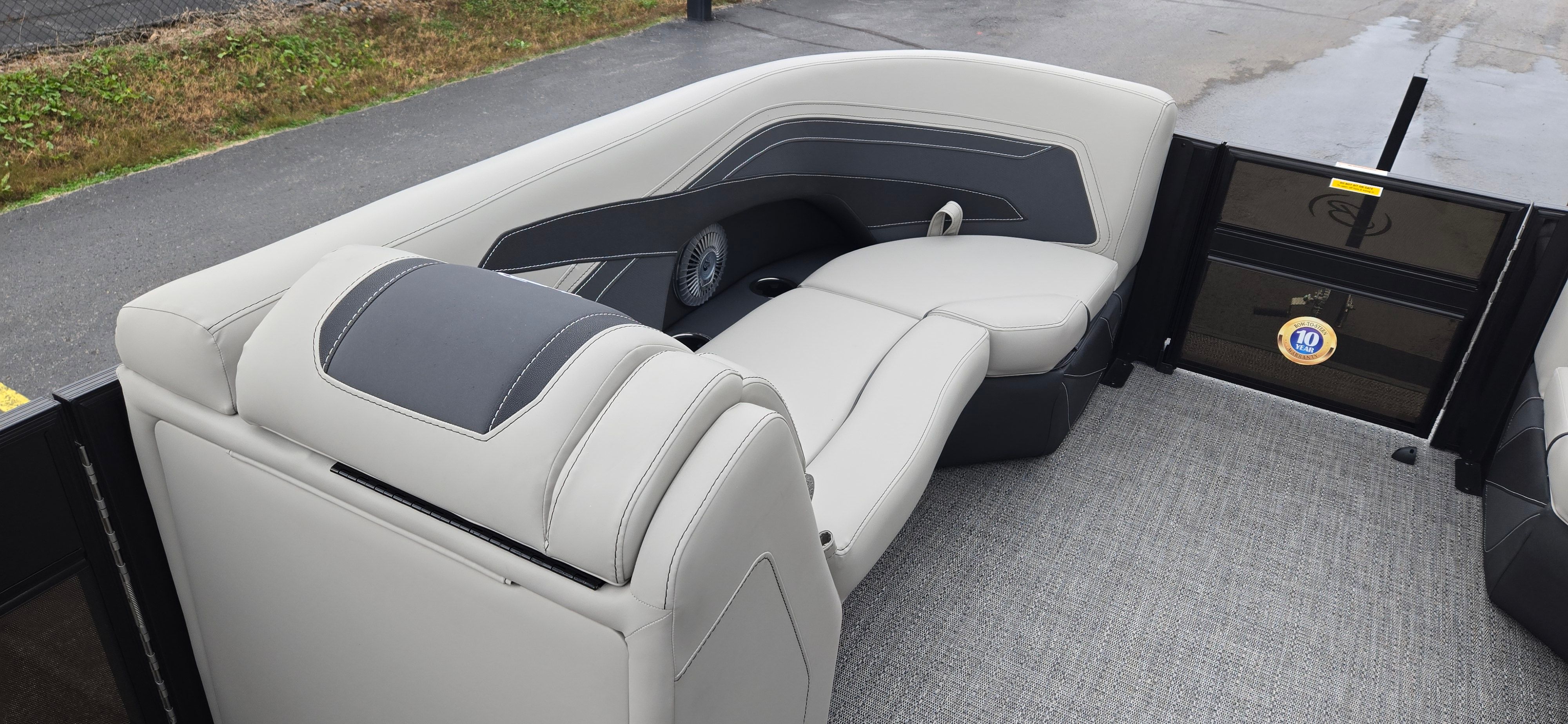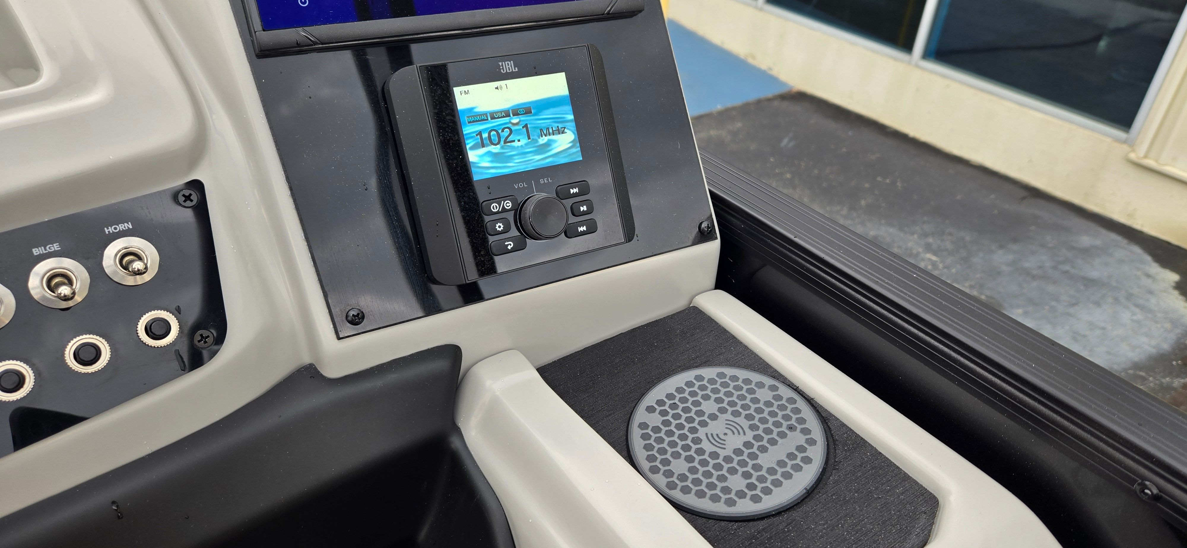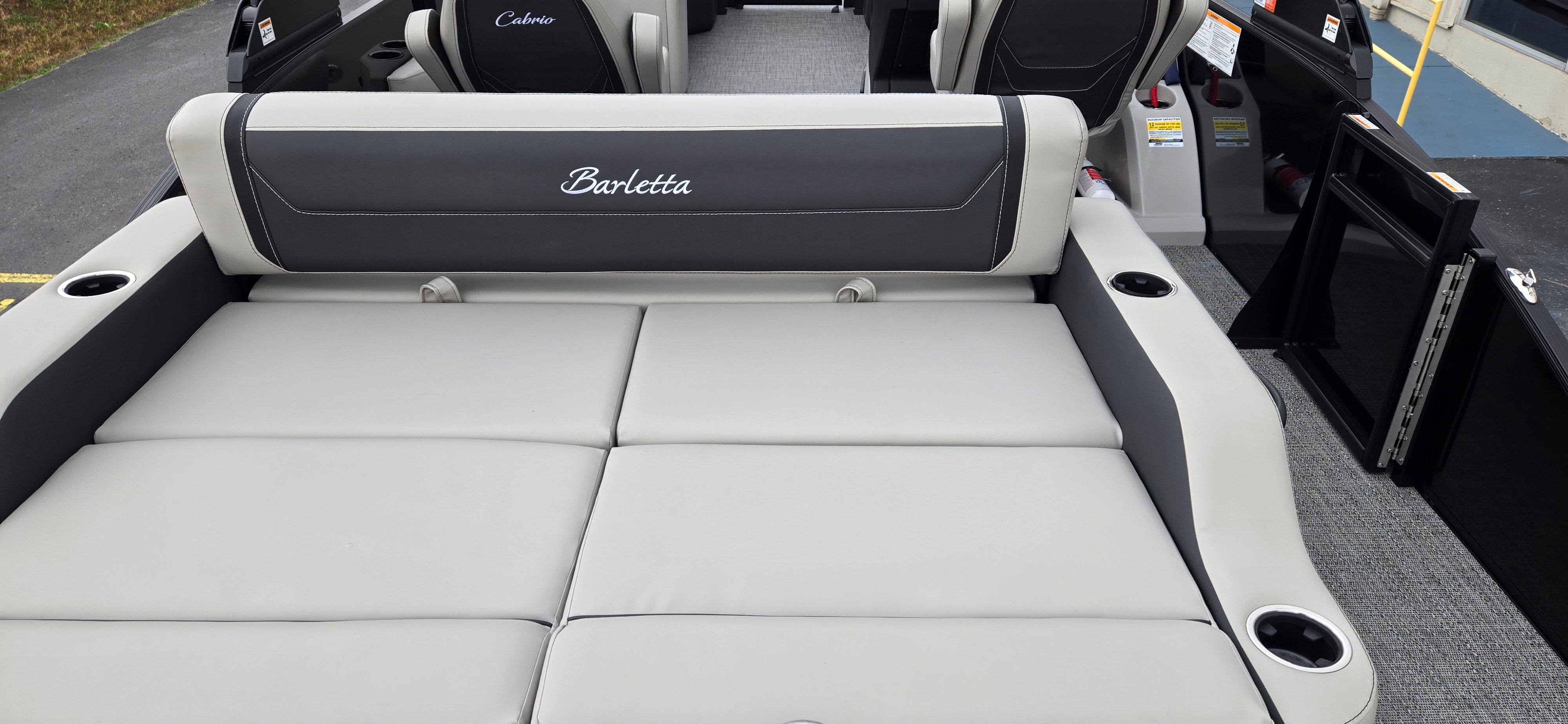 The Barletta Cabrio C22UC is loaded with special features designed to maximize comfort, convenience, and enjoyment. The Triple Toon Package with midship storage provides enhanced stability and additional space for storing gear, water toys, and essentials, keeping the deck clutter-free and organized. The Sport Bimini offers generous shade, allowing you and your guests to relax in comfort even on the sunniest days. The Blackout Package Cabrio not only elevates the boat’s visual appeal but also adds a layer of exclusivity that will turn heads at the marina. The combination of Marquesan Gray with Onyx furniture and Amore Gray flooring creates a modern, inviting environment that’s perfect for entertaining or unwinding after a day of adventure.