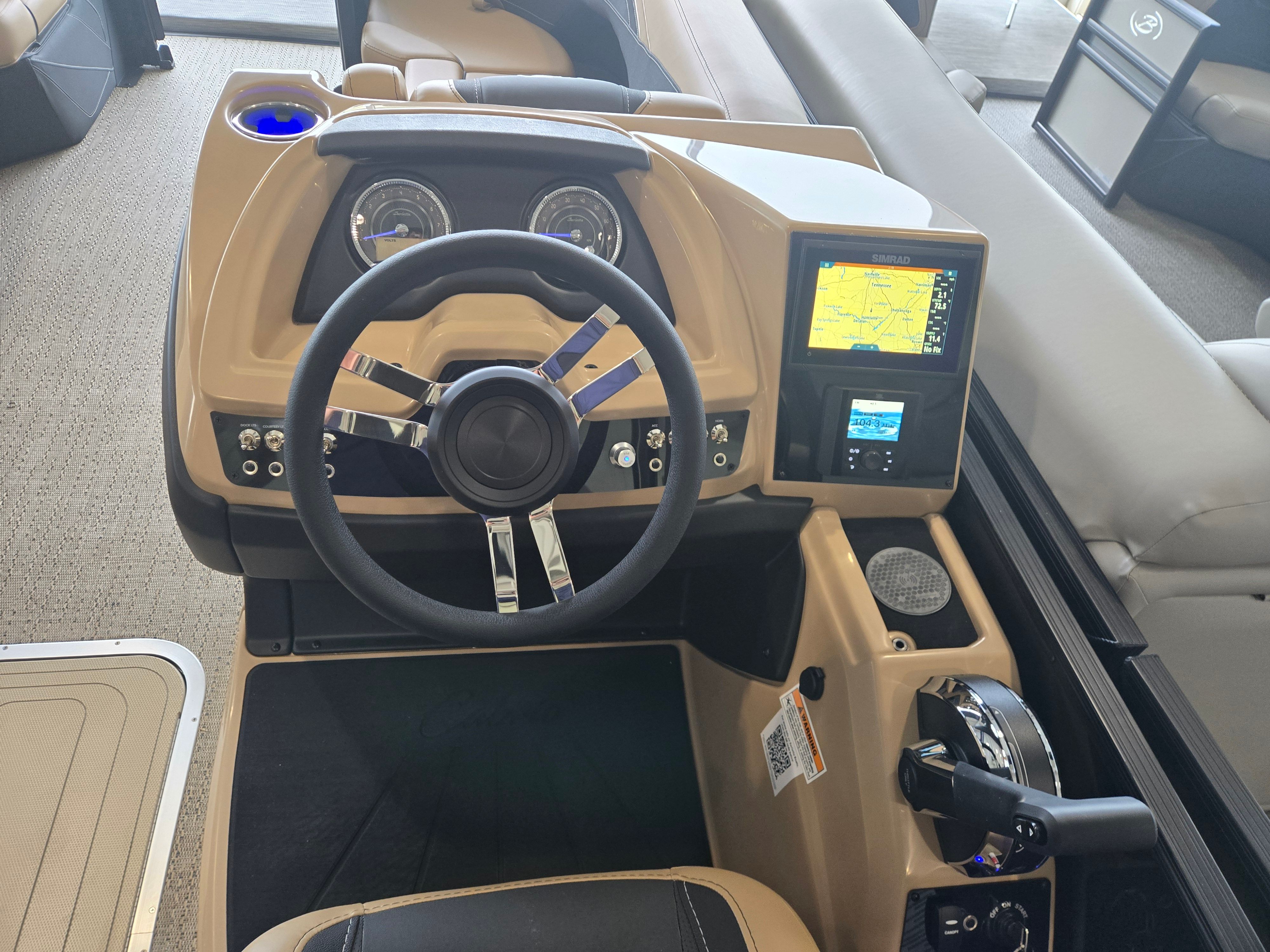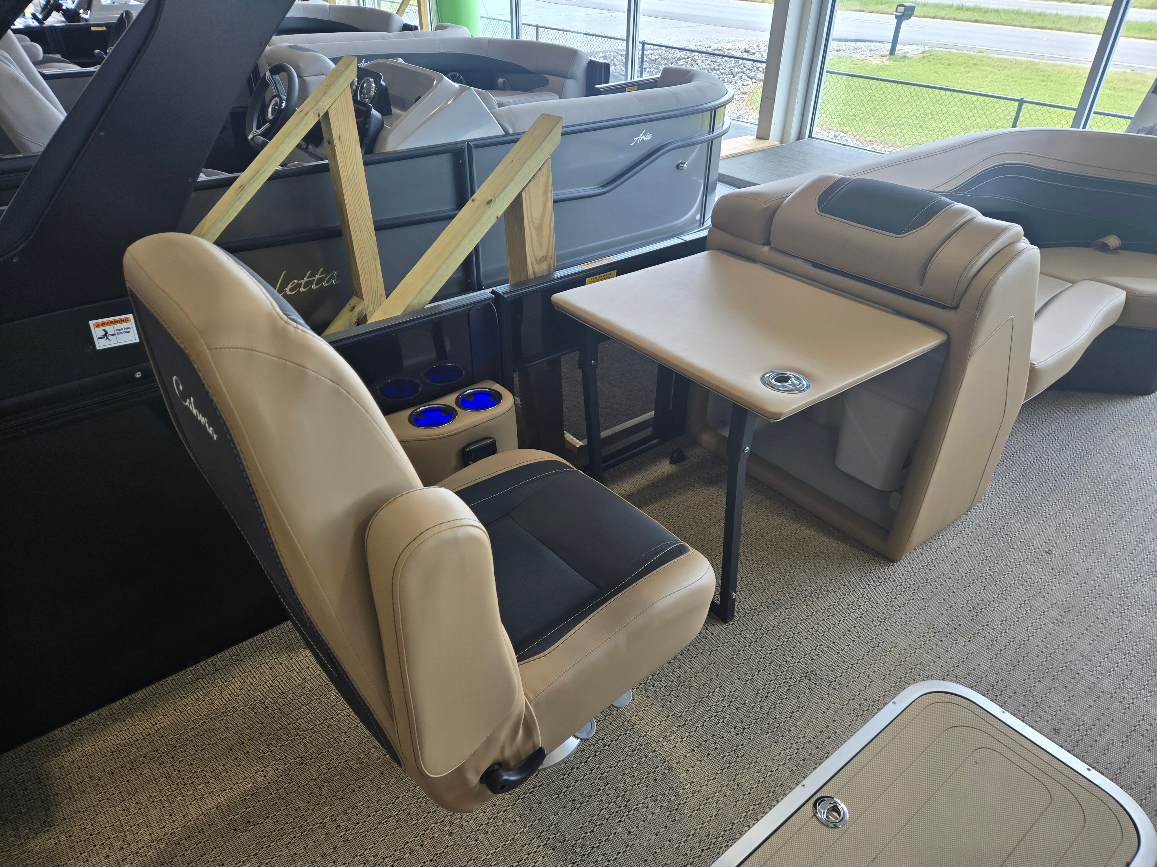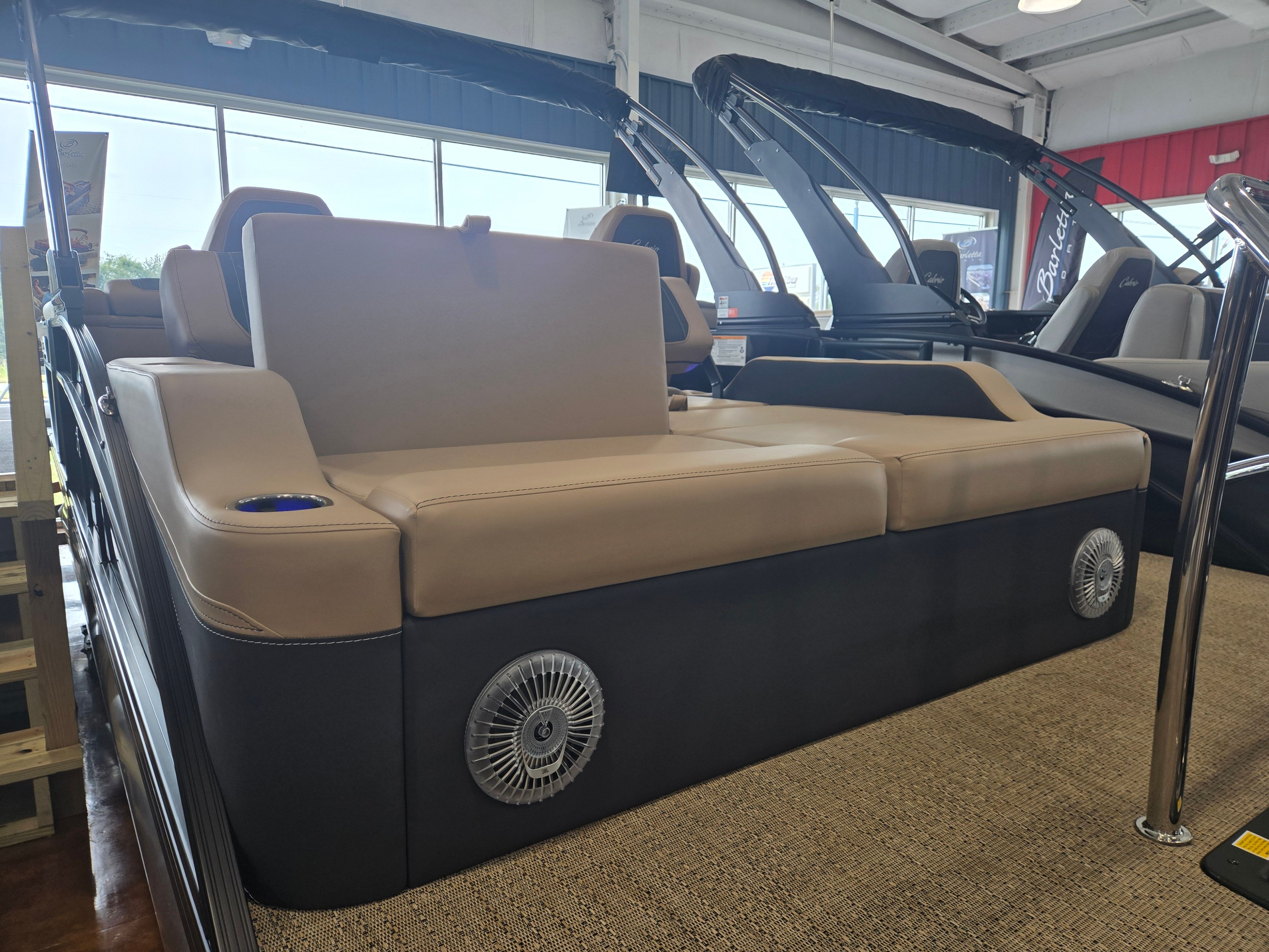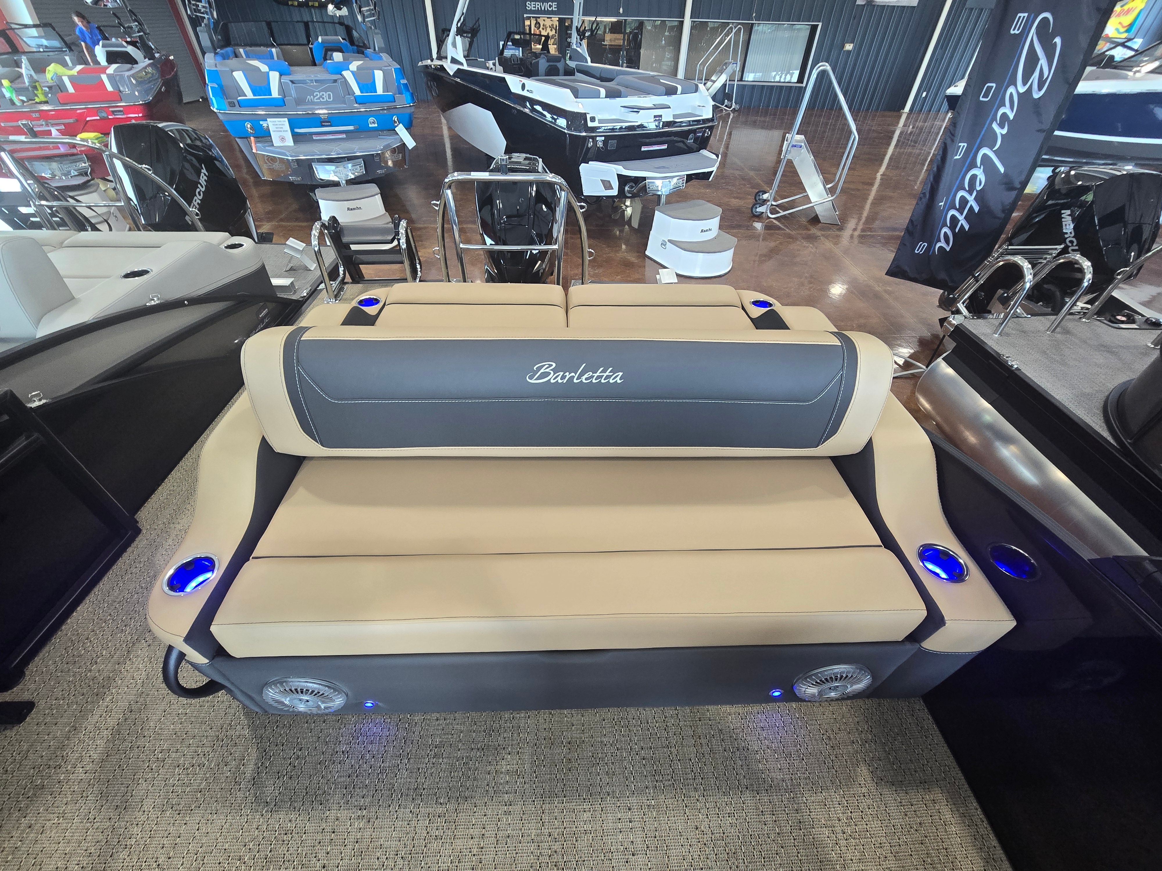 The Cabrio C22UC shines in a variety of scenarios, making it a versatile choice for any boating enthusiast. Imagine spending sunny afternoons with family, cruising across the lake while everyone enjoys the spacious seating and luxurious amenities. Host unforgettable gatherings with friends, complete with music, snacks, and laughter as you relax on the plush Carmella Tan furniture.For those who love fishing, the ample storage and stable platform make it easy to bring along gear and tackle, while the powerful engine ensures you reach your favorite spots quickly. If luxury getaways are more your style, the elegant design and premium features create a resort-like atmosphere right on the water. Whether you’re seeking adventure, relaxation, or social connection, the Barletta Cabrio C22UC adapts to your needs and enhances every experience.