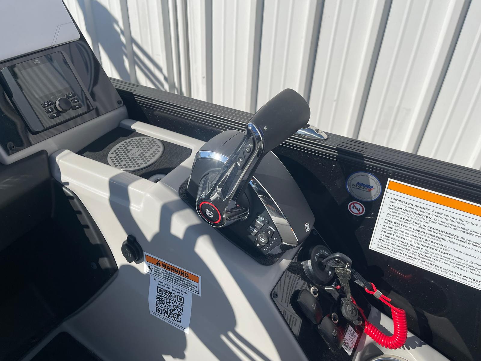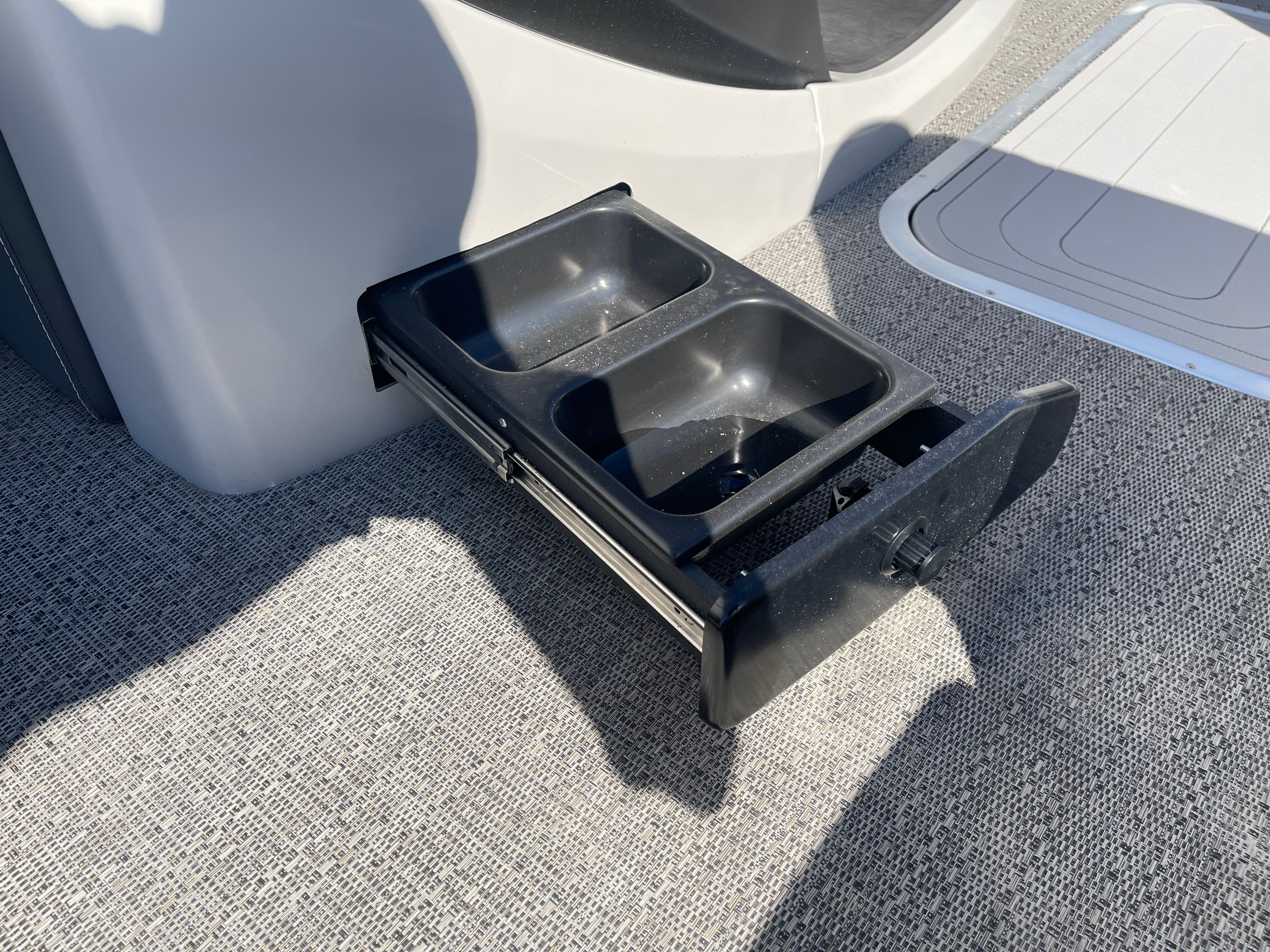 Powering the Barletta Cabrio C24CC is a robust Mercury (D) 250L Verado V8 engine, delivering an impressive 250 horsepower. With only 1 engine hour, this pontoon is practically fresh from the factory, ensuring peak performance and reliability for years to come. The Mercury Digital DTS Pre-Rig for VERADO engines with Vessel Link ensures seamless integration and precise control, while the hydraulic and power assist steering make maneuvering effortless, even in tight spaces.The triple toon package with midship storage enhances stability and buoyancy, allowing for smooth rides even in choppier waters. Whether you’re cruising at a leisurely pace or picking up speed for watersports, the Cabrio C24CC offers a thrilling and responsive experience on the water.