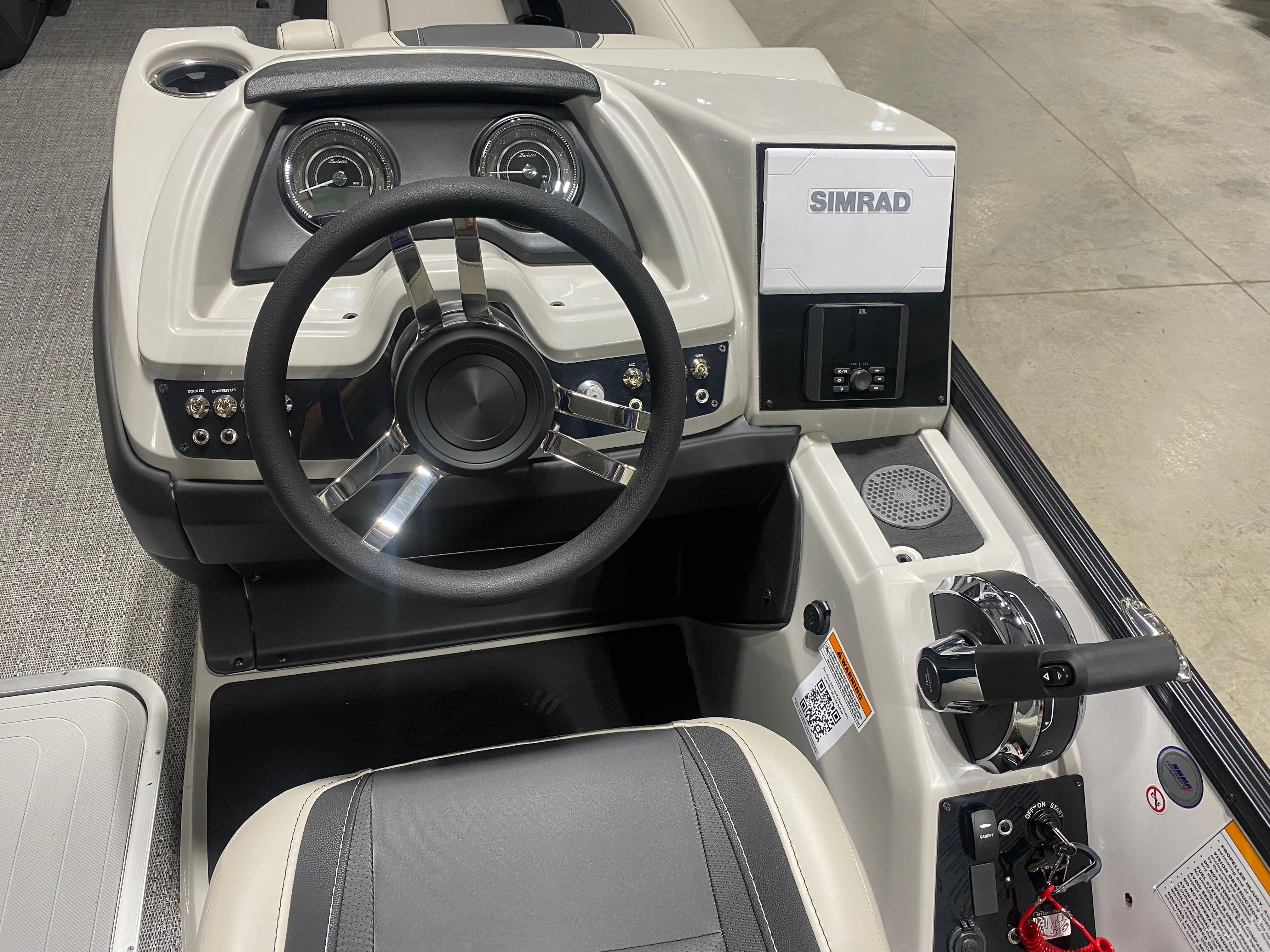 The Barletta Cabrio C24Q is designed with practicality in mind, making ownership as enjoyable as it is convenient. The midship storage compartment is perfect for stowing away life jackets, water toys, and other essentials, keeping the deck tidy and maximizing your usable space. The intuitive mechanical pre-rig with power assist makes docking and maneuvering a breeze, even for less experienced boaters.Fuel efficiency is another key advantage of the Cabrio C24Q, thanks to the advanced Mercury FourStroke engine. Spend more time on the water and less time at the fuel dock, making every outing more enjoyable and cost-effective. The durable flooring and high-quality upholstery are easy to clean and maintain, ensuring your pontoon looks great season after season.