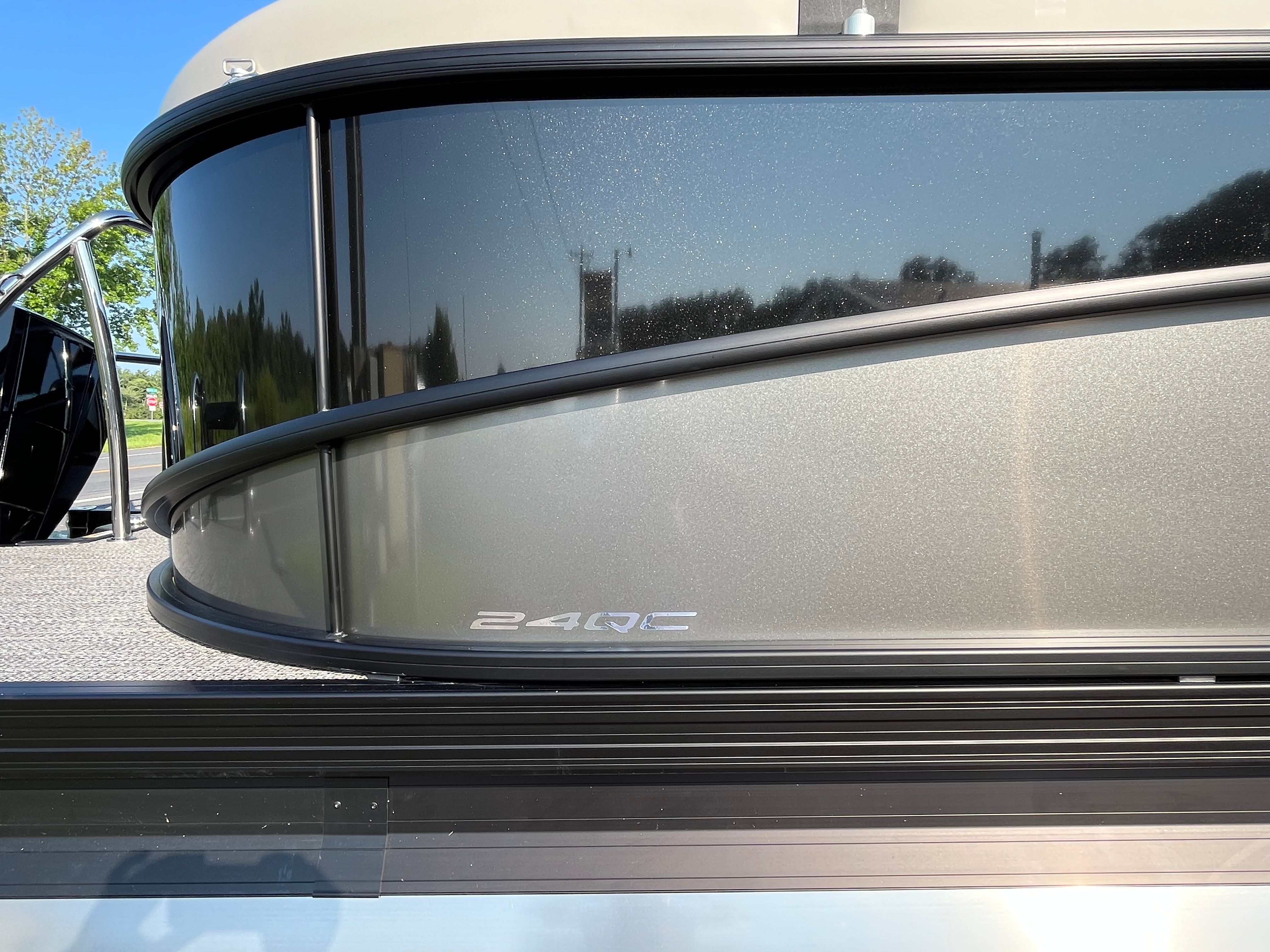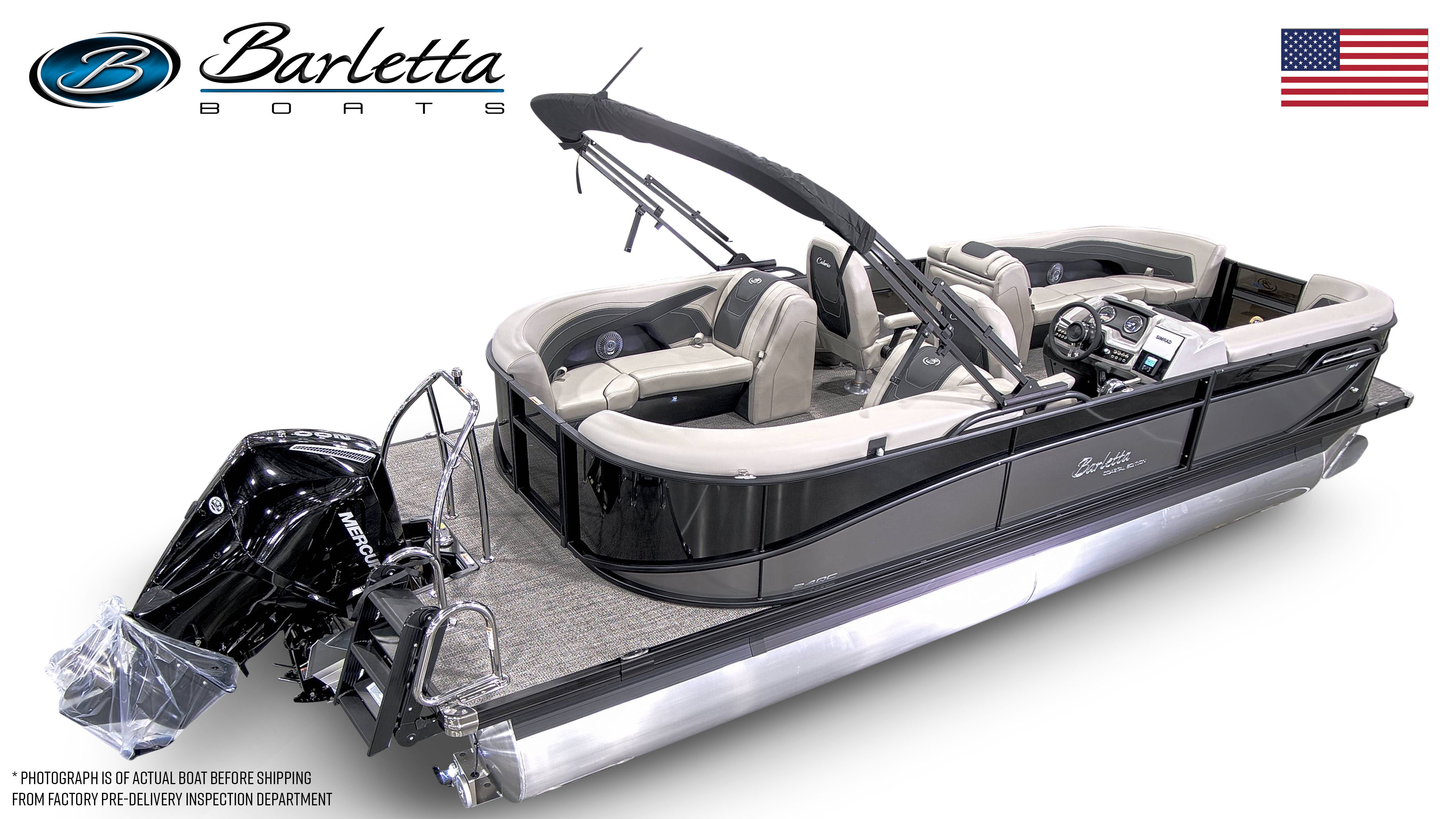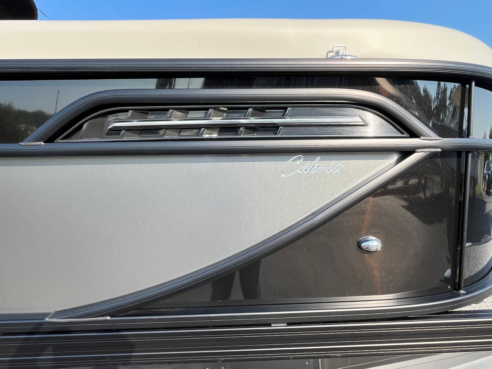 The Barletta Cabrio C24QC is packed with special features that set it apart from other pontoon boats for sale. The striking Railskin Color in Black Diamond, accented by Gray Moonstone, gives this pontoon a bold and sophisticated look. The Blackout Package Cabrio adds a touch of modern flair, while the Marquesan Gray/Onyx furniture provides both comfort and style. The Amore Gray flooring is not only visually appealing but also easy to maintain, ensuring your boat stays looking fresh season after season.The Coastal Edition Cabrio is designed to withstand the elements, making it ideal for a variety of water conditions. The Triple Toon Package with midship storage offers enhanced stability and additional space for your gear, making it easy to bring along everything you need for a day on the water. The rigged engine with a stainless steel prop ensures you get the most out of the Mercury 200L FourStroke, delivering smooth acceleration and reliable power.