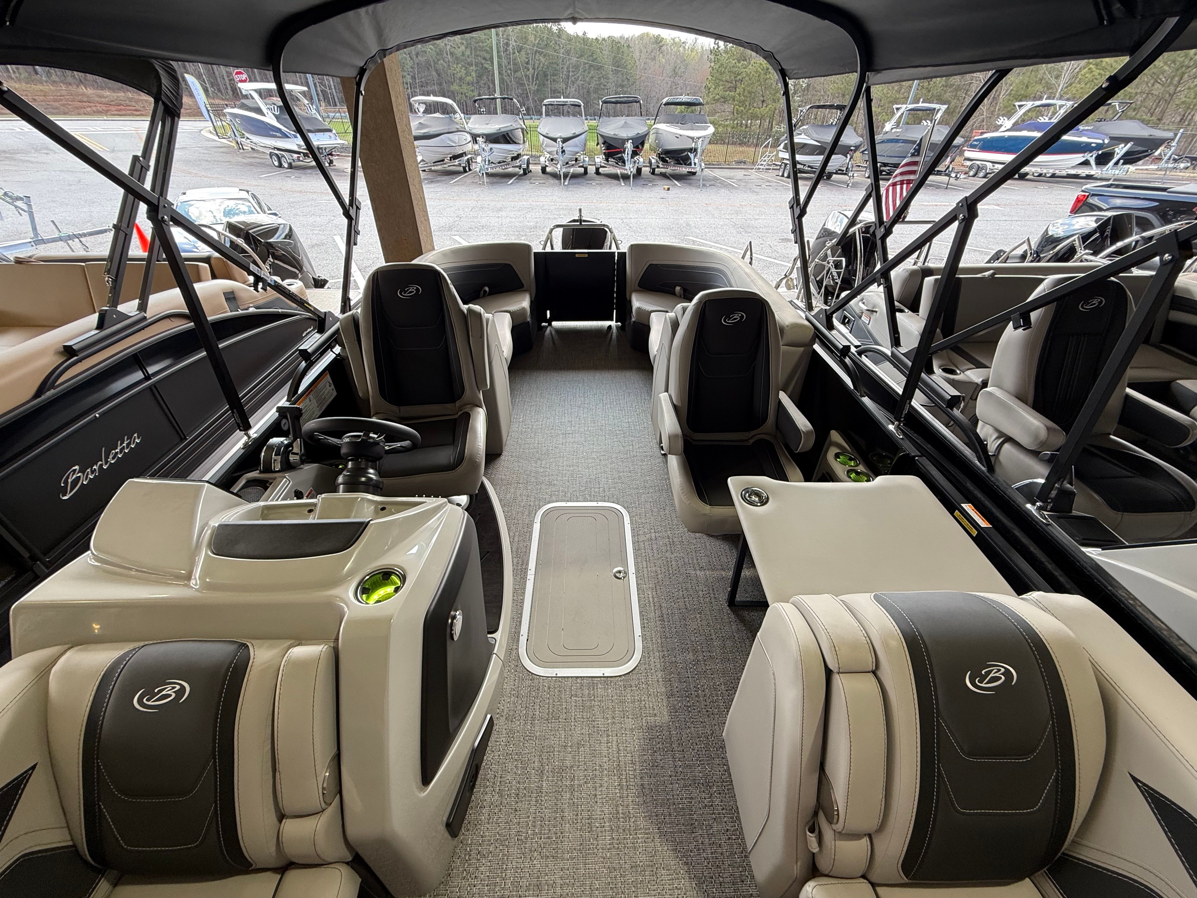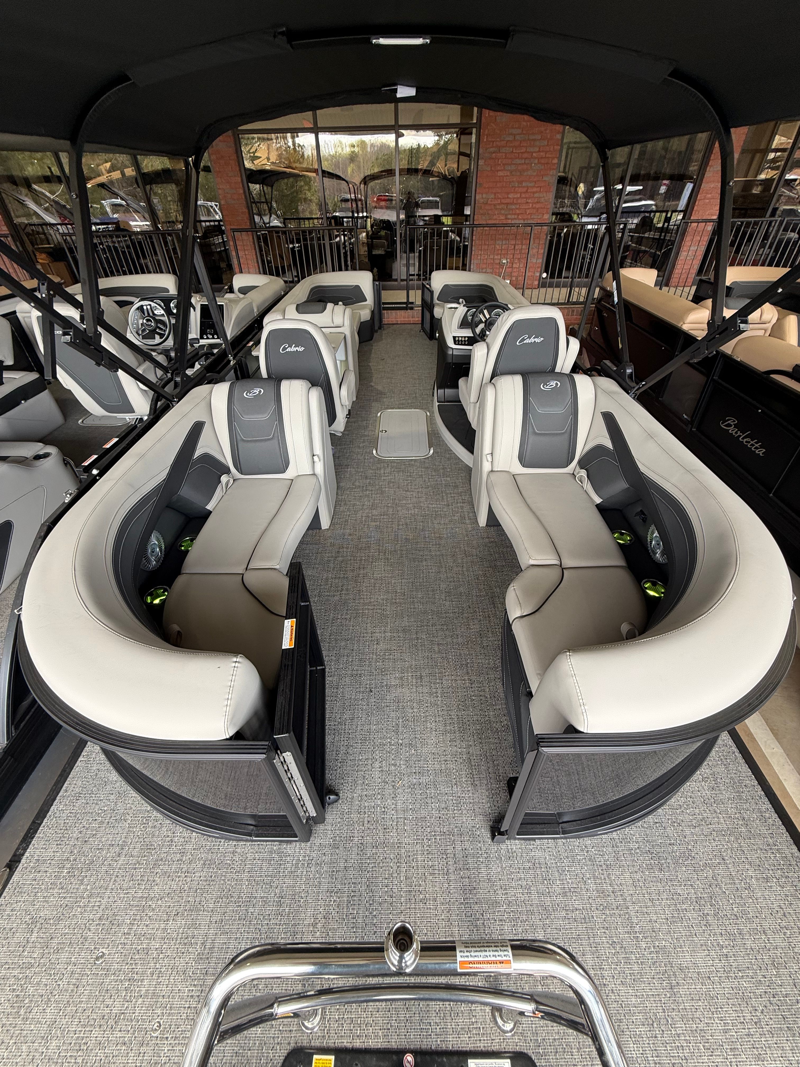 The Cabrio C24QC shines in a variety of scenarios, making it a versatile choice for any boating enthusiast. Picture family outings where everyone has room to relax, play, and enjoy the scenery. Host lively gatherings with friends, complete with music, snacks, and sunset cruises illuminated by vibrant RGB lighting. Take leisurely fishing trips, with plenty of storage for your gear and a stable platform for casting lines.This Barletta boat for sale is also perfect for luxury getaways, offering the comfort and amenities needed for extended days on the water. Whether you’re exploring new lakes, anchoring for a swim, or simply drifting under the stars, the Cabrio C24QC delivers an experience that’s both memorable and rewarding.