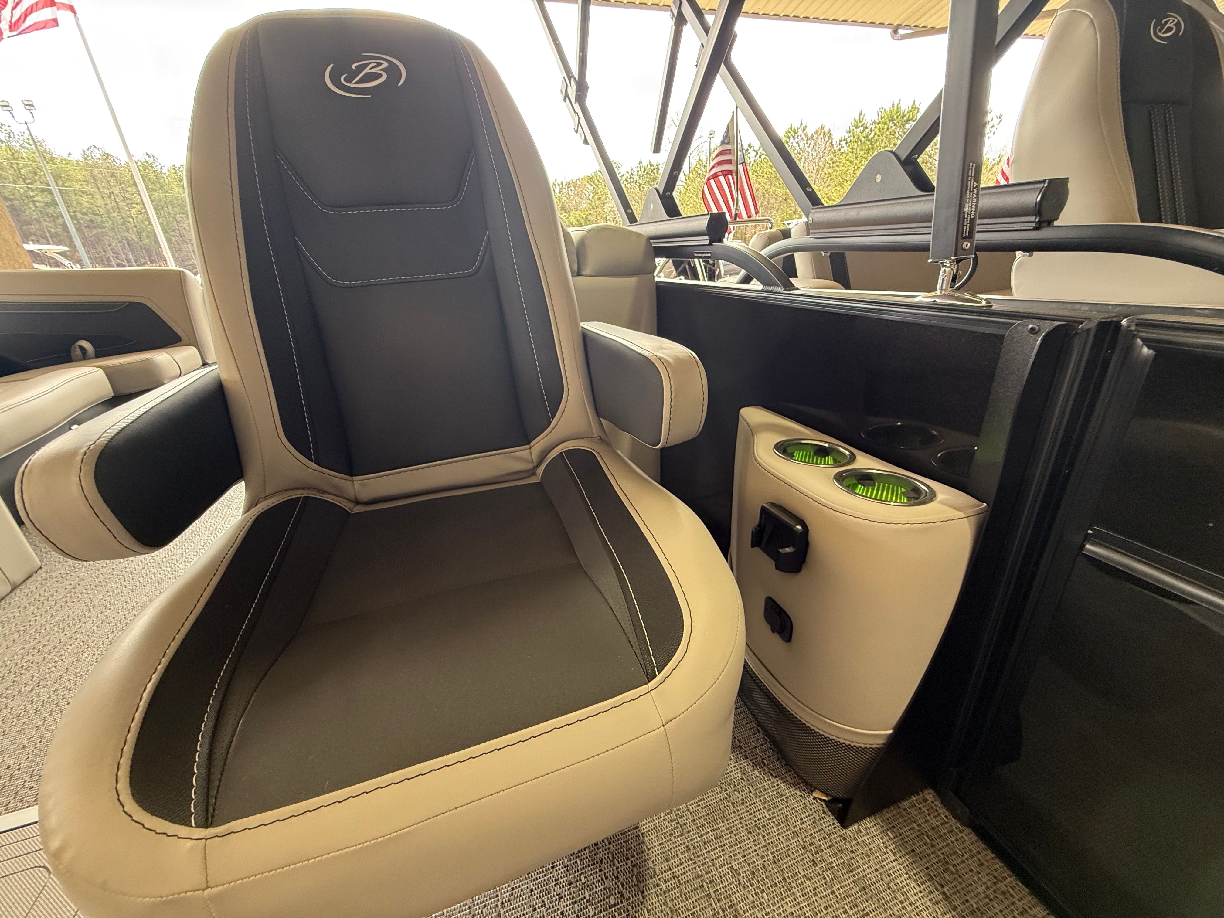 The Barletta Cabrio C24QC is packed with features designed to maximize comfort, convenience, and enjoyment. The Black Diamond Railskin and Blackout Package Cabrio give the exterior a modern, upscale look, while the Marquesan Gray with Onyx furniture provides plush seating for relaxing or entertaining. The Amore Gray flooring is both stylish and durable, standing up to the rigors of active days on the water.The Triple Toon Package with midship storage offers additional space for gear, water toys, or picnic supplies, keeping the deck clutter-free and organized. The Mercury mechanical pre-rig with power assist ensures easy handling, while the rigged engine with a stainless steel prop delivers optimal efficiency and longevity. A stainless steel flag pole with an American flag adds a patriotic touch to your outings, and the interior RGB lighting package creates a customizable ambiance for evening cruises or celebrations.