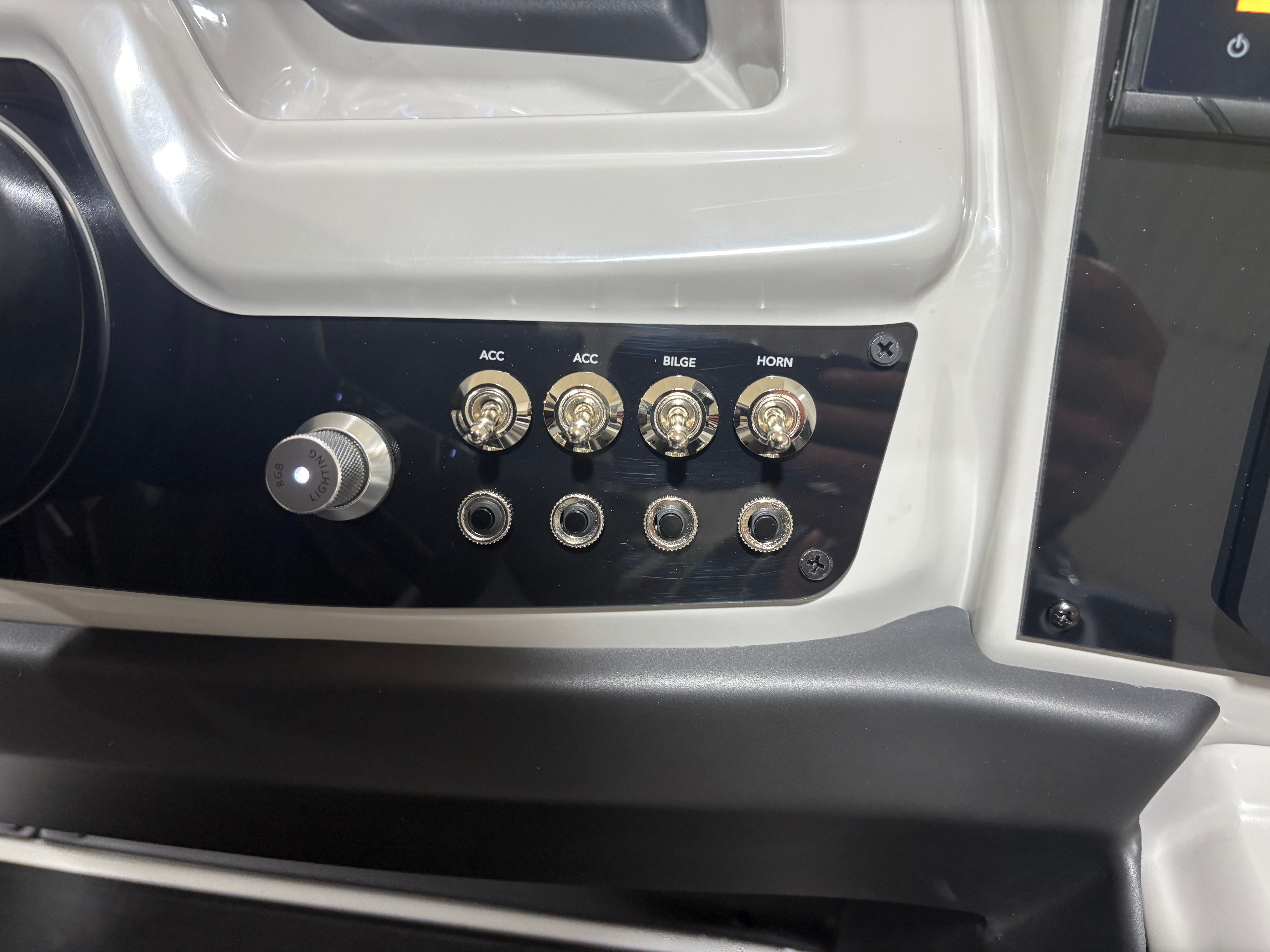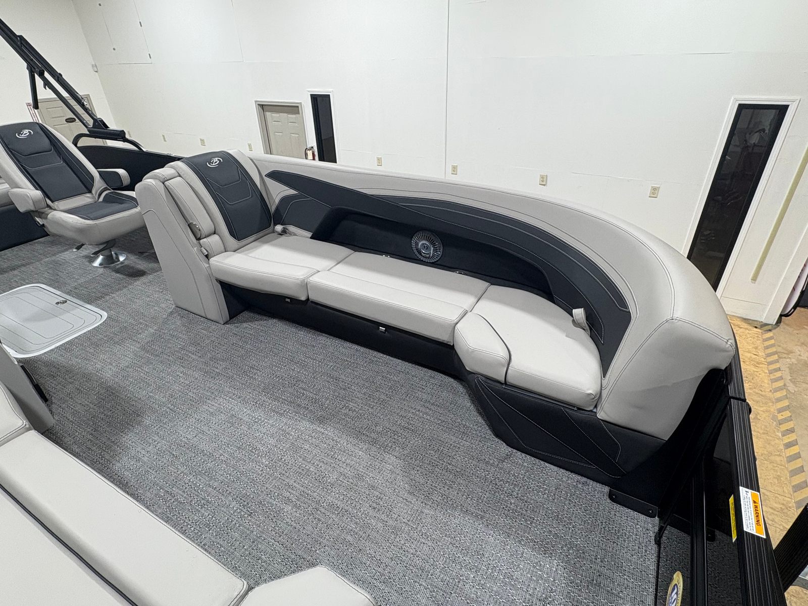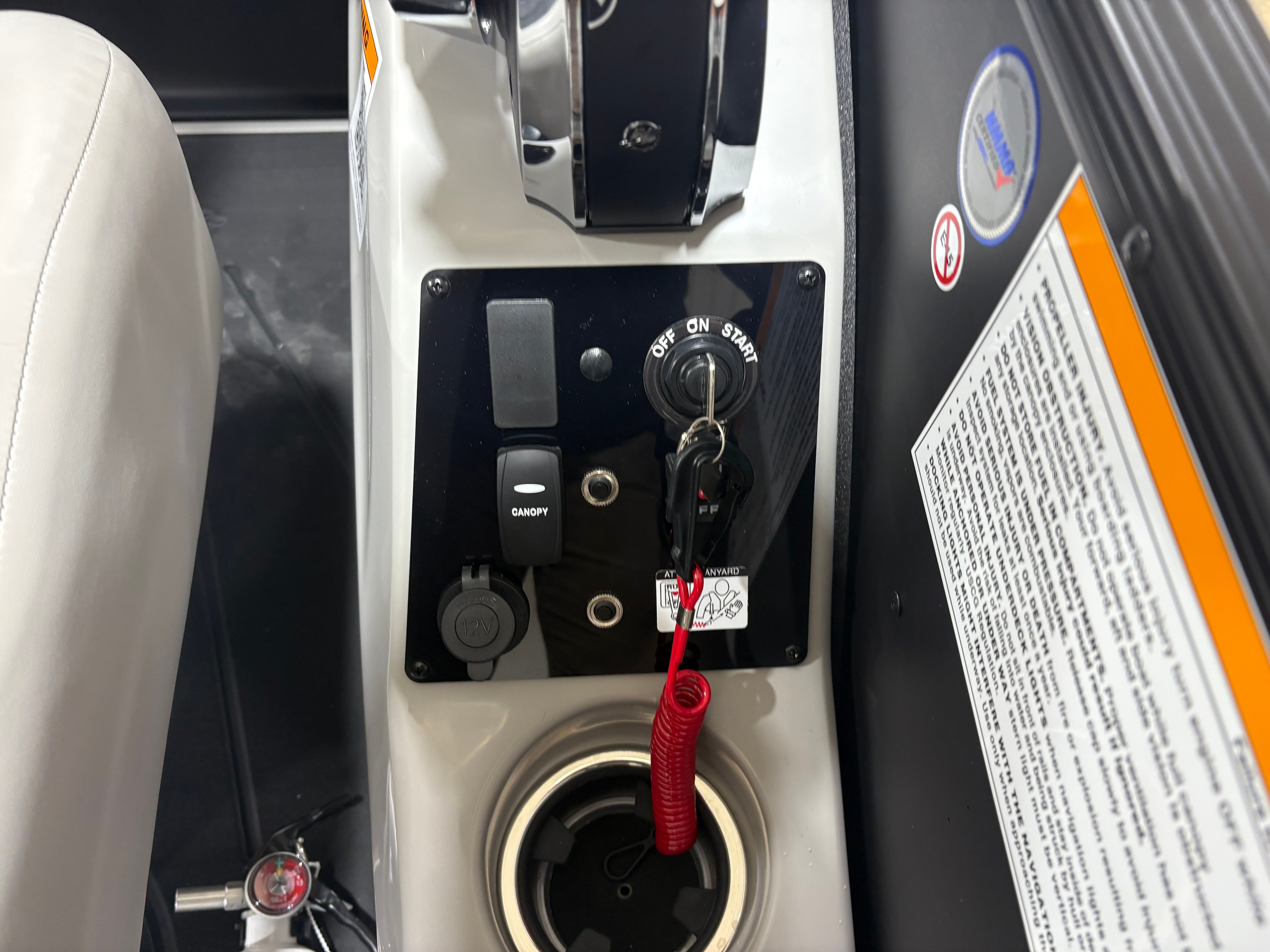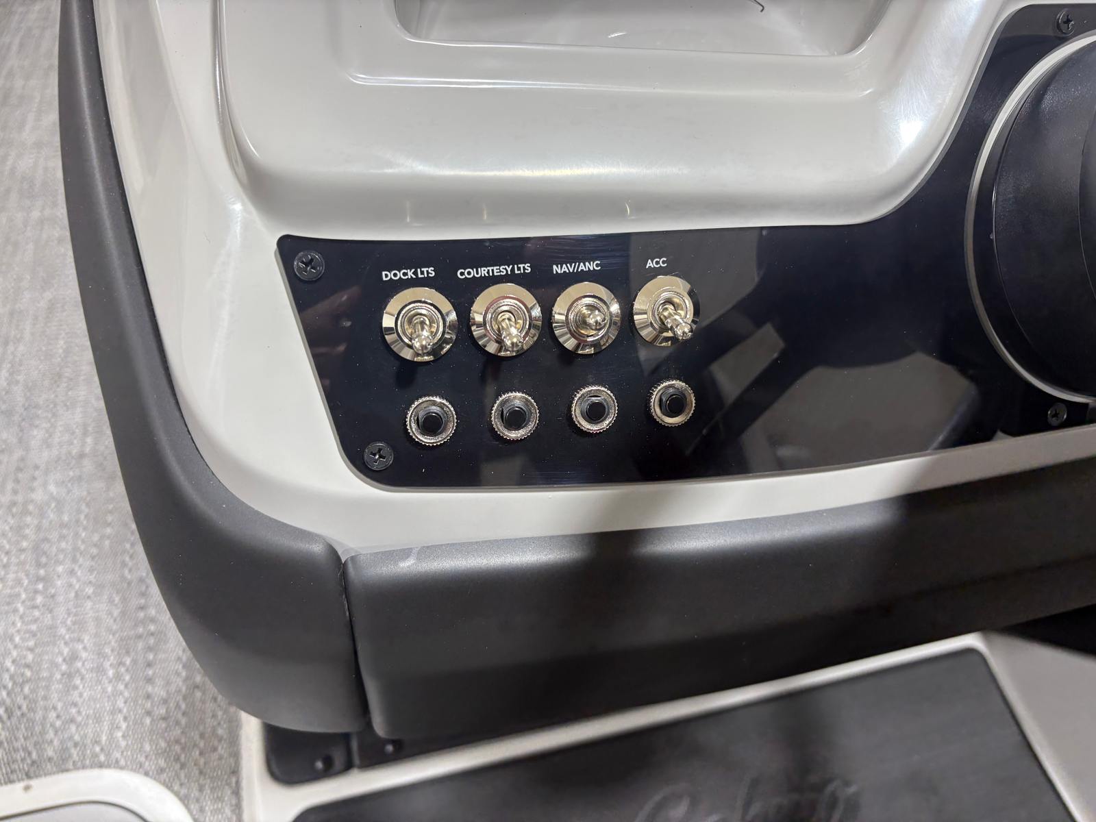 The Barletta Cabrio C24UC is packed with special features that elevate your boating experience. The Matte Black Railskin and Blackout Package Cabrio give the boat a striking, contemporary look, while the Marquesan Gray with Onyx furniture offers plush seating and superior comfort. The Amore Gray flooring is both stylish and practical, providing a non-slip surface that’s easy to clean and maintain. The Triple Toon Package with midship storage adds extra buoyancy and space for gear, ensuring you’re always prepared for a day on the water.Rigging is expertly handled with the Mercury mechanical pre-rig and power assist, complemented by a stainless steel prop for optimal performance. The exterior features a stainless steel flag pole with an American flag, adding a patriotic touch to your outings. Inside, the RGB lighting package creates a customizable ambiance, perfect for evening cruises or festive gatherings.