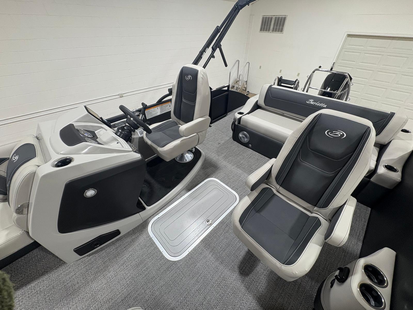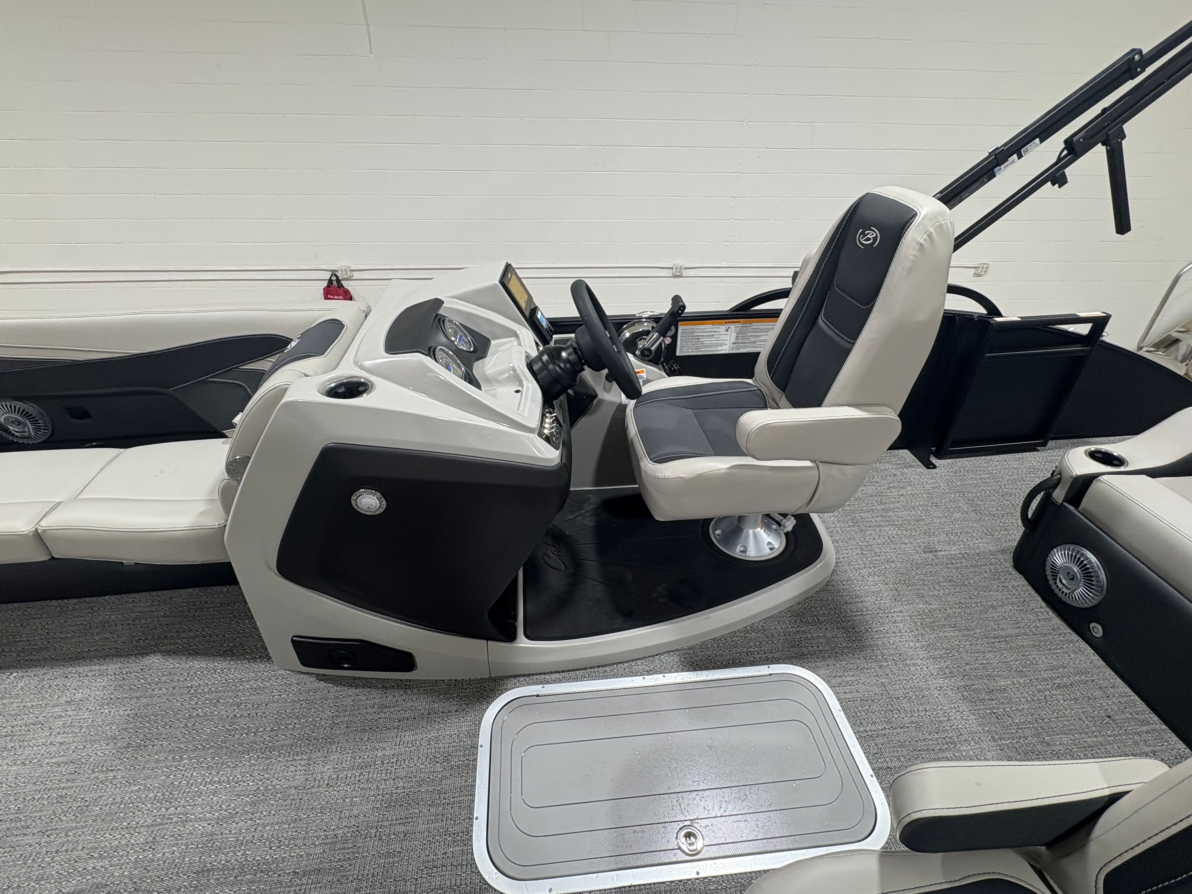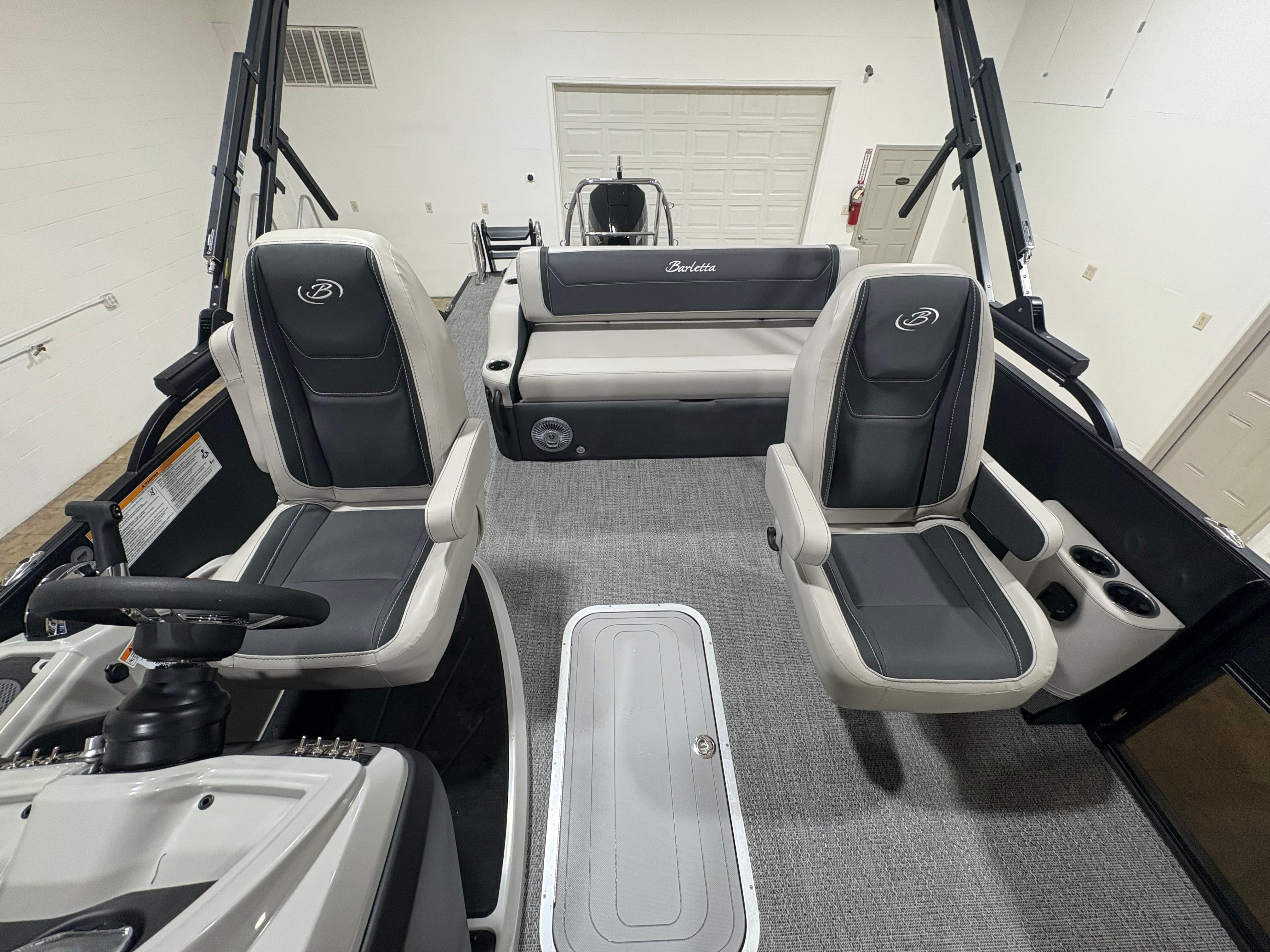 The Barletta Cabrio C24UC is designed with practicality in mind, making ownership easy and enjoyable. The midship storage in the Triple Toon Package provides ample space for life jackets, water toys, and other essentials, keeping your deck clutter-free and organized. The flooring is not only attractive but also durable and simple to maintain, ensuring your boat looks great season after season.Docking and maneuvering are a breeze thanks to the Mercury power assist system, which offers responsive steering and effortless control. The stainless steel prop enhances fuel efficiency and reliability, so you can spend more time enjoying the water and less time worrying about maintenance. Whether you’re planning a quick afternoon escape or a full day of adventure, the Cabrio C24UC is equipped to handle all your boating needs with ease.