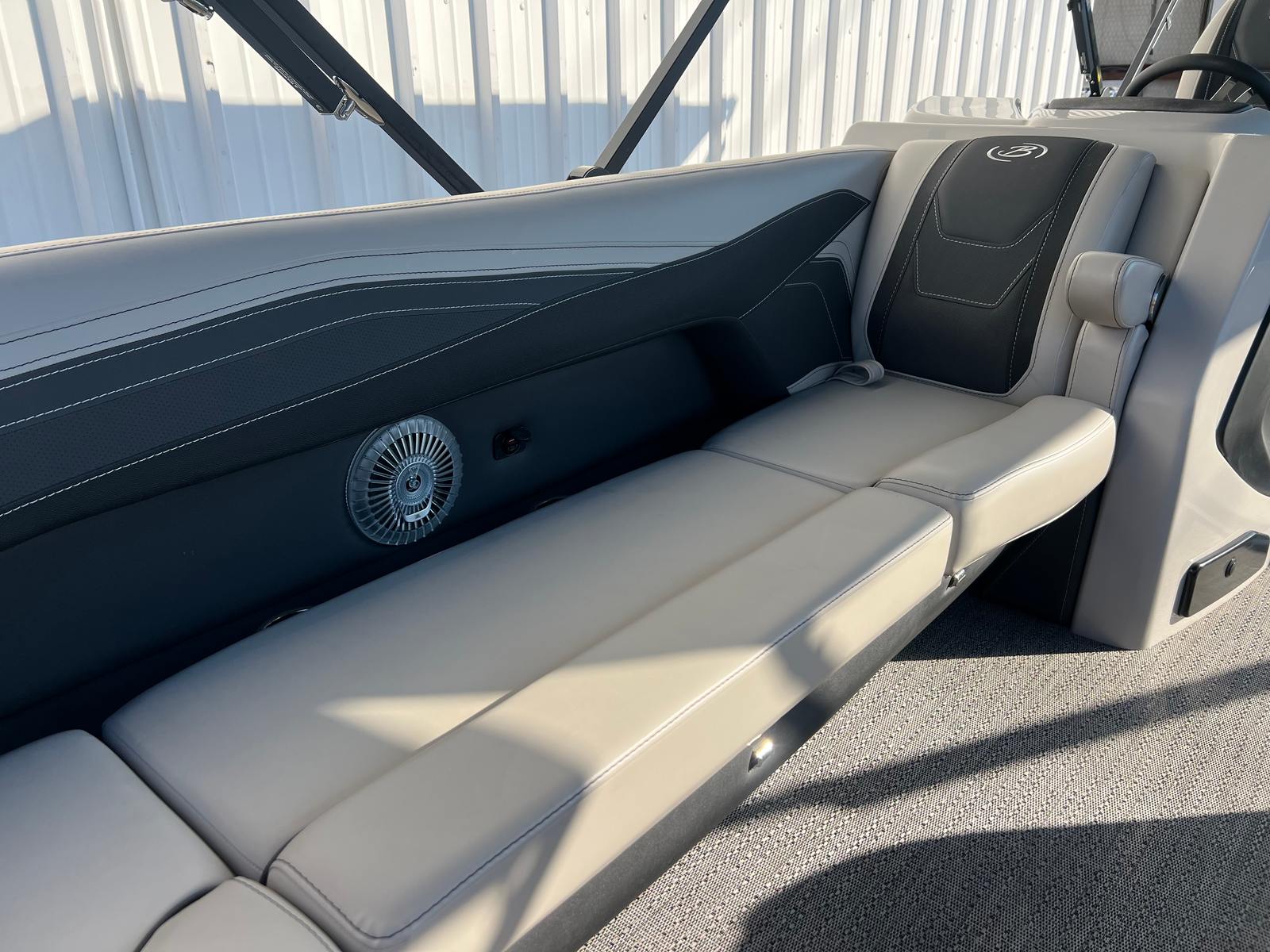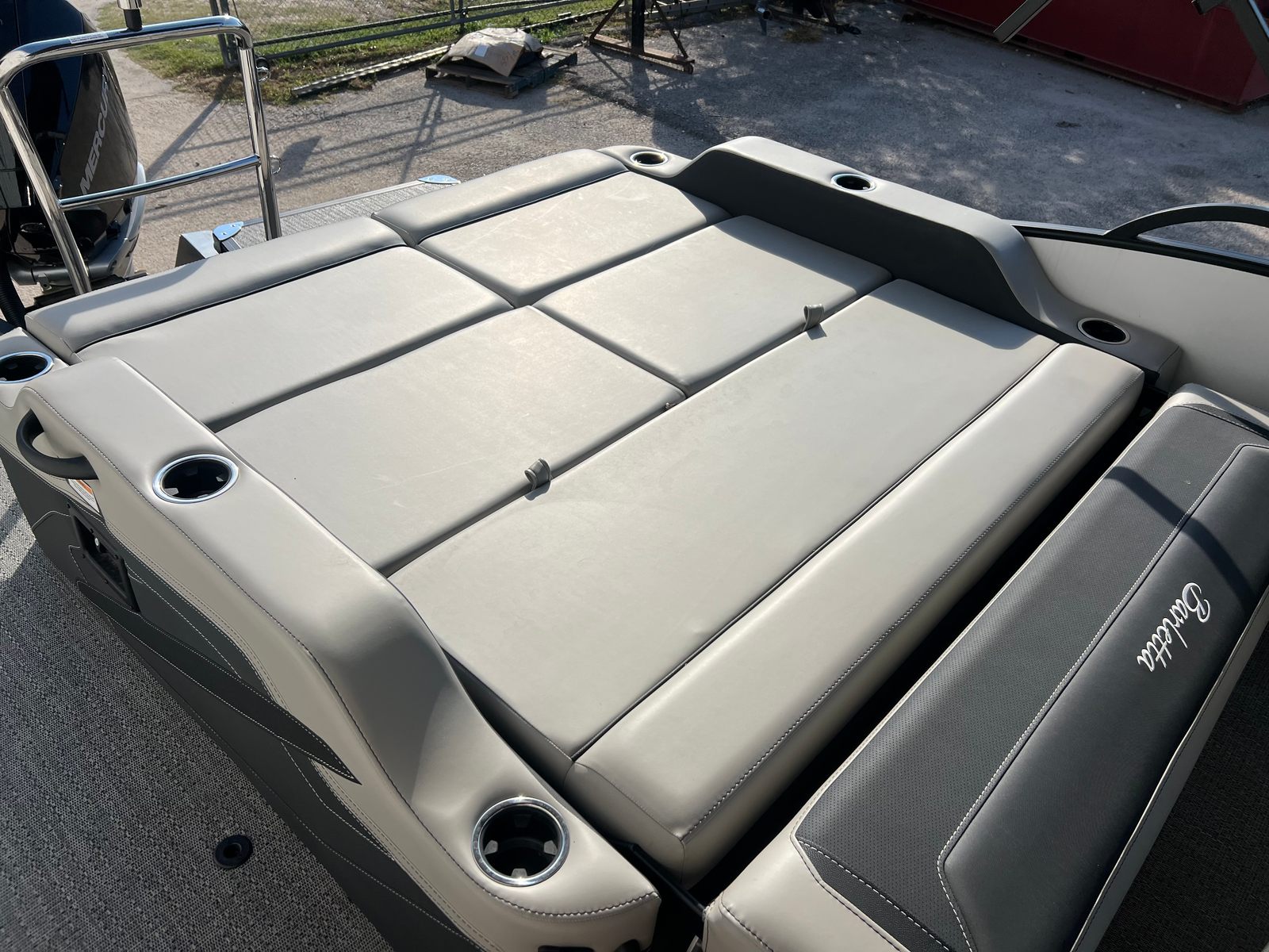 The Barletta Cabrio C24UC is packed with special features that set it apart from other pontoon boats for sale. The Black Diamond Railskin with Winter White accent and Blackout Package Cabrio create a bold, modern look that turns heads at the marina. Inside, the Marquesan Gray/Onyx furniture provides plush seating and a refined atmosphere, while the Amore Gray flooring is both stylish and easy to maintain. The triple toon package with midship storage offers enhanced stability and extra space for gear, making it perfect for long days on the water. The Mercury 250L Verado V8 engine, paired with Mercury Digital DTS Pre-Rig and Vessel Link, ensures advanced digital control and connectivity. Hydraulic and power assist steering, digital gauges, and a stainless steel prop further enhance the boat’s performance and ease of use. The double bimini canvas provides generous shade, allowing you to relax comfortably even on the sunniest days.