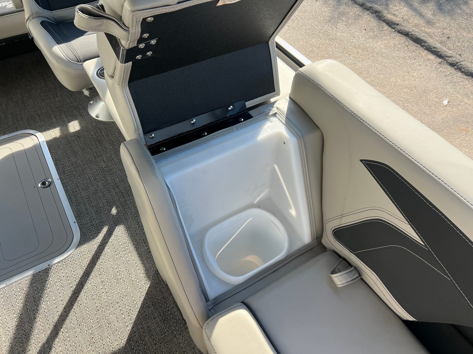 Powering the Cabrio C24UC is a Mercury (D) 250L Verado V8 engine, delivering a robust 250 horsepower with only one engine hour. This powerhouse ensures smooth acceleration, impressive top speeds, and reliable performance for all your adventures. The Mercury Digital DTS Pre-Rig for VERADO engines with Vessel Link provides seamless digital control, while hydraulic and power assist steering make maneuvering effortless. Digital gauges offer precise monitoring of engine metrics, and the rigging includes a stainless steel prop for enhanced durability and efficiency. Whether you’re cruising, towing water toys, or exploring new waters, this pontoon boat is engineered to perform.