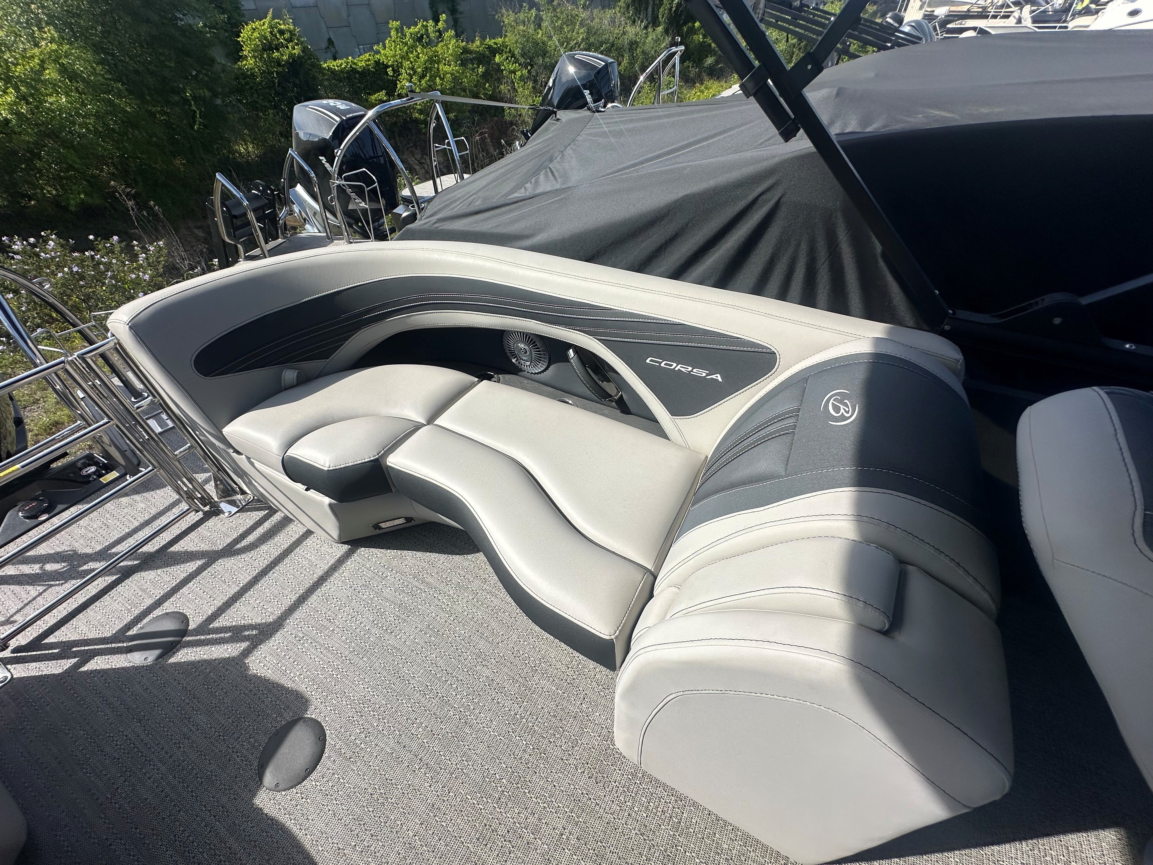 In summary, the 2026 Barletta Corsa 23QCSS is a standout pontoon boat for sale that combines cutting-edge performance, luxurious comfort, and striking design. With its powerful Mercury 250L Verado V8 engine, advanced steering and digital controls, and a host of premium features including the Blackout Package Corsa, Soft Touch Marquesan Gray furniture, Amore Gray flooring, and double bimini setup, this boat is built for those who demand the best.Whether you are seeking adventure, relaxation, or a stylish way to entertain on the water, the Barletta Corsa 23QCSS delivers on all fronts. Don’t miss the opportunity to own a Barletta boat for sale that truly stands out from the crowd. Contact your local dealer today to learn more about this exceptional pontoon and start planning your next great escape on the water.