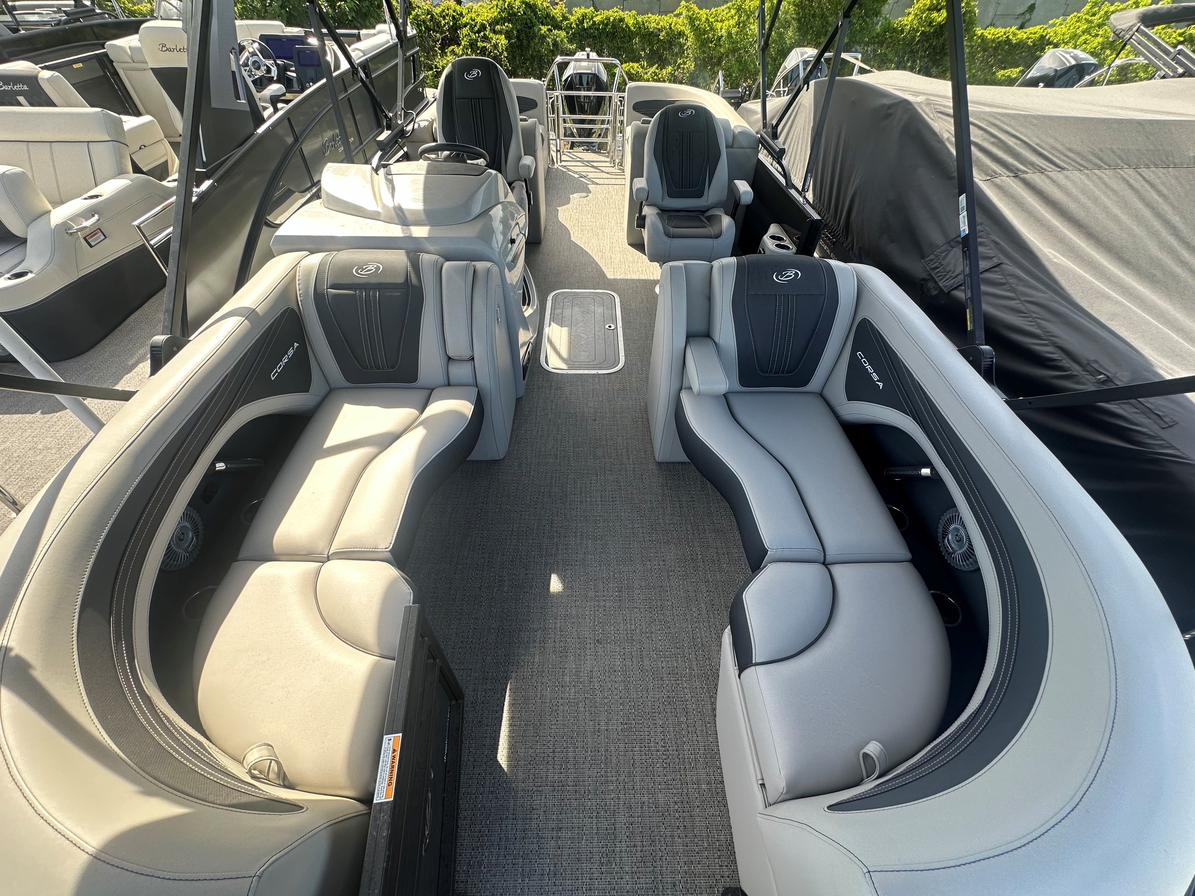The Barletta Corsa 23QCSS is designed with practicality in mind, making ownership as enjoyable as it is convenient. The intuitive layout provides ample storage for all your gear, from water toys to picnic supplies. The ease of docking, thanks to responsive steering and precise controls, means you can spend more time enjoying the water and less time worrying about maneuvering.Fuel efficiency is another highlight, allowing you to extend your adventures without frequent stops at the pump. The durable flooring and high-quality materials ensure that your pontoon remains in top condition, season after season. Whether you are planning a day trip or a weekend getaway, this boat is equipped to handle all your needs with style and reliability.