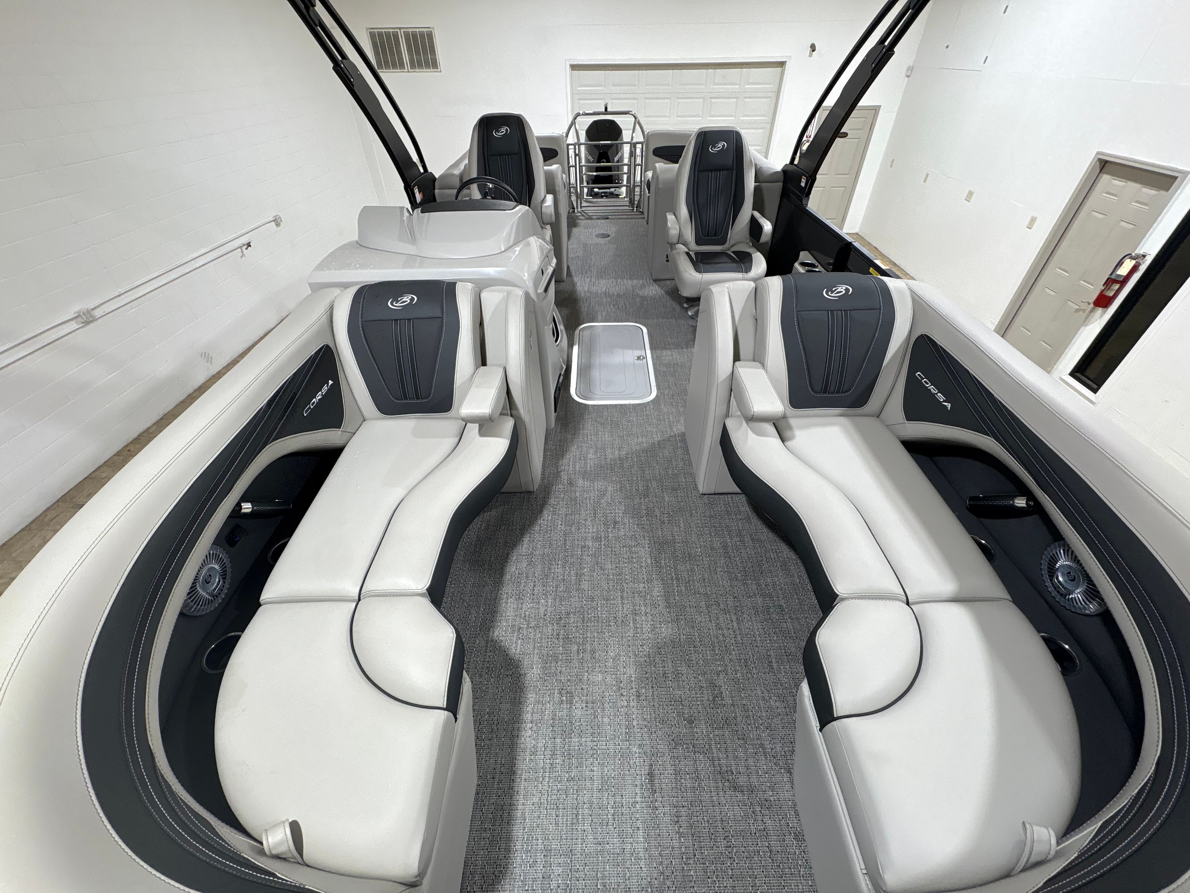 The Barletta Corsa 23QCSS is a 25-foot pontoon boat crafted for those who appreciate quality and innovation. Built in 2026, this vessel showcases the latest advancements in pontoon design, ensuring you enjoy every moment spent on board. Its spacious layout offers ample room for family and friends, while the sleek profile and contemporary accents set it apart from other pontoon boats for sale. Whether you’re cruising along the shoreline or anchored for a sunset gathering, the Corsa 23QCSS promises a memorable journey every time.