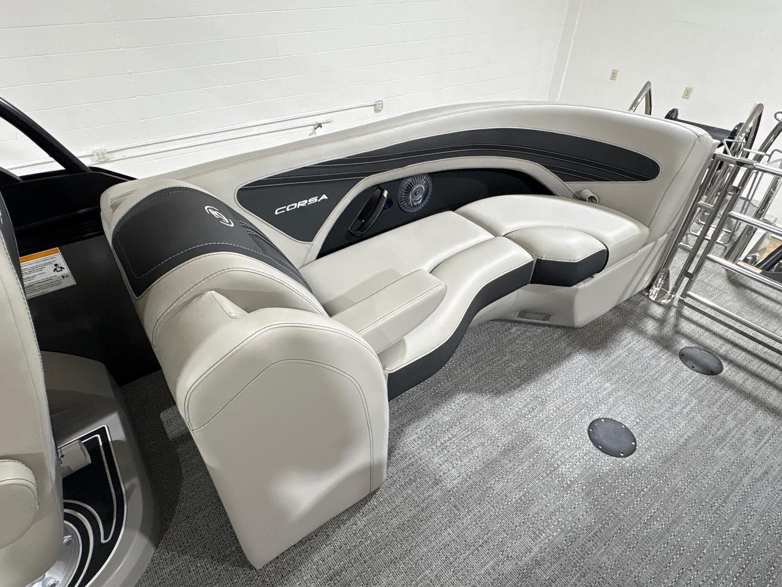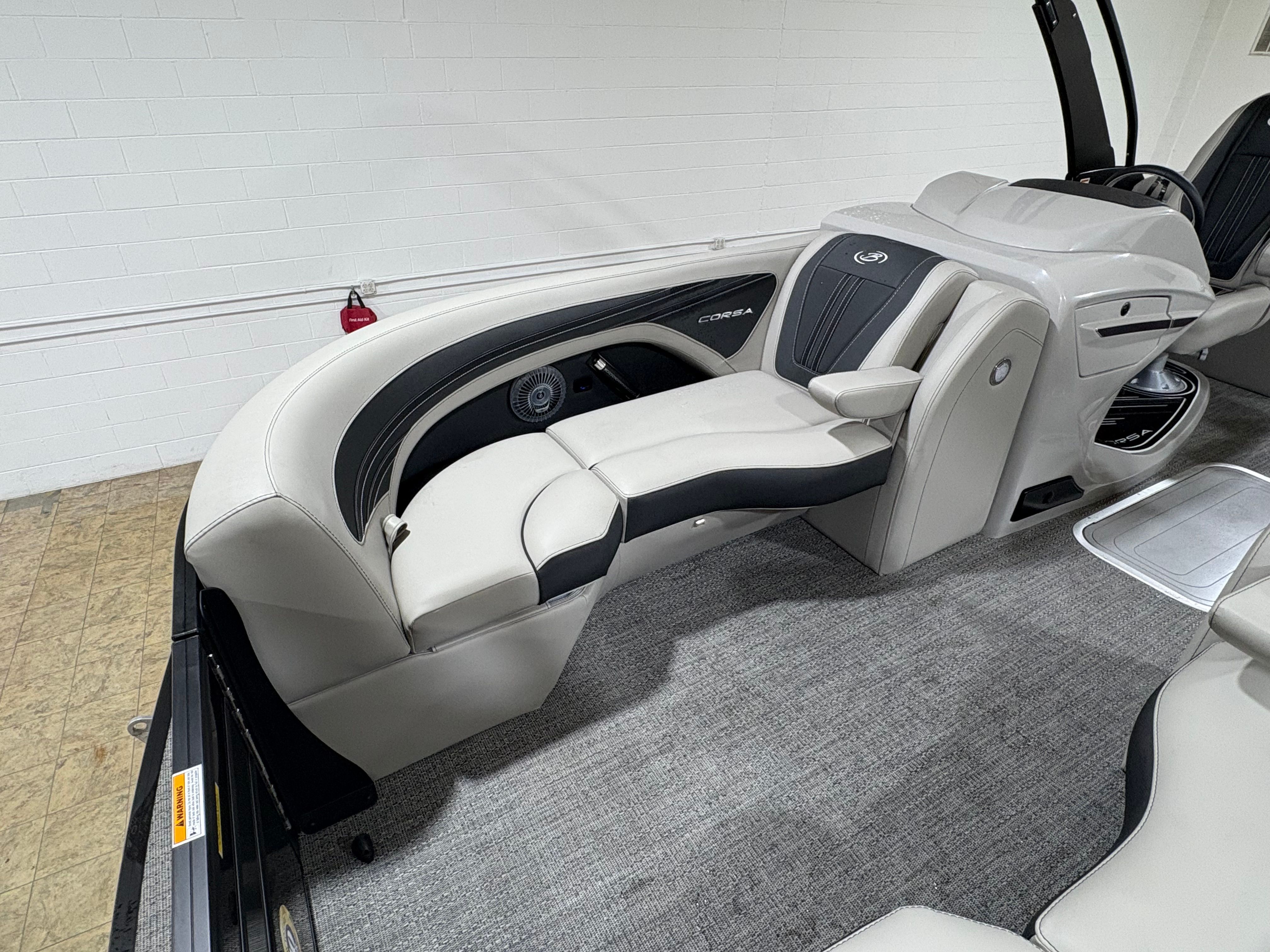 In summary, the 2026 Barletta Corsa 23QCSS pontoon boat for sale is a remarkable fusion of innovation, comfort, and style. With its powerful Mercury engine, advanced steering and digital integration, and luxurious features like the Blackout Package Corsa, soft touch Marquesan Gray furniture, and ambient lighting, this boat is designed to deliver unforgettable moments on the water. The practical benefits, versatile usage scenarios, and striking appearance make it a top choice for anyone seeking a Barletta boat for sale.Don’t miss your chance to own this exceptional pontoon and elevate your boating adventures. Contact the dealer today to learn more about the Barletta Corsa 23QCSS and discover how it can transform your time on the water.