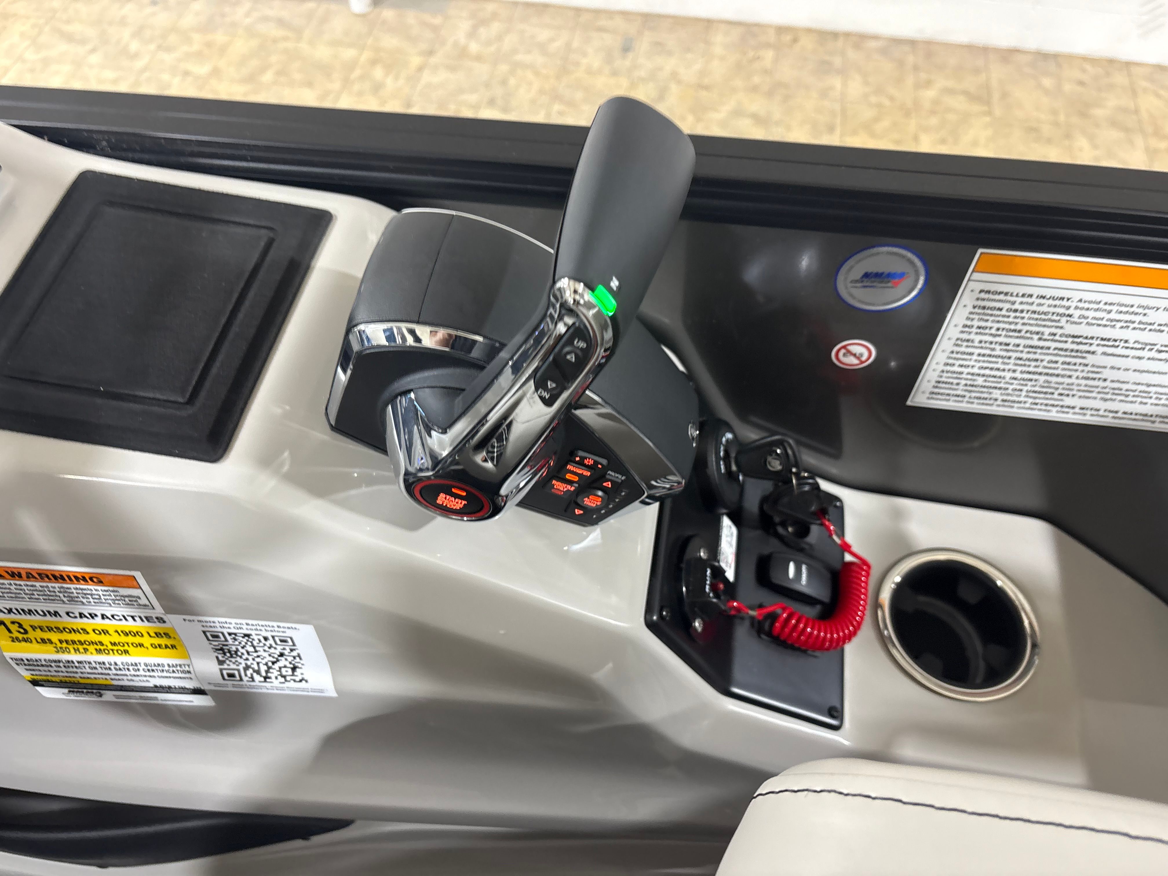 Step aboard the Corsa 23QCSS and discover a host of premium features designed to elevate your boating experience. The Railskin Packages include the striking Blackout Package Corsa, complemented by a matte black color accent and a sophisticated gray moonstone railskin color. The soft touch Marquesan Gray furniture with carbon accent provides plush seating and a modern aesthetic, ensuring comfort for all passengers. Amore Gray flooring adds a touch of elegance and durability, while digital gauges offer clear and accurate information at a glance.Enjoy enhanced visibility and ambiance with white underdeck and underwater exterior lighting, perfect for evening cruises or dockside gatherings. The stainless steel flag pole with American flag adds a patriotic touch, celebrating your love for the water and country. Every detail of the Barletta Corsa 23QCSS has been thoughtfully designed to create an inviting and stylish environment, making it a standout pontoon boat for sale in today’s market.