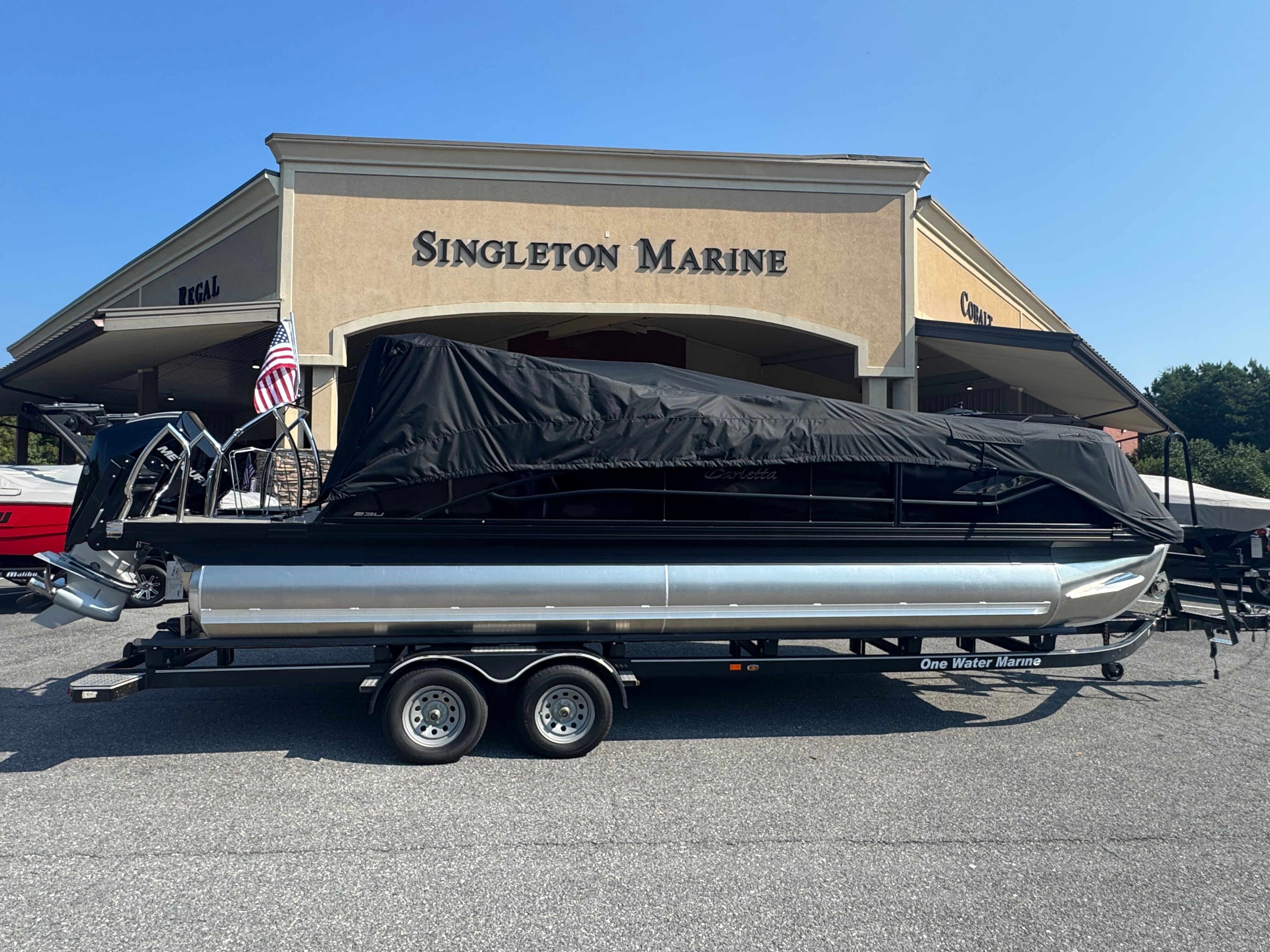 The Barletta Corsa 23U is a 25-foot pontoon boat that stands out with its sleek design and modern features. Crafted for the 2026 model year, this vessel embodies the latest advancements in pontoon engineering and aesthetics. The Corsa 23U’s spacious deck and innovative layout make it an ideal platform for entertaining, cruising, or unwinding with friends and family. Its striking Railskin Color in Black Diamond, paired with the Blackout Package Corsa, gives the boat a bold, sophisticated look that turns heads at every marina and on every lake.