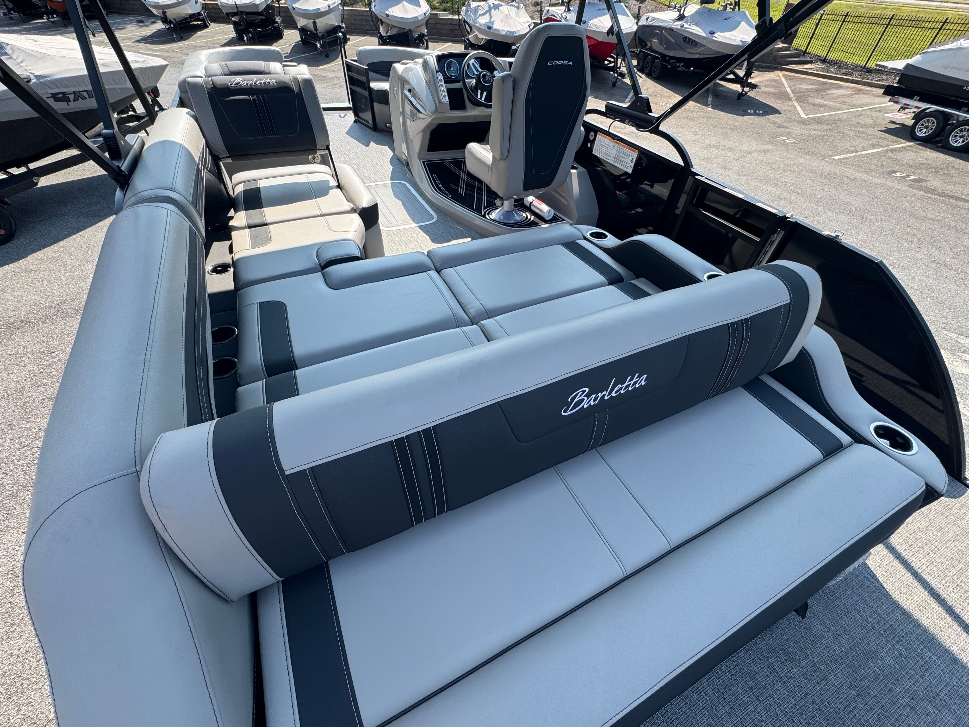 The 2026 Barletta Corsa 23U is a standout pontoon boat for sale, offering a unique combination of style, performance, and versatility. With its powerful Mercury 250L Verado V8 engine, advanced helm features, luxurious furniture, and striking Black Diamond exterior, this Barletta boat for sale is designed to impress and delight. The Blackout Package Corsa, Simrad engine integration, stainless steel flag pole, and premium lighting elevate your boating experience to new heights.Whether you’re seeking adventure, relaxation, or unforgettable moments with loved ones, the Barletta Corsa 23U delivers on every front. Don’t miss your chance to own this exceptional pontoon boat – contact your local dealer today to learn more and start your journey toward endless fun on the water.