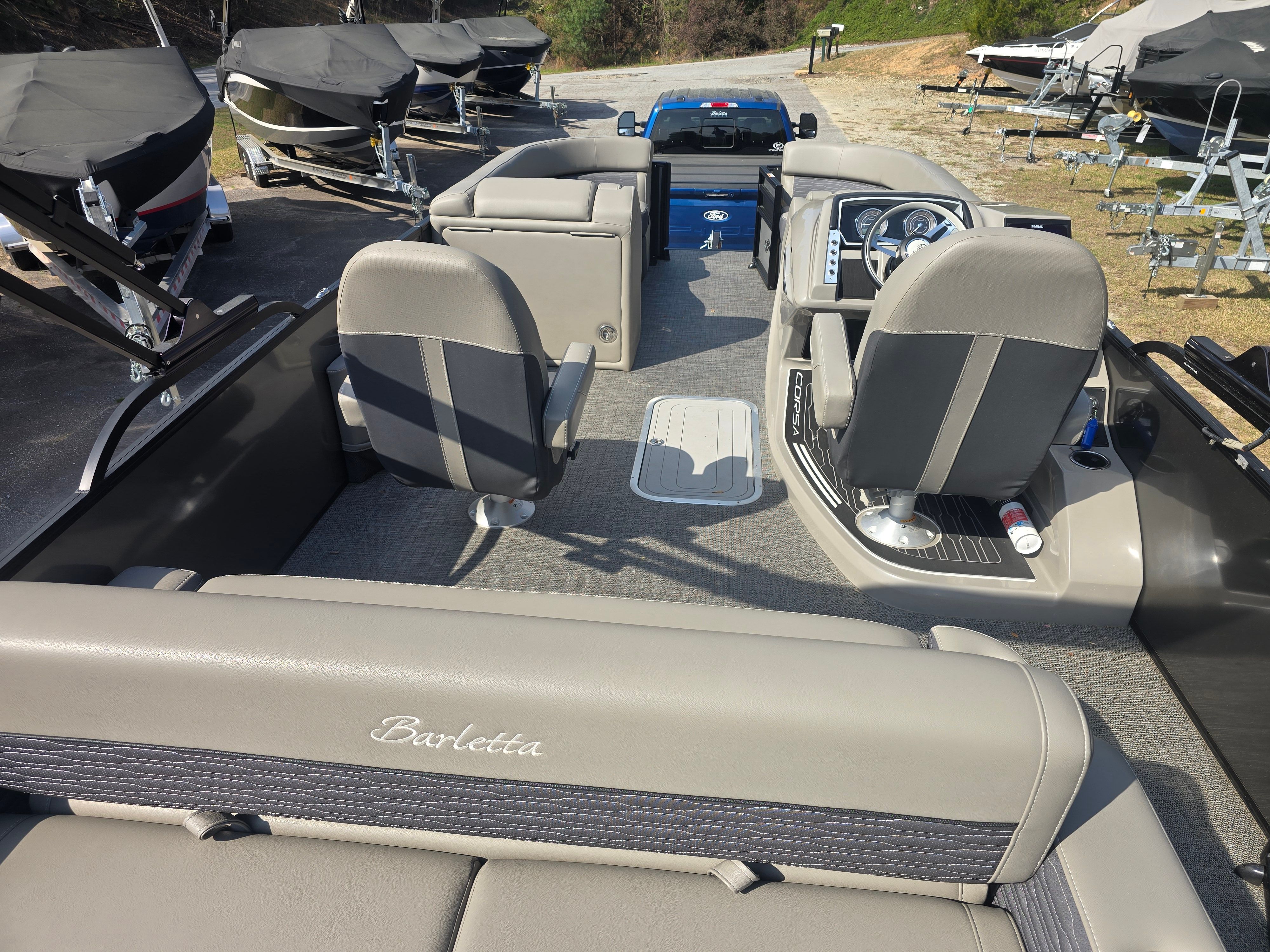 The Barletta Corsa 23UC is as practical as it is stylish. Its spacious design offers ample storage for all your gear, making it easy to bring along everything you need for a day of fun. The intuitive layout ensures that docking and maneuvering are straightforward, even in tight spaces. The efficient engine provides excellent fuel economy, allowing you to spend more time on the water and less time at the pump.This pontoon boat is perfect for a variety of activities, from leisurely cruises and family picnics to water sports and fishing trips. The versatile design adapts to your lifestyle, making it a smart investment for anyone looking to maximize their time on the water. With its blend of comfort, performance, and practicality, the Barletta Corsa 23UC stands out as a top choice among pontoon boats for sale.