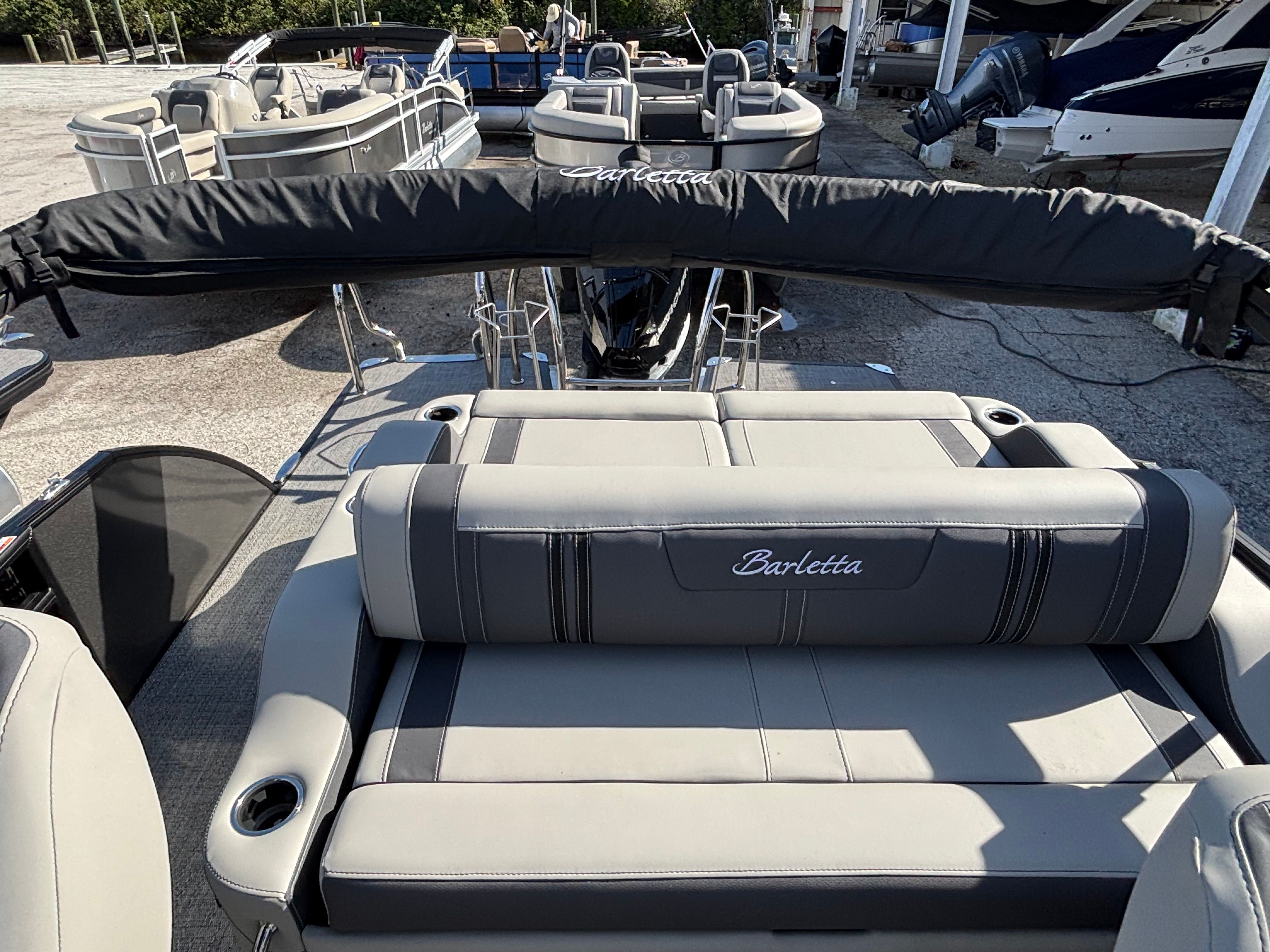 Owning the Barletta Corsa 23UC means embracing a lifestyle of fun, relaxation, and social connection. The spacious layout and plush seating invite you to unwind with family and friends, creating memories that will last a lifetime. The thoughtfully designed furniture and ample deck space make it easy to host gatherings, enjoy meals, or simply soak up the sun in comfort.The advanced sound system, enhanced by the subwoofer and amplifier, sets the perfect mood for any occasion, from lively celebrations to peaceful sunset cruises. The double bimini ensures that everyone on board can find a comfortable spot, whether you prefer basking in the sun or lounging in the shade. With its striking exterior lighting, the Corsa 23UC transforms into a captivating oasis after dark, extending your boating adventures well into the evening.