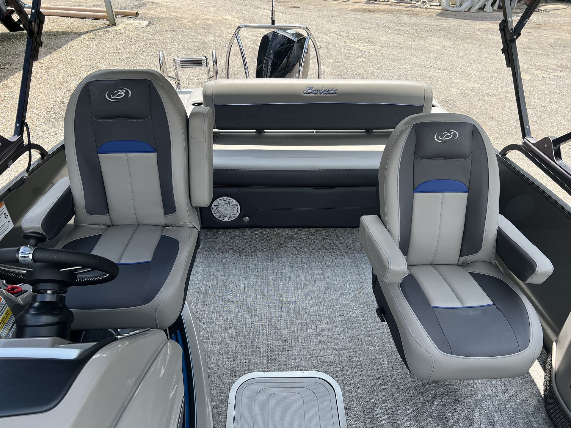 In addition to its recreational benefits, the Barletta Corsa 23UC is designed with practical considerations in mind. The efficient engine and thoughtful design contribute to excellent fuel economy, allowing you to spend more time on the water and less time at the pump. The boat's manageable size makes docking and maneuvering straightforward, even for those new to boating. Ample storage options throughout the boat ensure that you can bring along all the gear, snacks, and supplies you need for a full day of fun.The sturdy construction and reliable performance of this pontoon boat mean you can venture out with confidence, knowing that your vessel is built to handle a variety of conditions. Whether you are exploring new lakes, fishing with friends, or enjoying a quiet morning cruise, the Barletta Corsa 23UC adapts to your needs and enhances every outing.