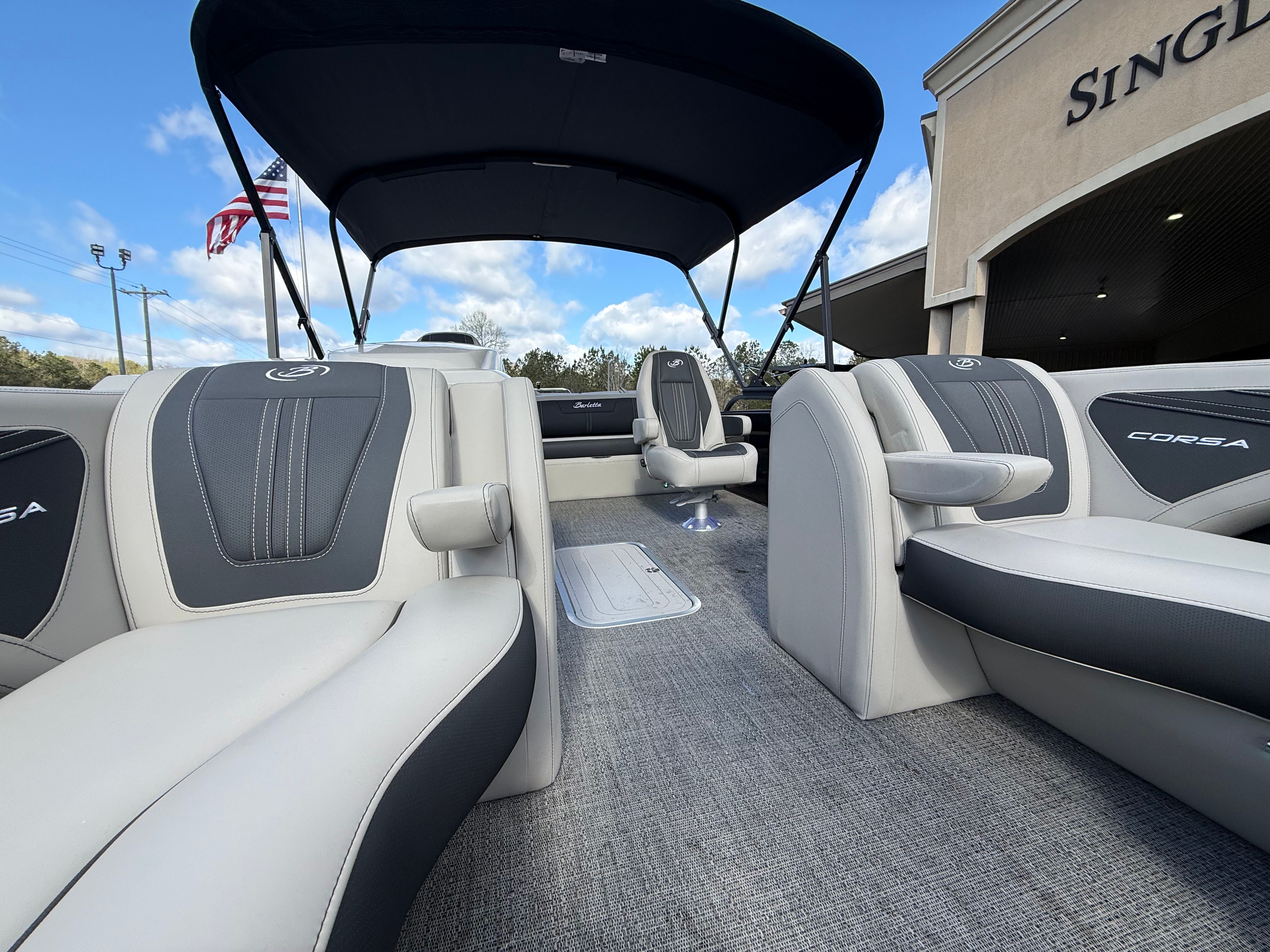 The 2026 Barletta Corsa 23UC is a pontoon boat for sale that combines striking design, powerful performance, and premium features for an unmatched boating experience. With its Mercury 250L Verado V8 engine, Black Diamond railskin, Blackout Package Corsa, Soft Touch Marquesan Gray furniture, Amore Gray flooring, and advanced digital controls, this Barletta boat for sale is ready to deliver endless fun and relaxation. Whether you’re seeking comfort, style, or versatility, the Corsa 23UC stands out as a top choice for anyone looking to elevate their time on the water. Don’t miss your chance to own this exceptional pontoon—contact the dealer today to learn more and start your next adventure.