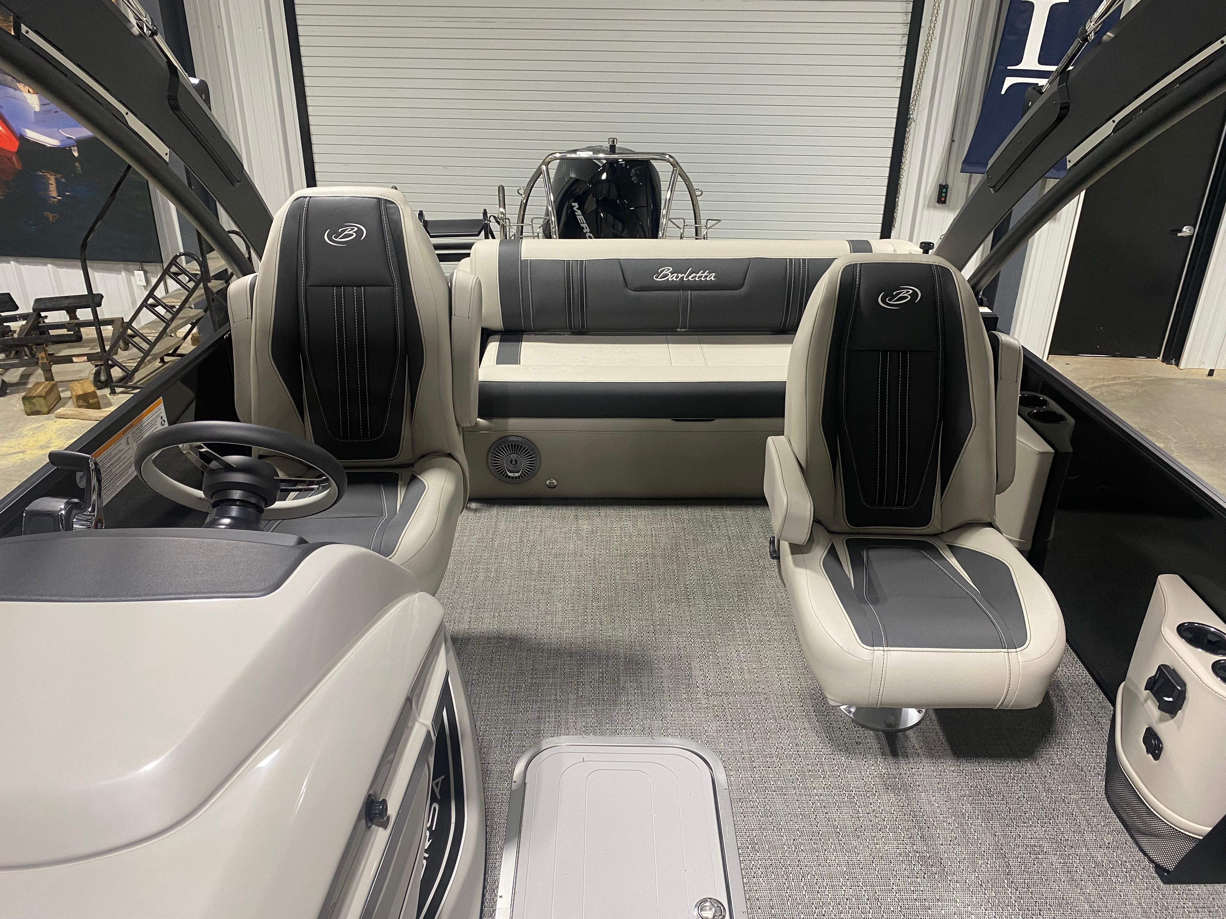 Owning the Barletta Corsa 25UCA pontoon means enjoying the perfect balance of relaxation and excitement. The spacious layout is ideal for socializing, sunbathing, or enjoying a meal with loved ones. The soft-touch furniture and elegant flooring create a comfortable environment, while the advanced helm and engine integration make every journey smooth and enjoyable. The exterior lighting not only adds to the boat’s visual appeal but also ensures safe navigation after sunset. With its powerful engine and responsive steering, this pontoon boat for sale is equally suited for leisurely cruises or thrilling rides, making it a versatile choice for any boating enthusiast.