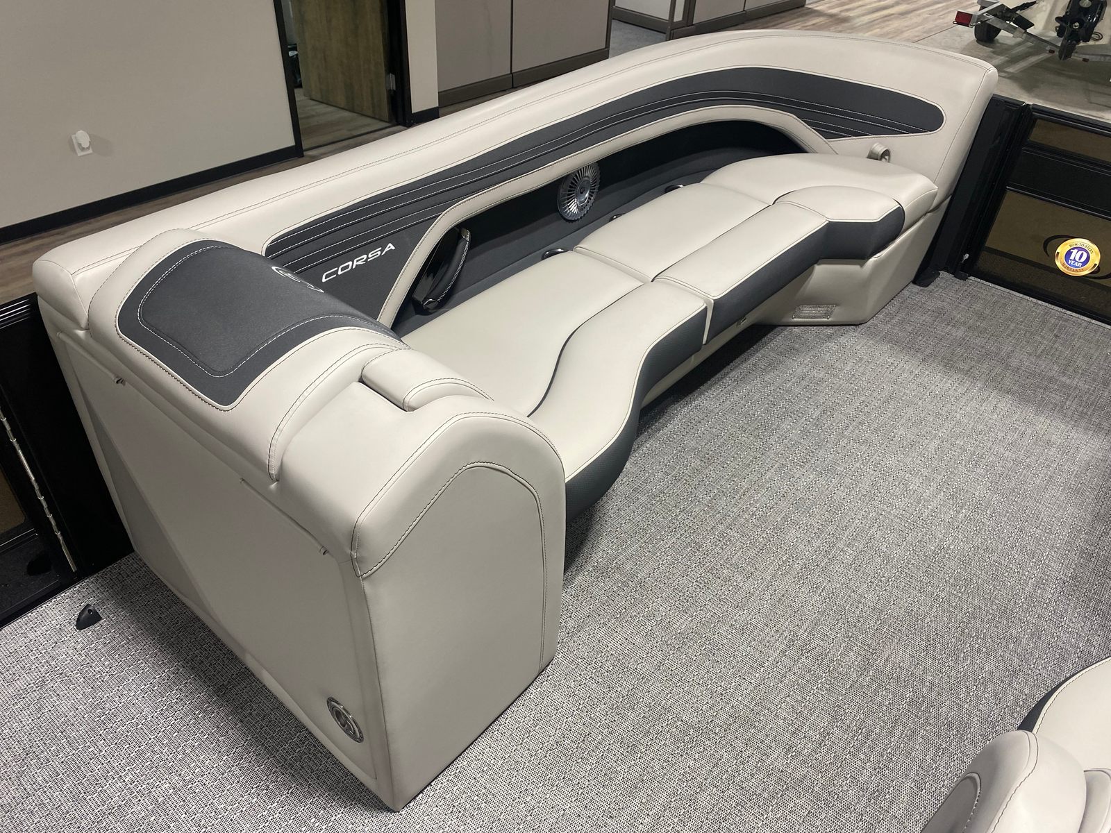 The Corsa 25UCA shines in a variety of scenarios, making it a top choice for families, friends, and boating enthusiasts alike. Imagine hosting a sunset cruise with the underdeck and underwater lights creating a magical atmosphere, or spending a sunny afternoon anchored at your favorite spot with plenty of room for lounging and socializing. The comfortable seating and spacious deck are perfect for family outings, while the powerful engine and advanced helm make it easy to explore new waters. Whether you’re seeking a relaxing day on the lake, an exciting ride with friends, or a luxurious getaway, this pontoon adapts to your every need.