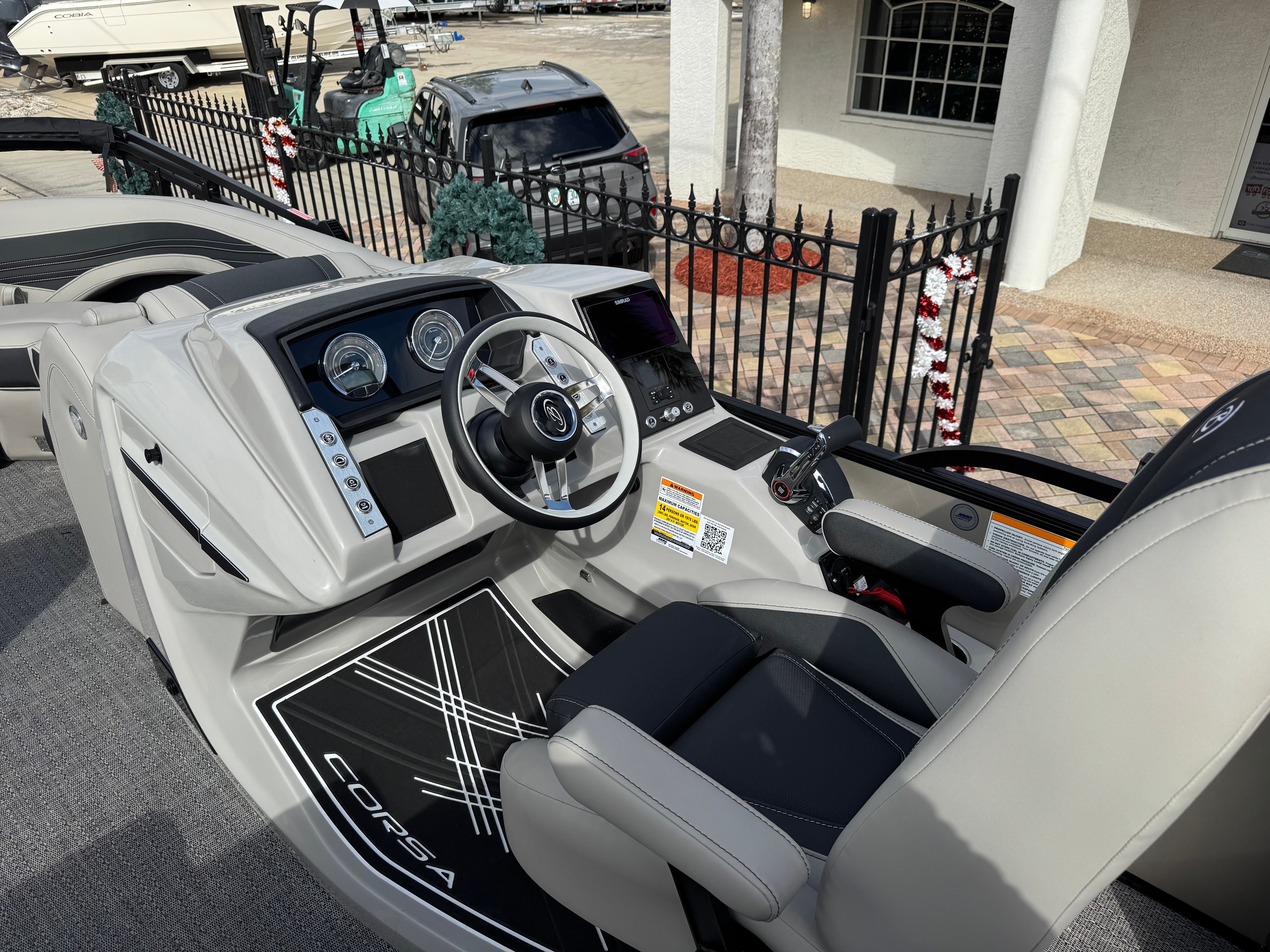 The Barletta Corsa 25UE is as practical as it is luxurious. Its spacious design offers plenty of room for storage, keeping your gear organized and out of the way. The ease of docking is enhanced by the responsive steering and powerful engine, making it simple to navigate marinas and tight spaces. Fuel efficiency is optimized by the advanced Mercury Verado V8 engine, allowing you to enjoy longer trips without frequent refueling stops.Whether you are planning a day of fishing, a family picnic on the water, or a weekend getaway, this pontoon boat adapts to your needs. The durable construction and Coastal Edition features ensure that your investment is protected, even in challenging environments. The intuitive controls and digital displays make operating the boat straightforward, so you can spend more time enjoying the water and less time worrying about the details.