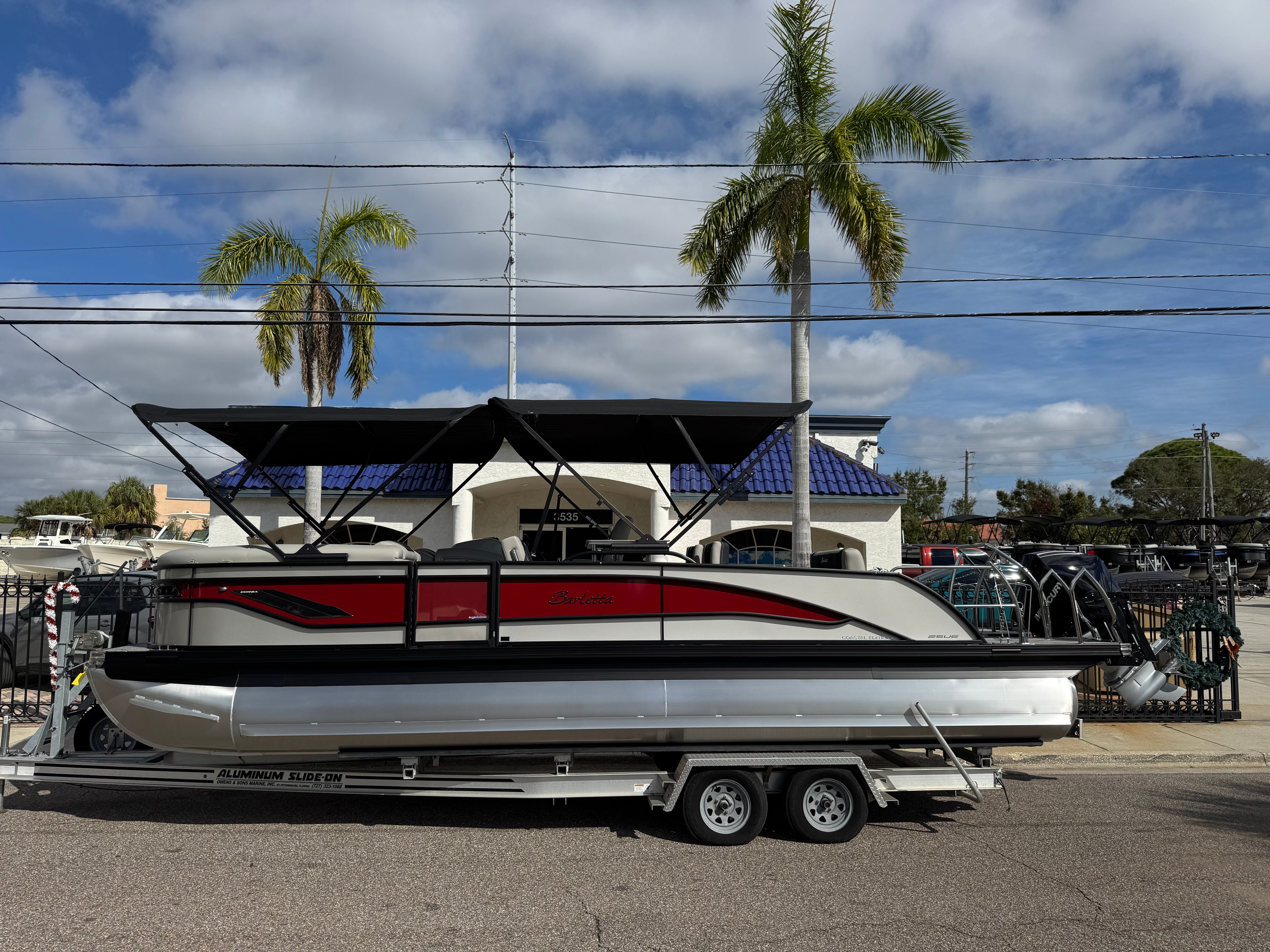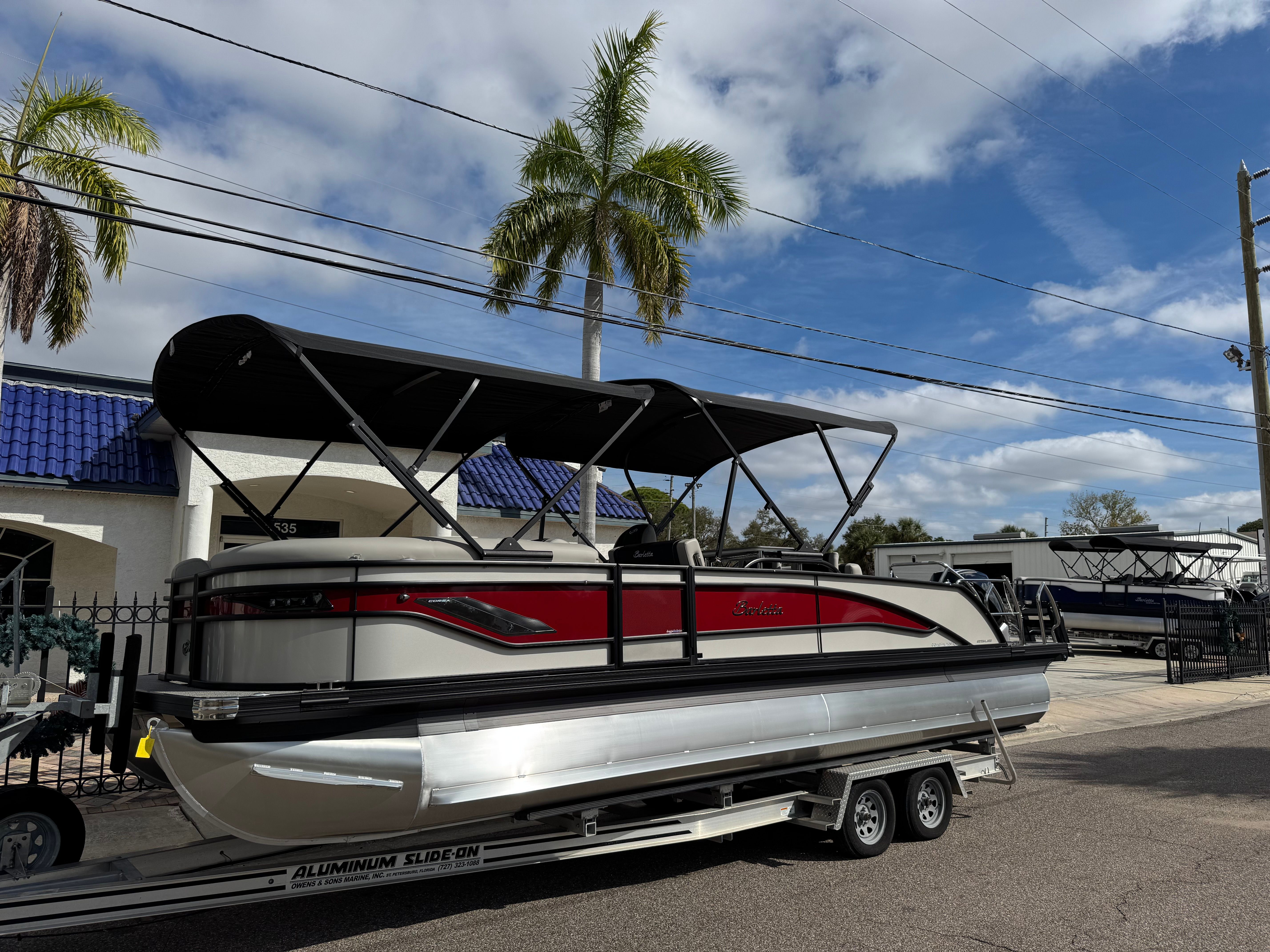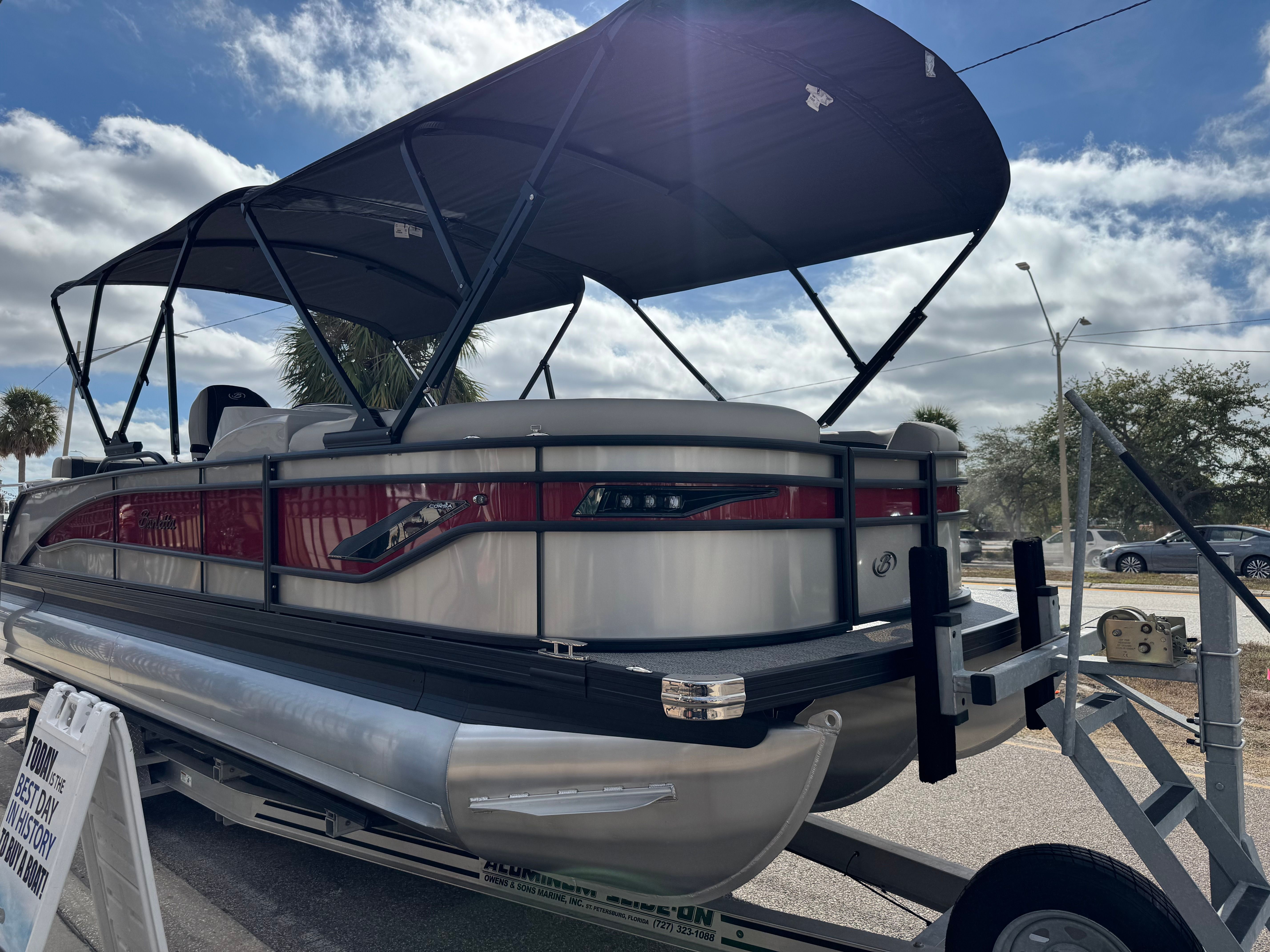 The 2026 Barletta Corsa 25UE is a standout pontoon boat for sale, offering a unique blend of style, performance, and versatility. With its eye-catching Champagne and Red Garnet color scheme, Blackout Package Corsa, luxurious Marquesan Gray furniture, and advanced Mercury Verado V8 engine, this boat is designed to impress. The Coastal Edition features, double bimini system, and user-friendly controls make it a practical and enjoyable choice for boaters of all experience levels.If you are looking for a Barletta boat for sale that delivers on every front—comfort, performance, and style—the Corsa 25UE is the ultimate option. Experience the joy of boating with family and friends, create lasting memories, and enjoy the freedom of the open water. Contact your local dealer today to learn more about this exceptional pontoon boat and start your next adventure on the water.