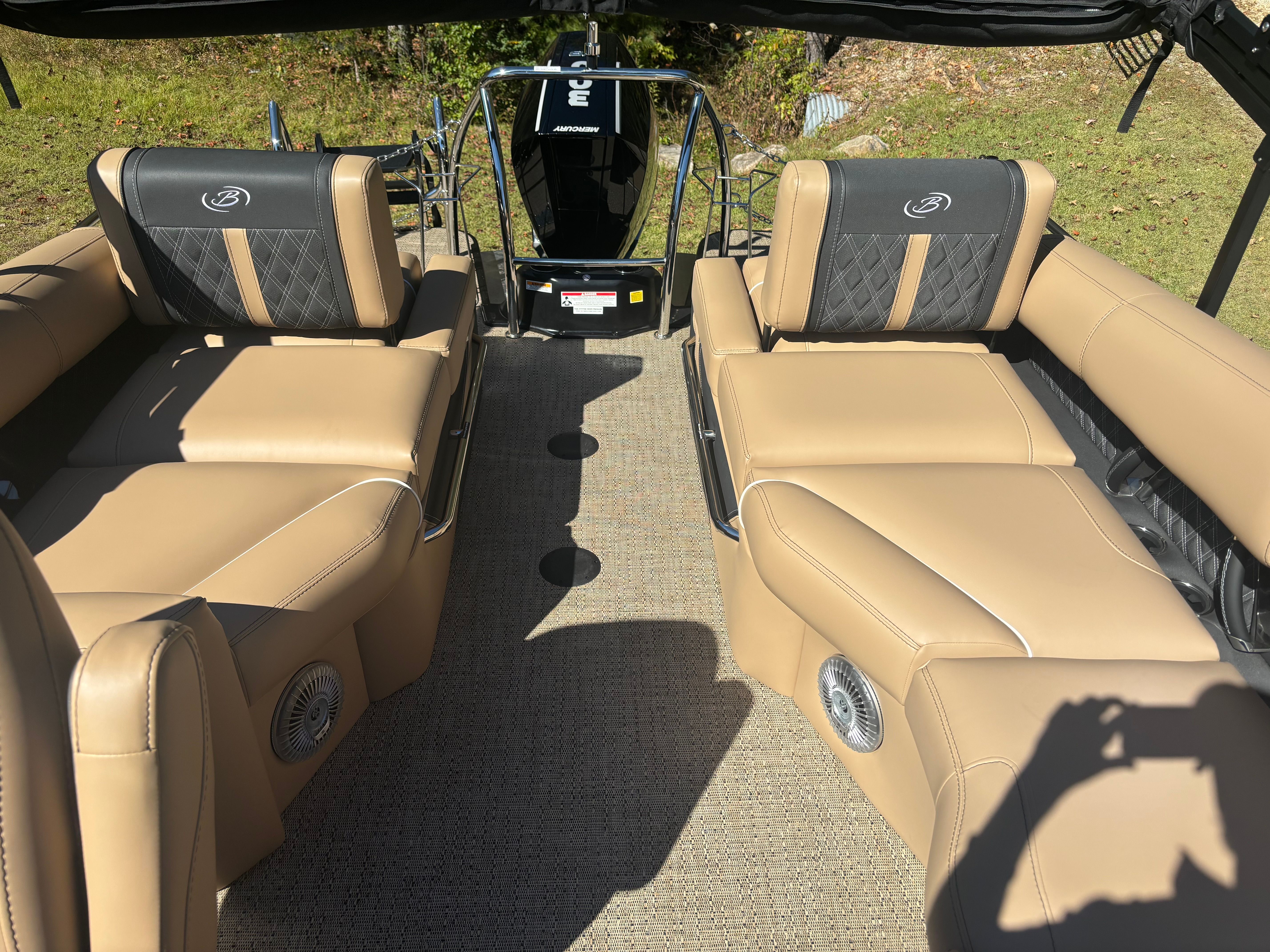 The 2026 Barletta Lusso L23M pontoon boat is a remarkable blend of luxury, performance, and innovation. With its powerful Mercury 300L Verado V8 engine, advanced steering systems, and premium features like Champagne accents, Amore Tan flooring, and elegant Carmella Tan furniture, this vessel is designed to impress. The Blackout Package Lusso railskin and Black Diamond sweep color add a modern touch, while exterior lighting and digital gauges enhance safety and convenience. Whether you’re seeking a pontoon boat for sale for family fun, entertaining, or relaxing getaways, the Lusso L23M delivers an unparalleled boating experience. Discover the joy of owning a Barletta boat for sale and make every moment on the water extraordinary. Contact the dealer today to learn more about this exceptional pontoon and start your next adventure.