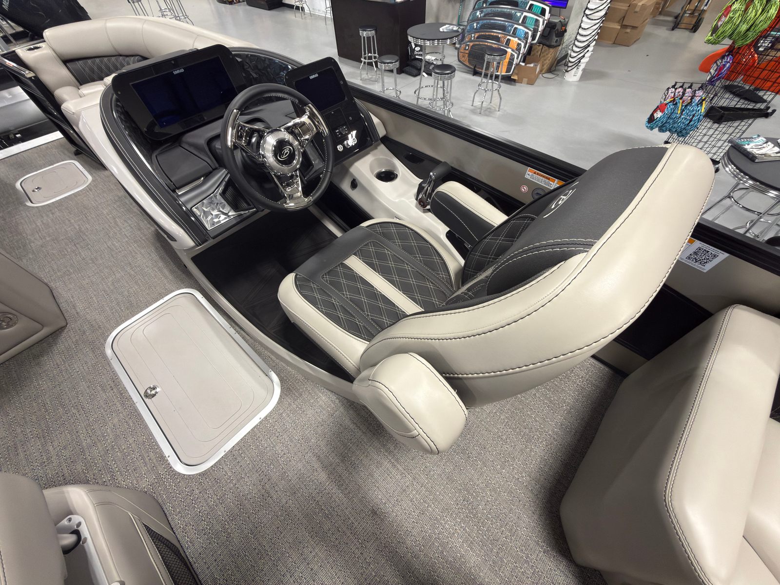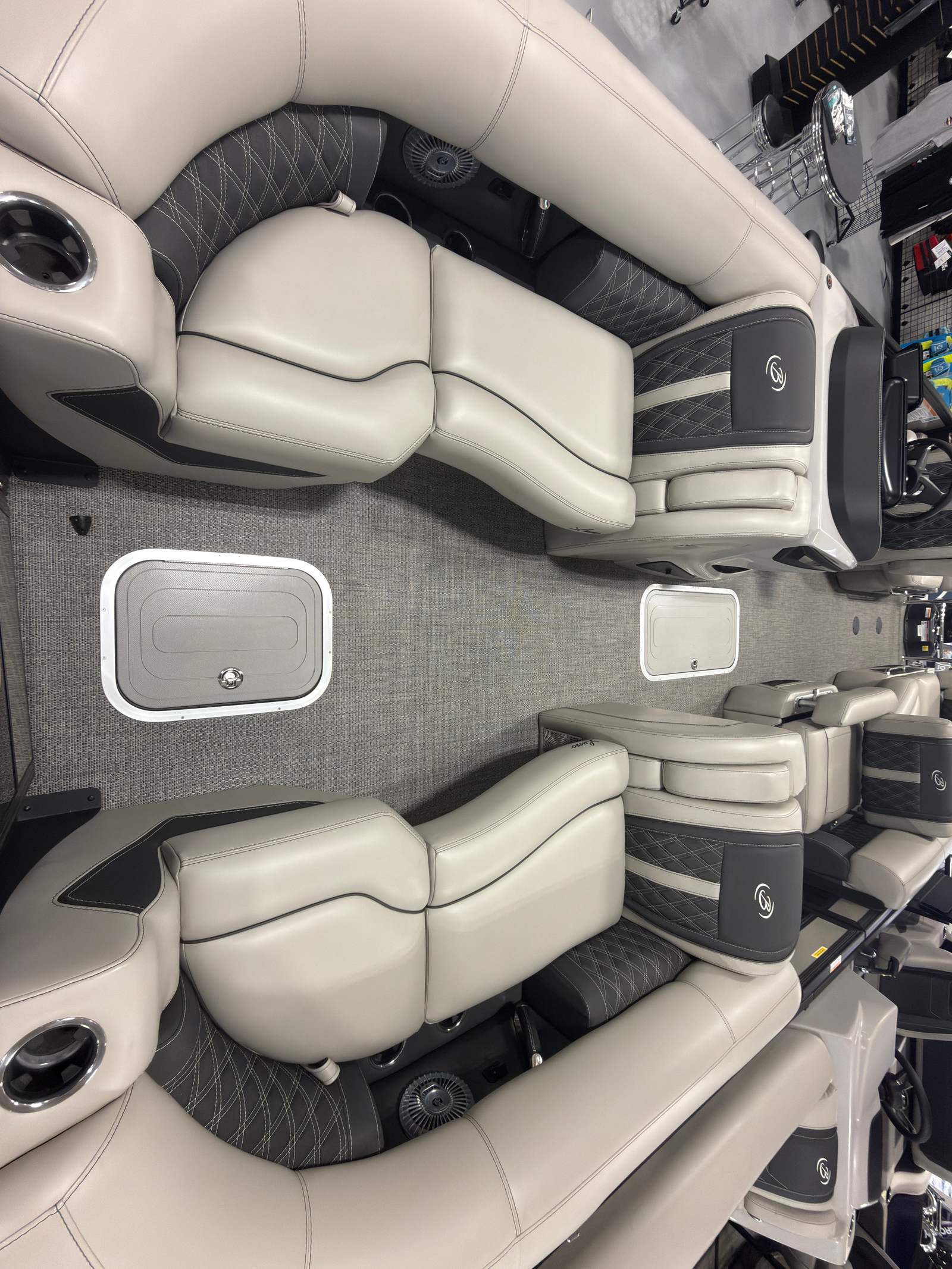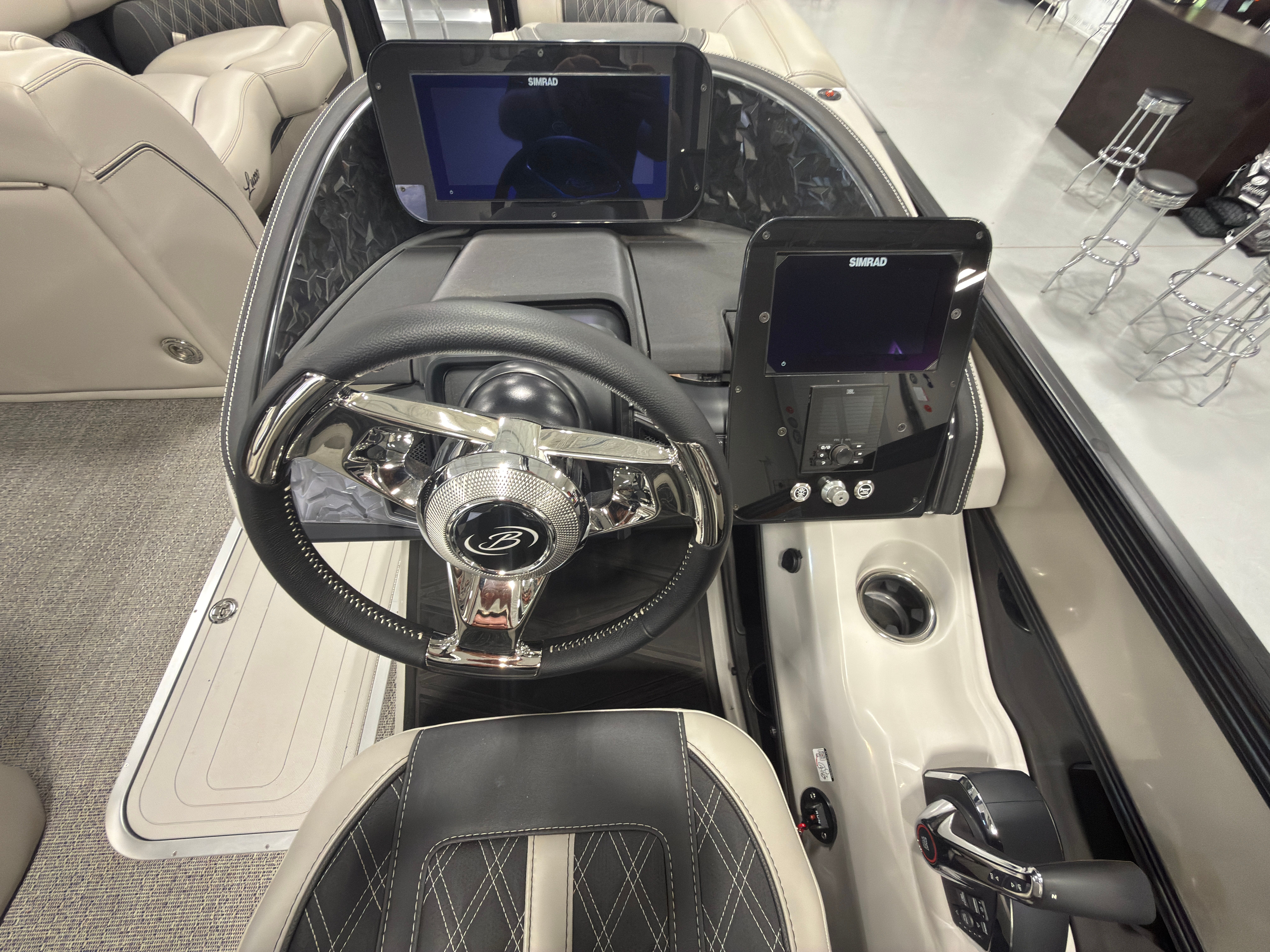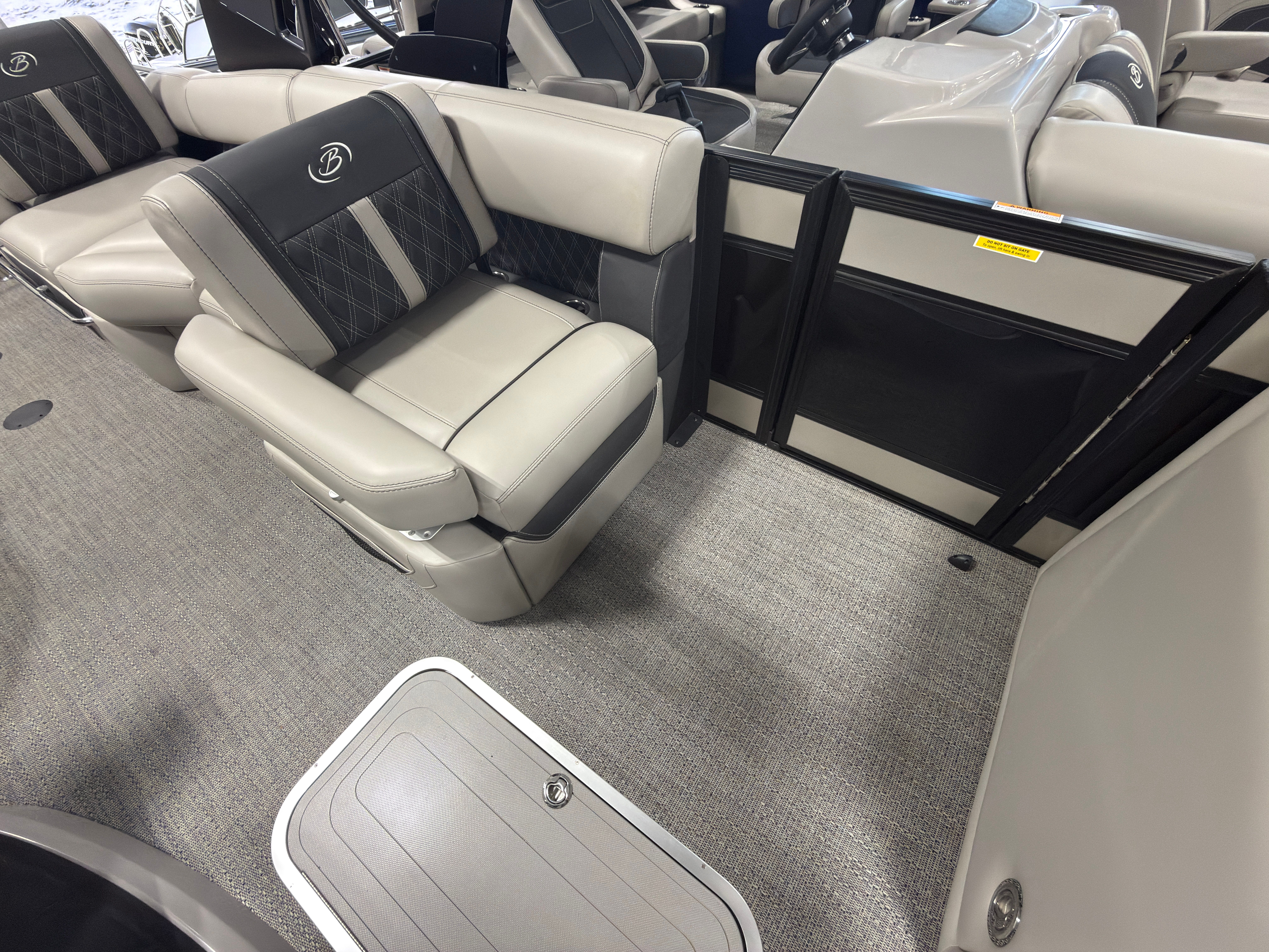 Step aboard the Barletta Lusso L23MA and discover a world of premium features designed to maximize comfort and convenience. The flooring is finished in Amore Gray, providing a sophisticated and easy-to-maintain surface that complements the boat’s overall aesthetic. The furniture, crafted in Marquesan Gray/Onyx, offers plush seating and ample lounging space, perfect for relaxing or entertaining guests.The Lusso L23MA features the Blackout Package Lusso railskin, adding a bold and modern touch to the exterior. The sweep color in Champagne and accent color in Black Diamond create a striking visual contrast, ensuring this pontoon stands out on the water. The Mercury Digital DTS Pre-Rig for VERADO engines with Vessel Link streamlines engine management, while hydraulic and power assist steering make handling effortless and precise.Digital gauges provide clear, real-time information, allowing you to monitor performance with ease. The exterior lighting, including white underdeck and underwater lights, enhances visibility and ambiance during evening cruises, creating a magical atmosphere for nighttime adventures.