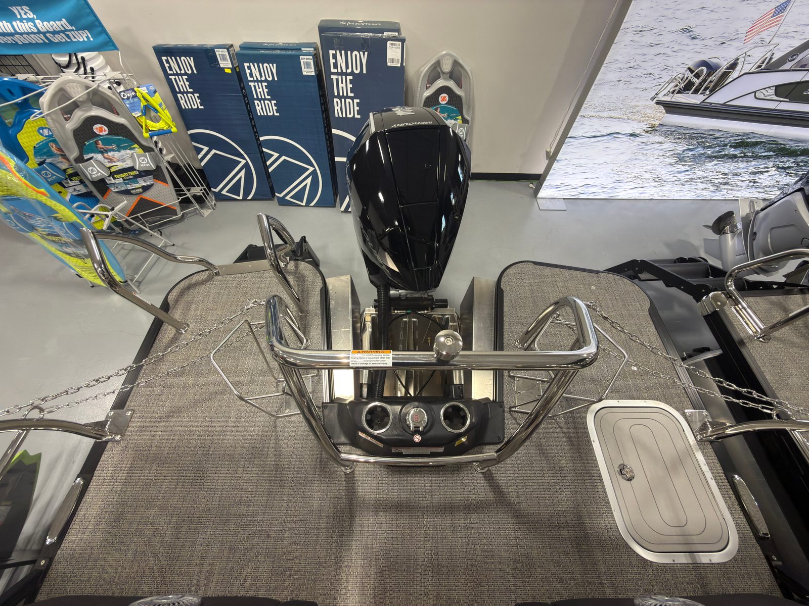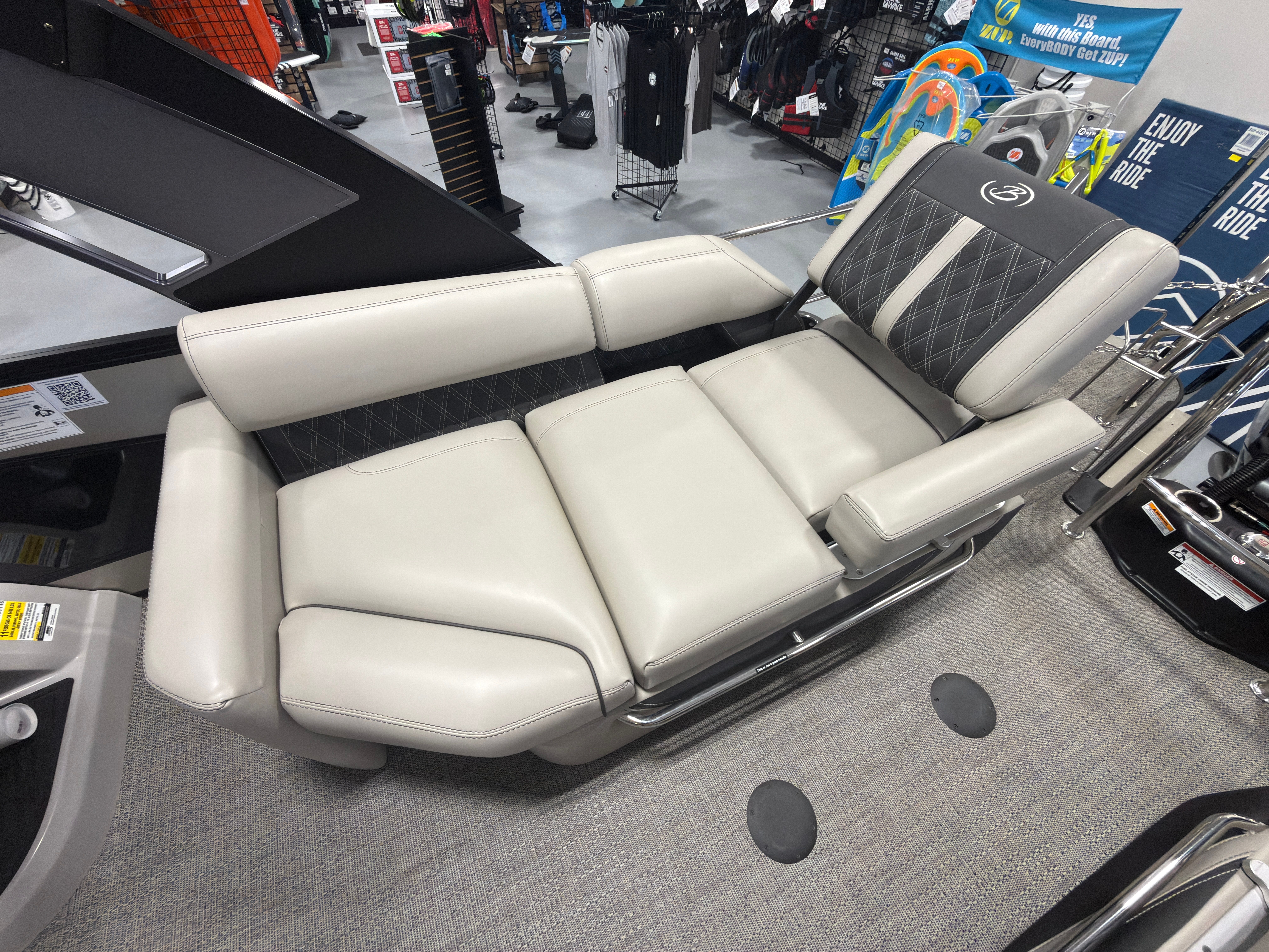 At the heart of the Barletta Lusso L23MA is a powerful Mercury (D) 300L Verado V8 engine, delivering an impressive 300 horsepower. This single-engine setup offers a thrilling combination of speed, agility, and reliability, making every outing on the water smooth and exhilarating. Whether you’re cruising across the lake or towing water toys, the Lusso L23MA’s robust engine ensures you have all the power you need for a dynamic boating experience. The rig engine is equipped with a stainless steel prop, enhancing durability and efficiency for optimal performance.
