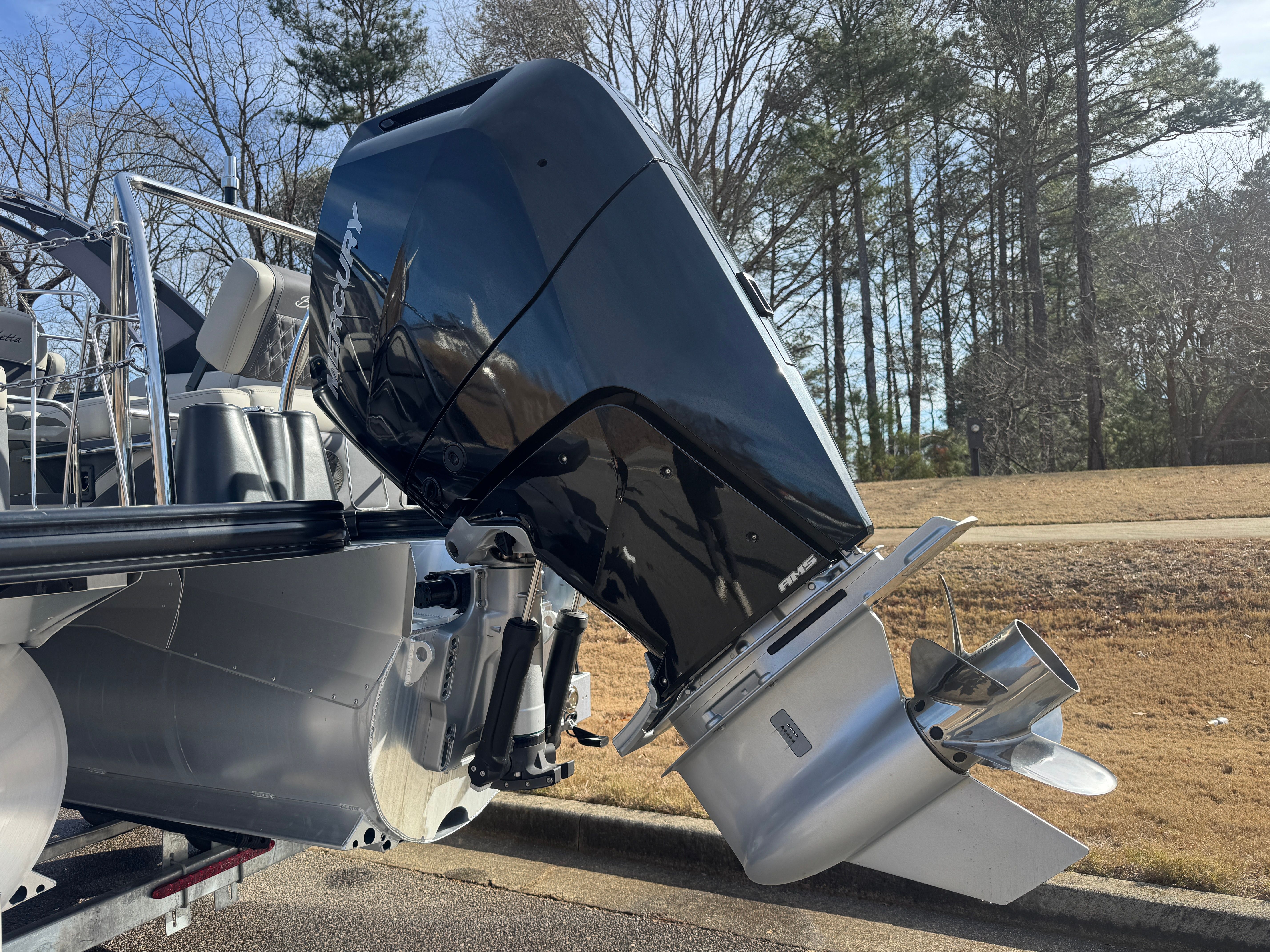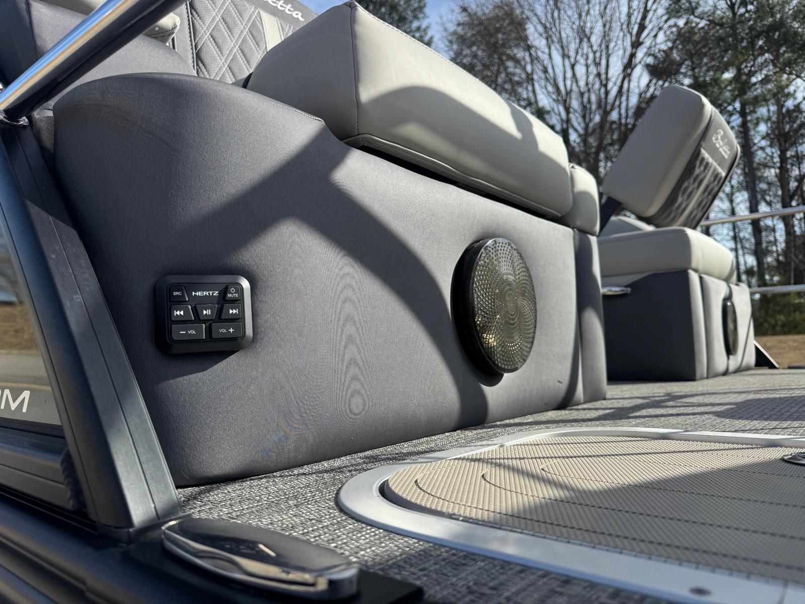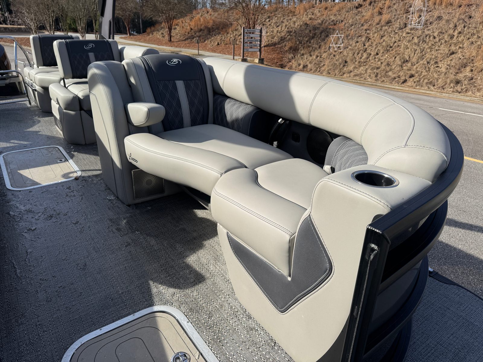 Under the hood, the Barletta Lusso L23MA is powered by a single engine delivering an impressive 350 horsepower. This robust setup ensures exhilarating acceleration, responsive handling, and the ability to glide effortlessly across the water. With only 50 engine hours, this pontoon boat for sale offers reliable performance and plenty of life left for future adventures.The Lusso L23MA’s engine is engineered for efficiency and power, making it ideal for both leisurely cruises and more spirited rides. Whether you’re towing water toys, exploring new coves, or simply enjoying the thrill of open water, this Barletta boat for sale delivers a dynamic boating experience. The combination of horsepower and advanced design means you can expect smooth operation, minimal noise, and excellent fuel efficiency, allowing you to maximize your time on the water.