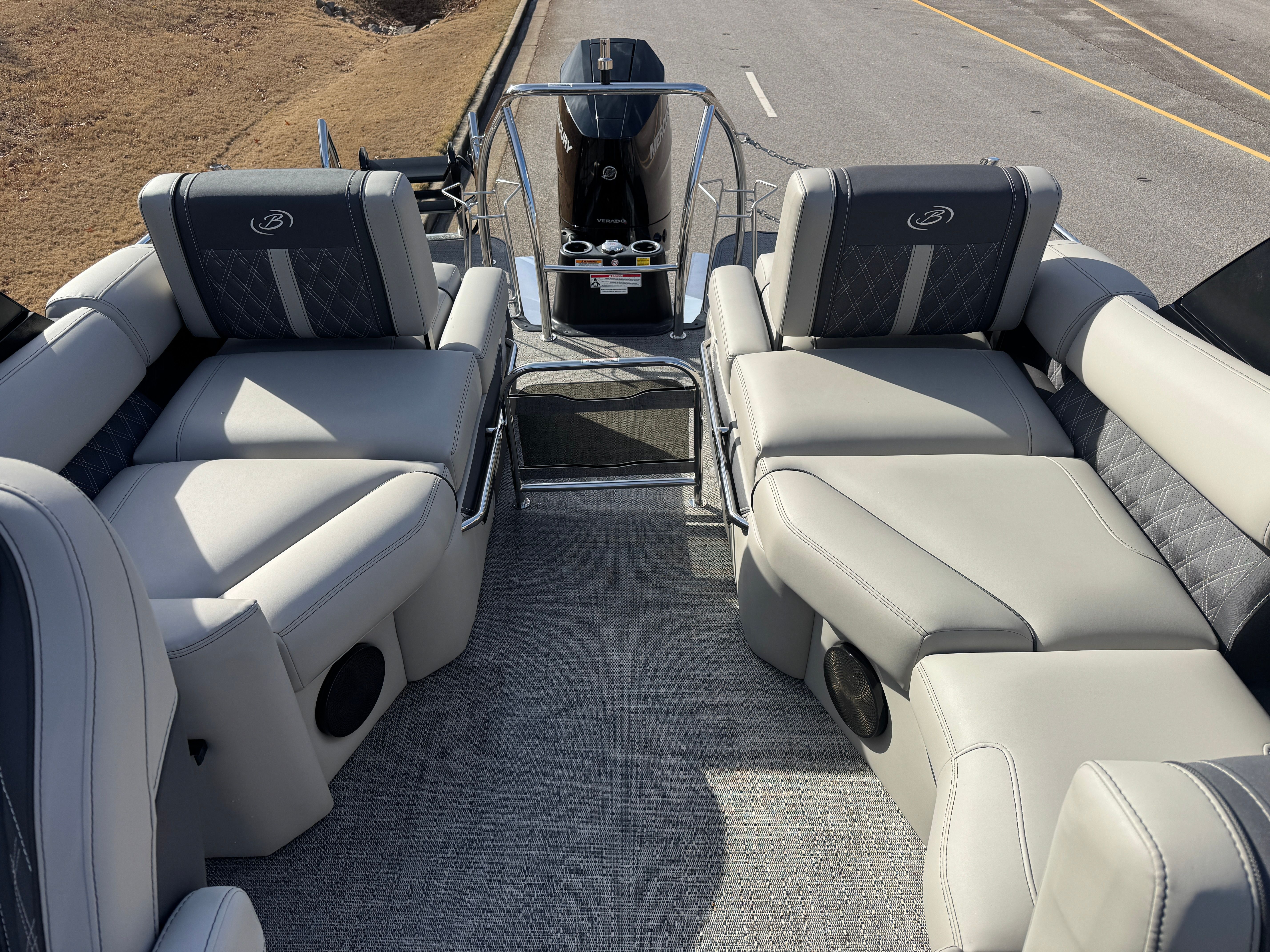 The 2024 Barletta Lusso L23MA pontoon boat is a testament to modern engineering and design. At 25.5 feet in length, this vessel offers ample space for entertaining, lounging, and enjoying the water in style. As a used pontoon boat for sale, it provides the unique advantage of premium features and proven reliability, with only 50 engine hours logged. The Lusso L23MA is crafted to deliver a smooth, stable ride, whether you’re cruising along the shoreline, anchoring for a swim, or hosting a sunset gathering with friends.Barletta’s reputation for quality and innovation shines through in every detail of the Lusso L23MA. The sleek exterior lines and spacious deck layout create an inviting atmosphere, while the sturdy construction ensures lasting durability. This Barletta boat for sale is perfect for those who appreciate both aesthetics and practicality, offering a versatile platform for a wide range of water activities.