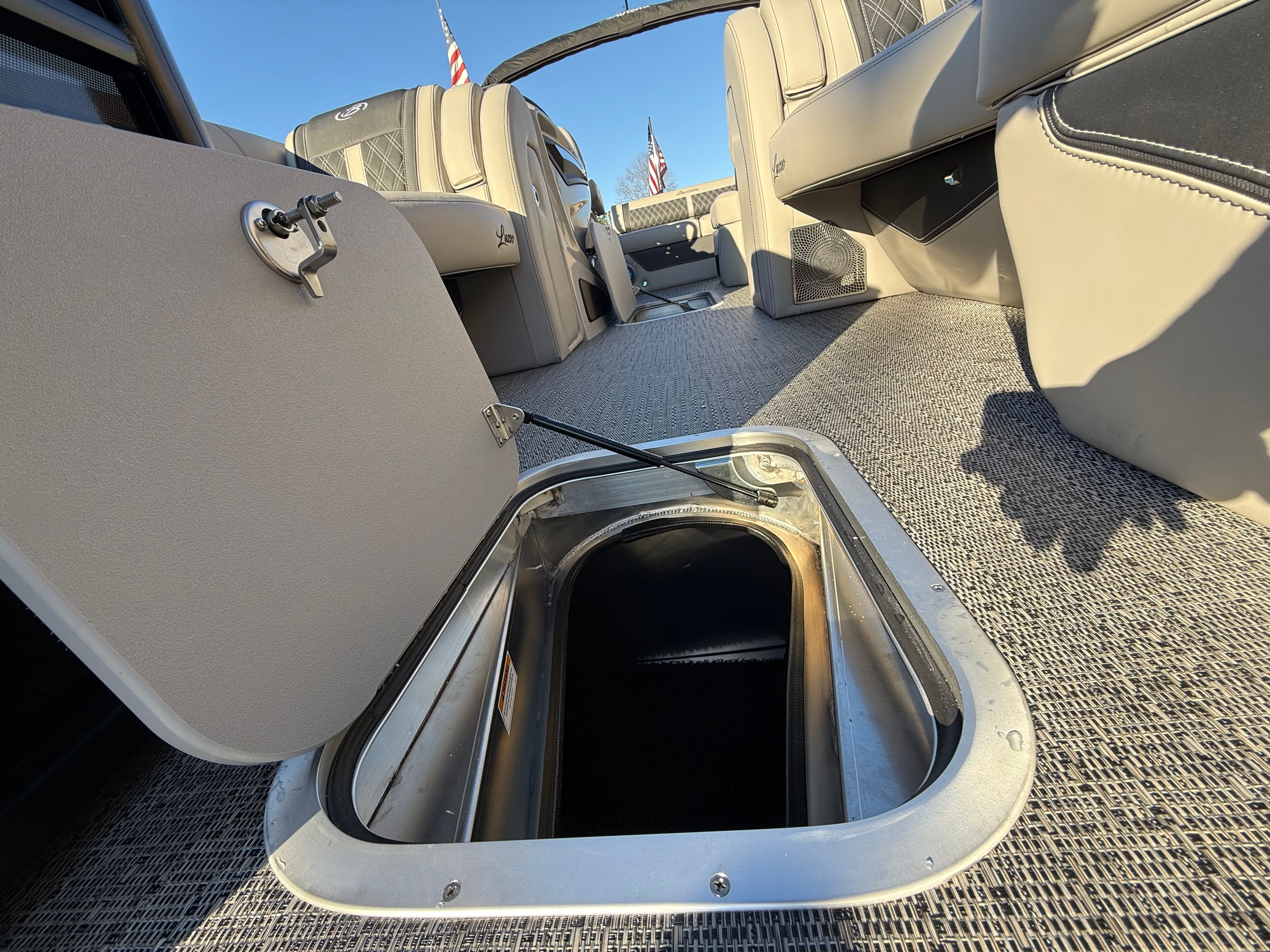 The Barletta Lusso L23U is designed with practicality in mind, making ownership easy and enjoyable. The spacious deck offers plenty of storage for gear, snacks, and personal items, keeping everything organized and accessible. The hydraulic and power assist steering simplifies docking and maneuvering, even in tight spaces, while the efficient Mercury 250L Verado V8 engine helps you make the most of every outing.Digital gauges provide clear, real-time information, so you can monitor performance and conditions at a glance. The durable flooring and high-quality furniture are built to withstand the rigors of frequent use, ensuring your pontoon remains comfortable and attractive for years to come. The exterior lighting not only adds style but also improves visibility, making nighttime docking and navigation safer and more convenient.