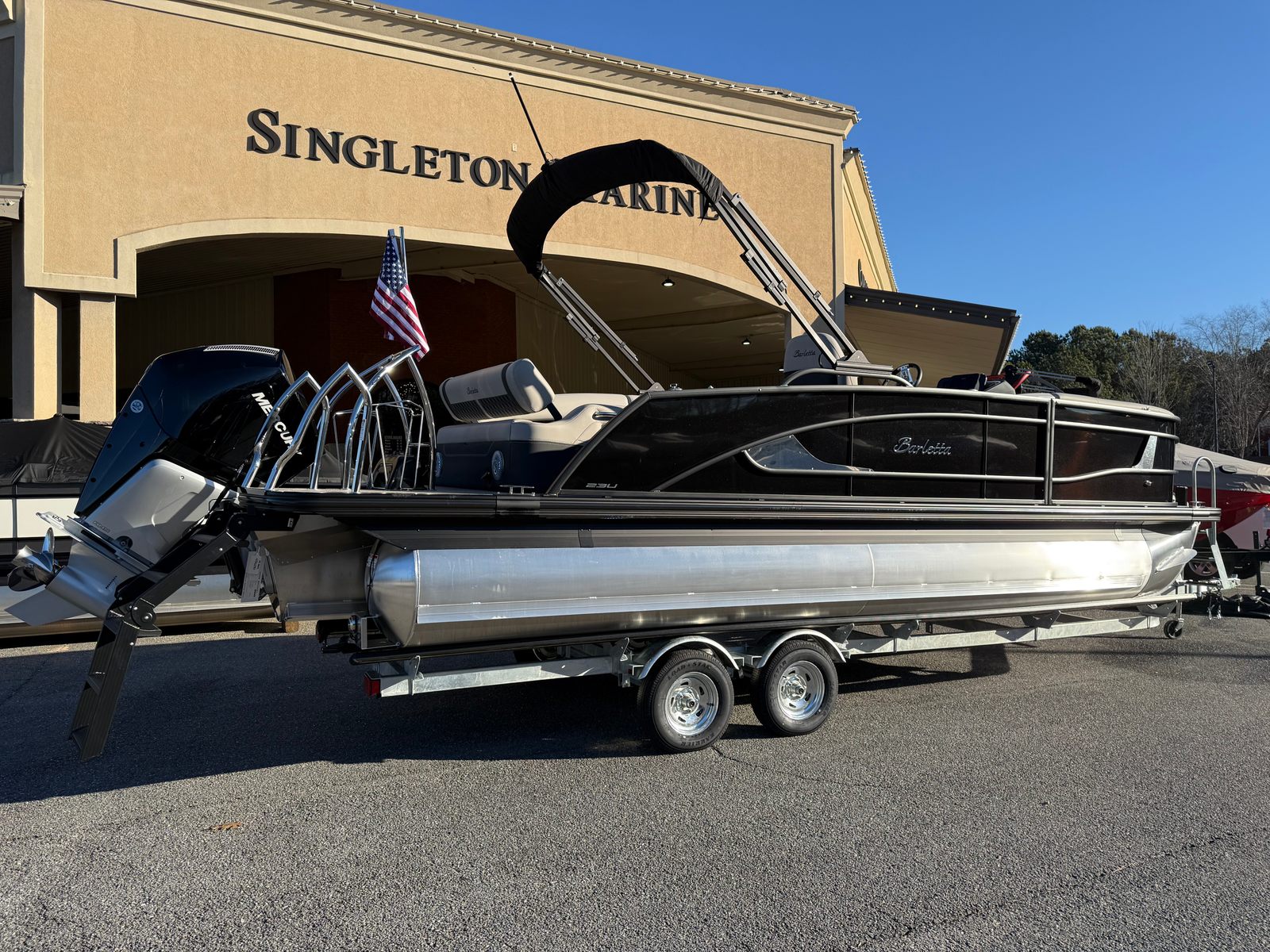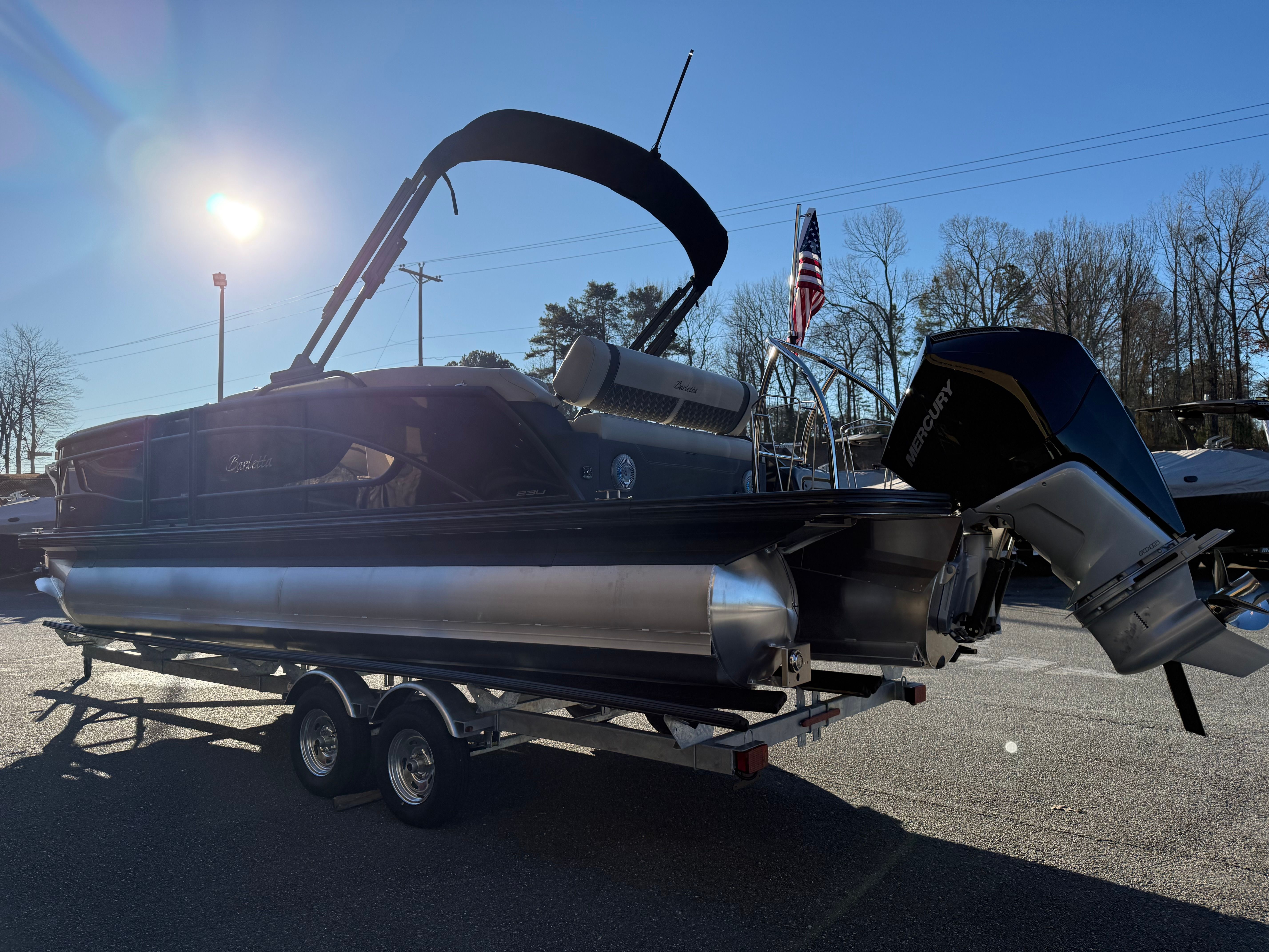 The 2026 Barletta Lusso L23U pontoon boat combines luxury, performance, and innovation in a stunning package that’s perfect for families, friends, and boating enthusiasts alike. With its powerful Mercury 250L Verado V8 engine, advanced digital controls, and elegant design elements like the Black Diamond sweep and accent colors, this pontoon is built to impress. Special features such as the Blackout Package Lusso, Marquesan Gray with Onyx furniture, Amore Gray flooring, hydraulic and power assist steering, digital gauges, stainless steel prop rigging, and exterior lighting ensure a premium boating experience.If you’re looking for a pontoon boat for sale that delivers comfort, style, and excitement, the Barletta Lusso L23U is ready to elevate your time on the water. Discover the joy of owning a Barletta boat for sale and make every outing an adventure. Contact your local dealer today to learn more about this exceptional pontoon and start planning your next unforgettable journey.