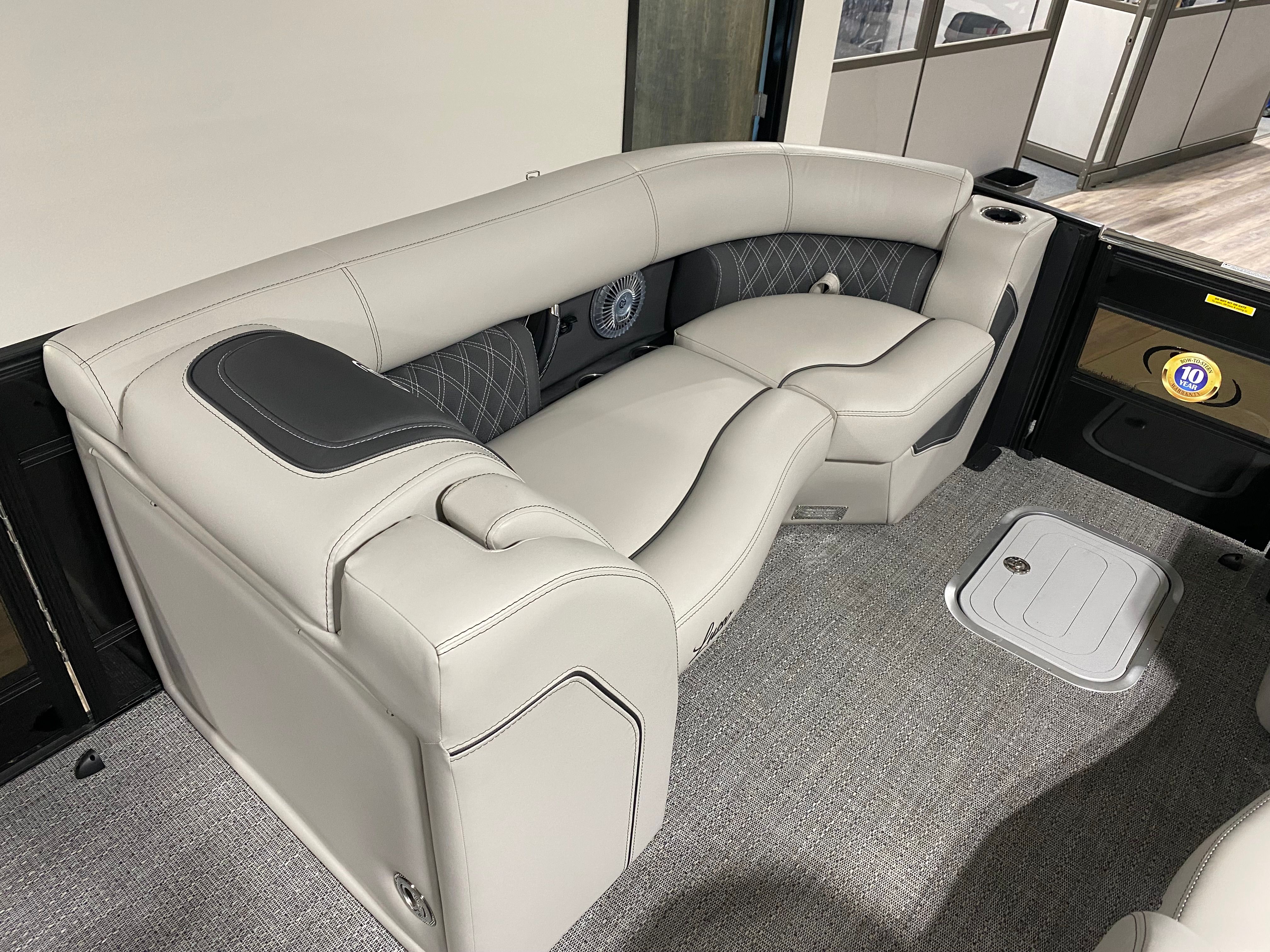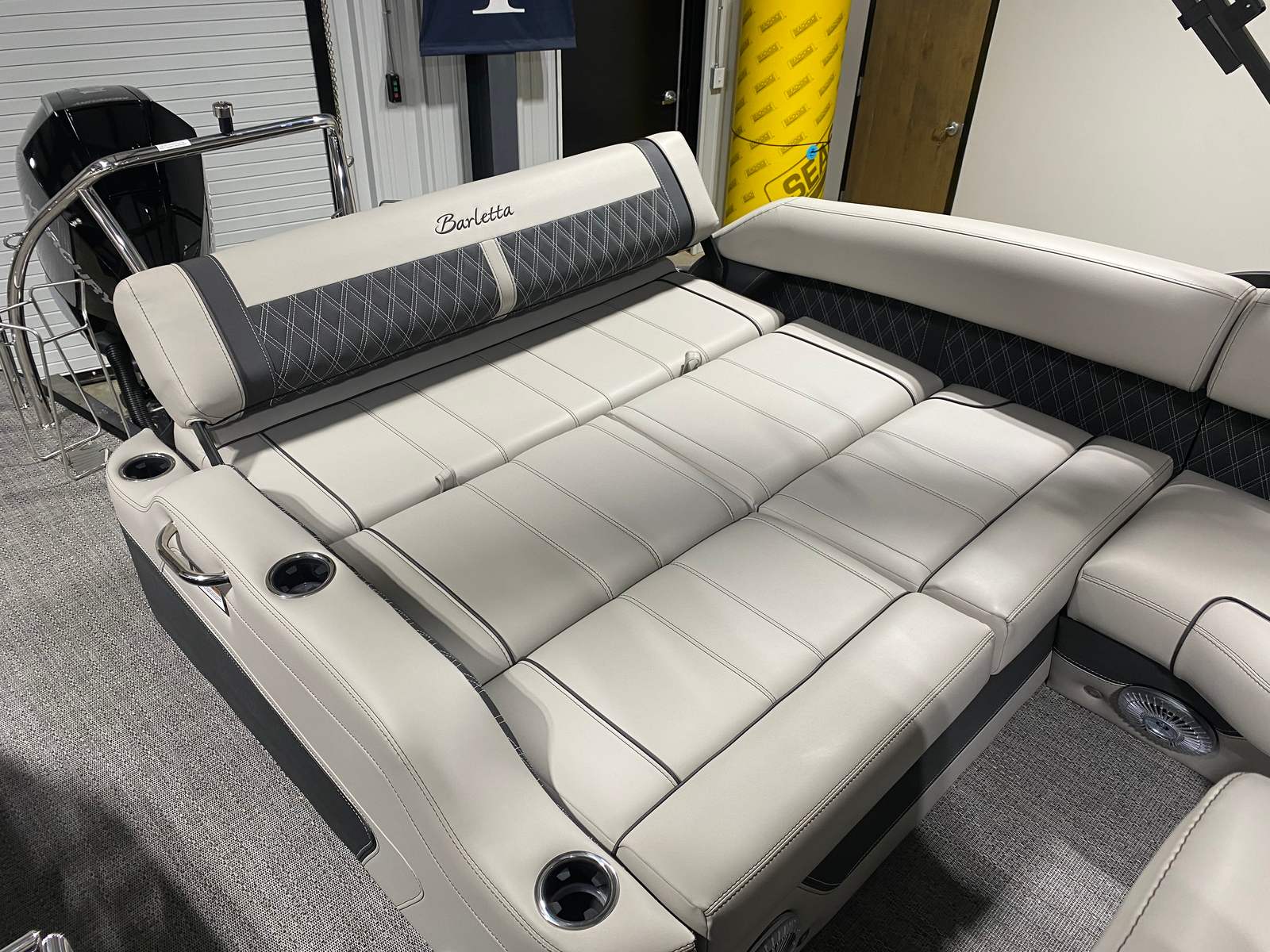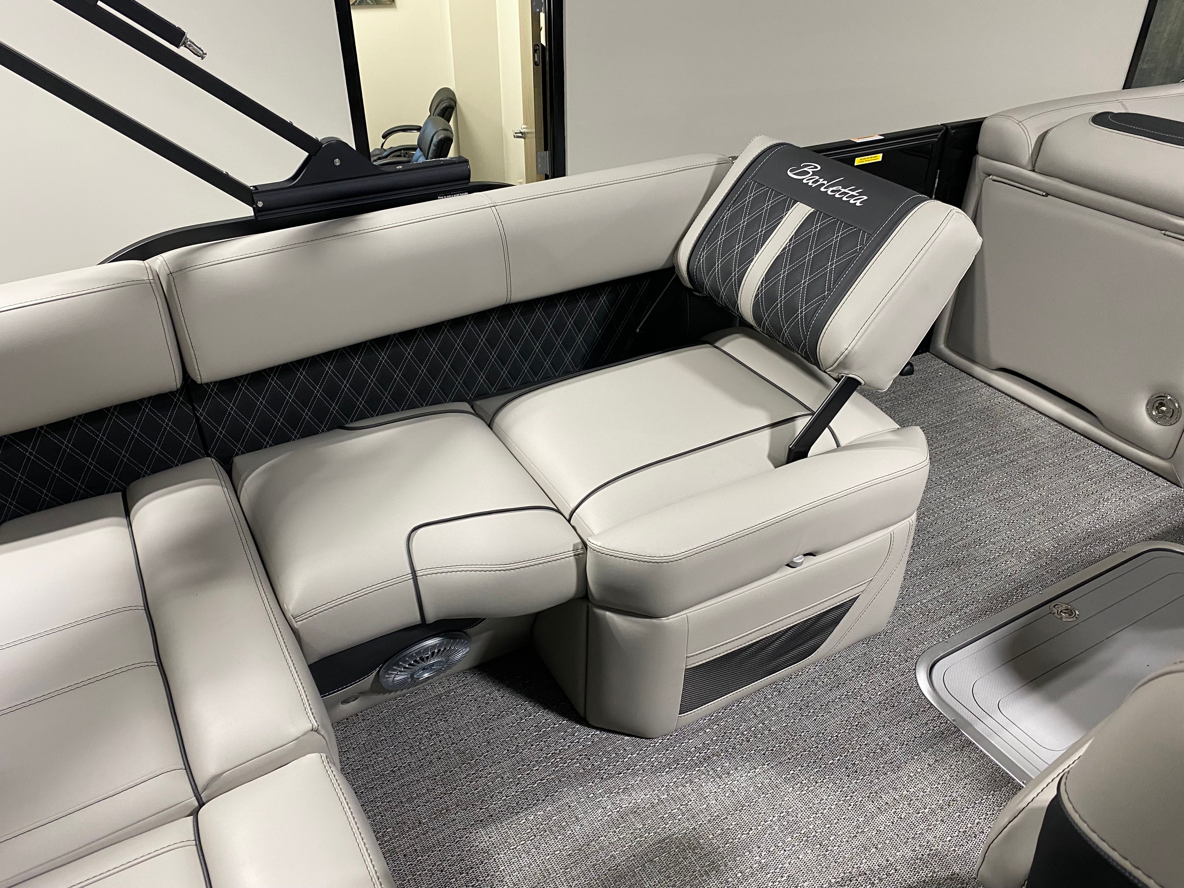 The Barletta Lusso L23U is a 2026 model pontoon boat, measuring an impressive 25.5 feet in length. This spacious design ensures ample room for guests, gear, and entertainment, making it an ideal choice for those who value comfort and versatility. As a new pontoon boat for sale, the Lusso L23U showcases Barletta’s commitment to quality craftsmanship and cutting-edge design. Every detail, from the Marquesan Gray/Onyx furniture to the Amore Gray flooring, reflects a sophisticated aesthetic that elevates your time on the water.