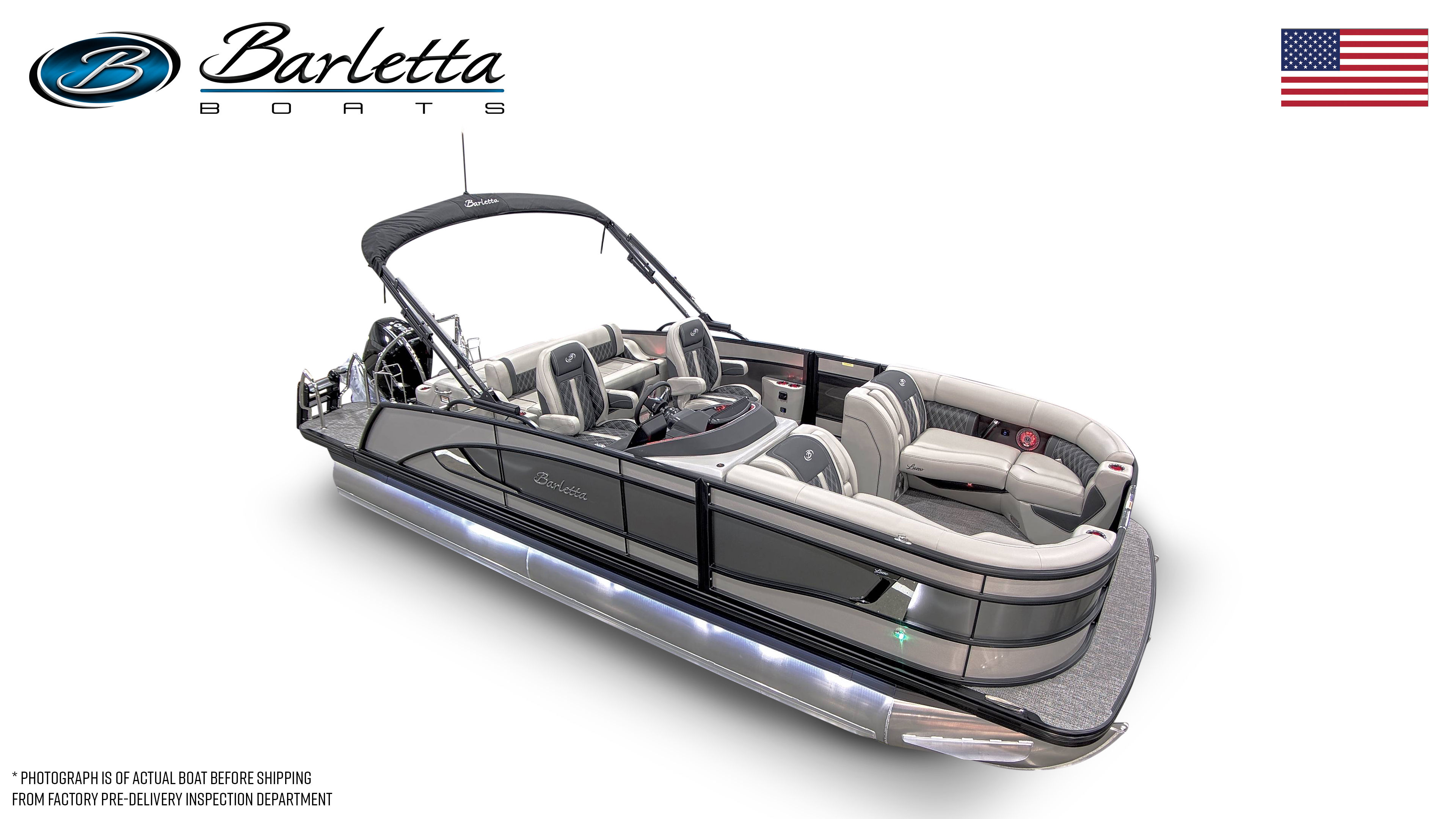 The 2026 Barletta Lusso L23UC is more than just a pontoon boat for sale; it is an invitation to experience the best that boating has to offer. With its striking Champagne and Gray Moonstone color scheme, Blackout Package Lusso, Marquesan Gray/Onyx furniture, Amore Gray flooring, and advanced Mercury Verado V8 engine, this Barletta boat for sale stands out as a leader in luxury, performance, and innovation. Enjoy the benefits of digital controls, hydraulic and power assist steering, digital gauges, and captivating exterior lighting, all designed to enhance your time on the water. If you are ready to elevate your boating lifestyle, the Barletta Lusso L23UC is waiting to make your dreams a reality. Contact your local dealer today to learn more about this exceptional pontoon boat and start your next adventure in style.