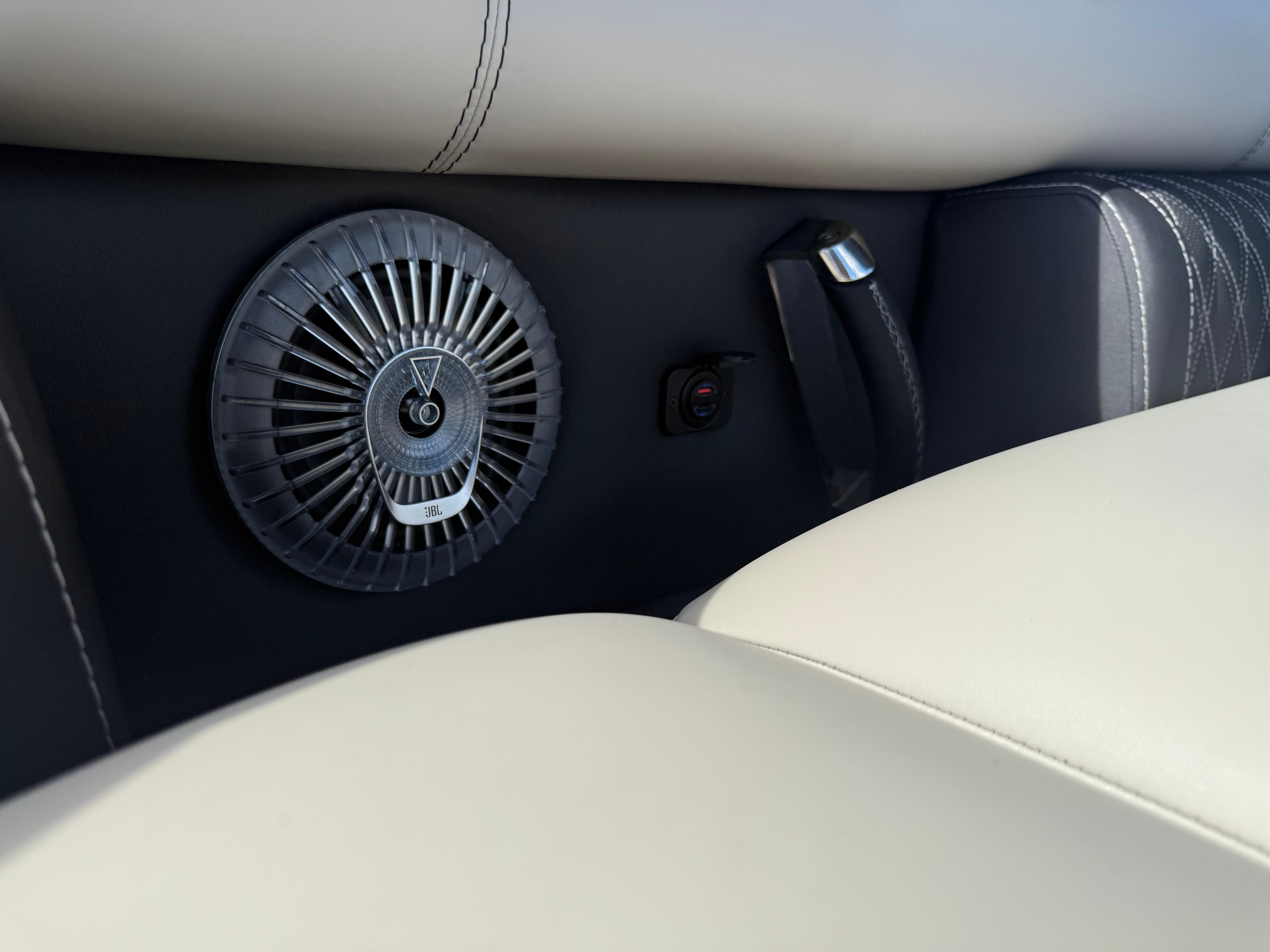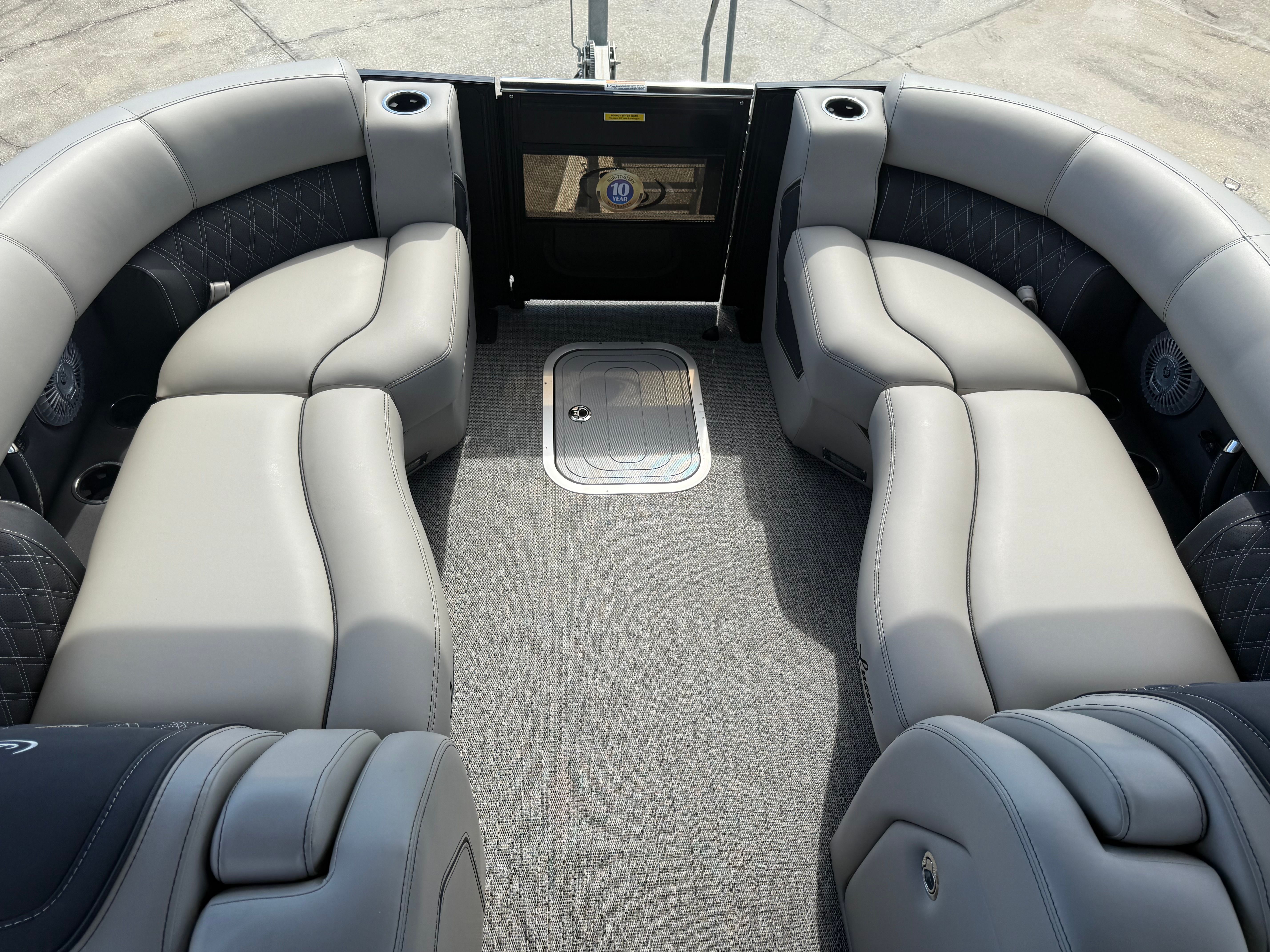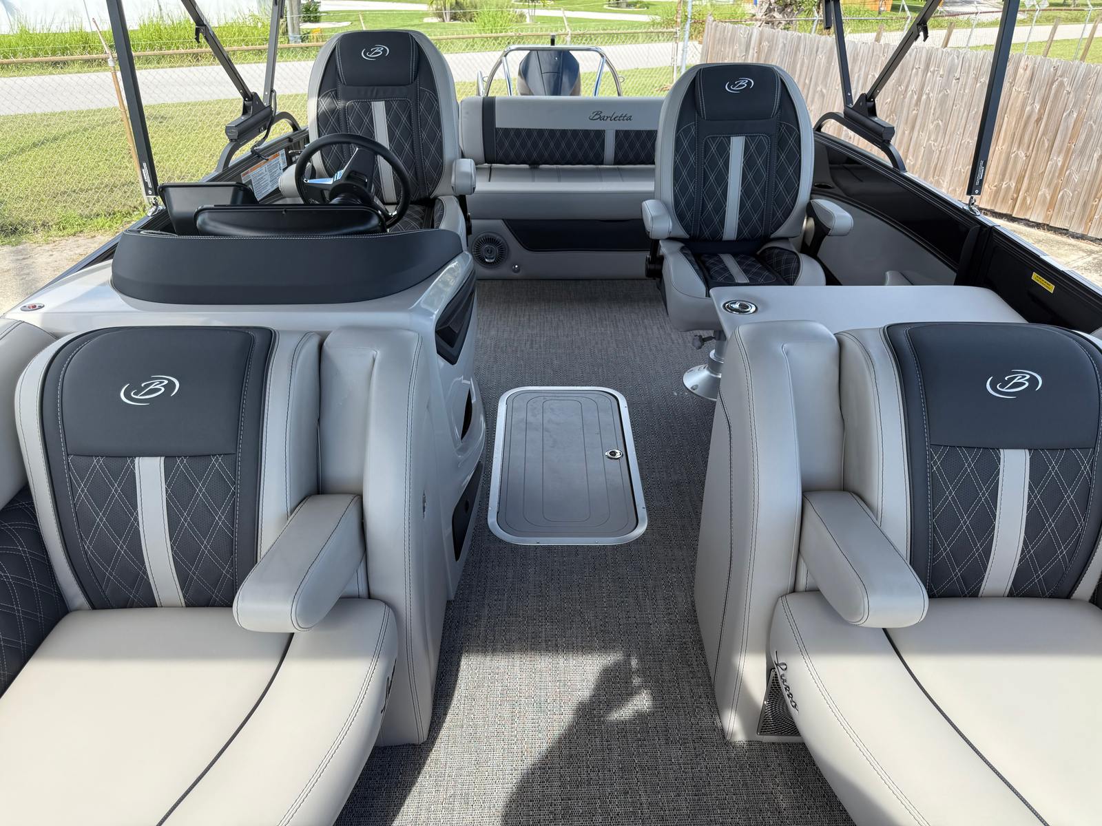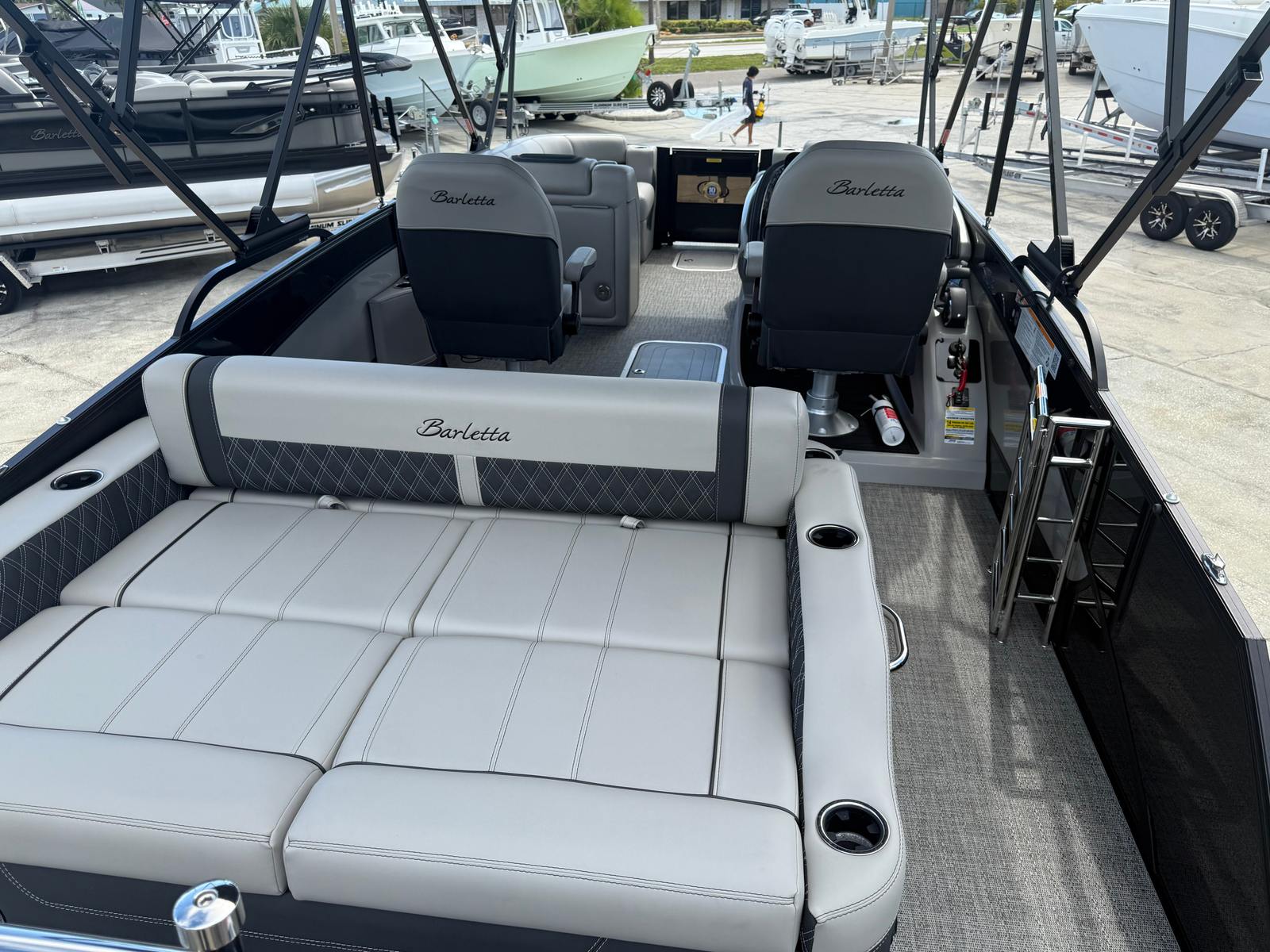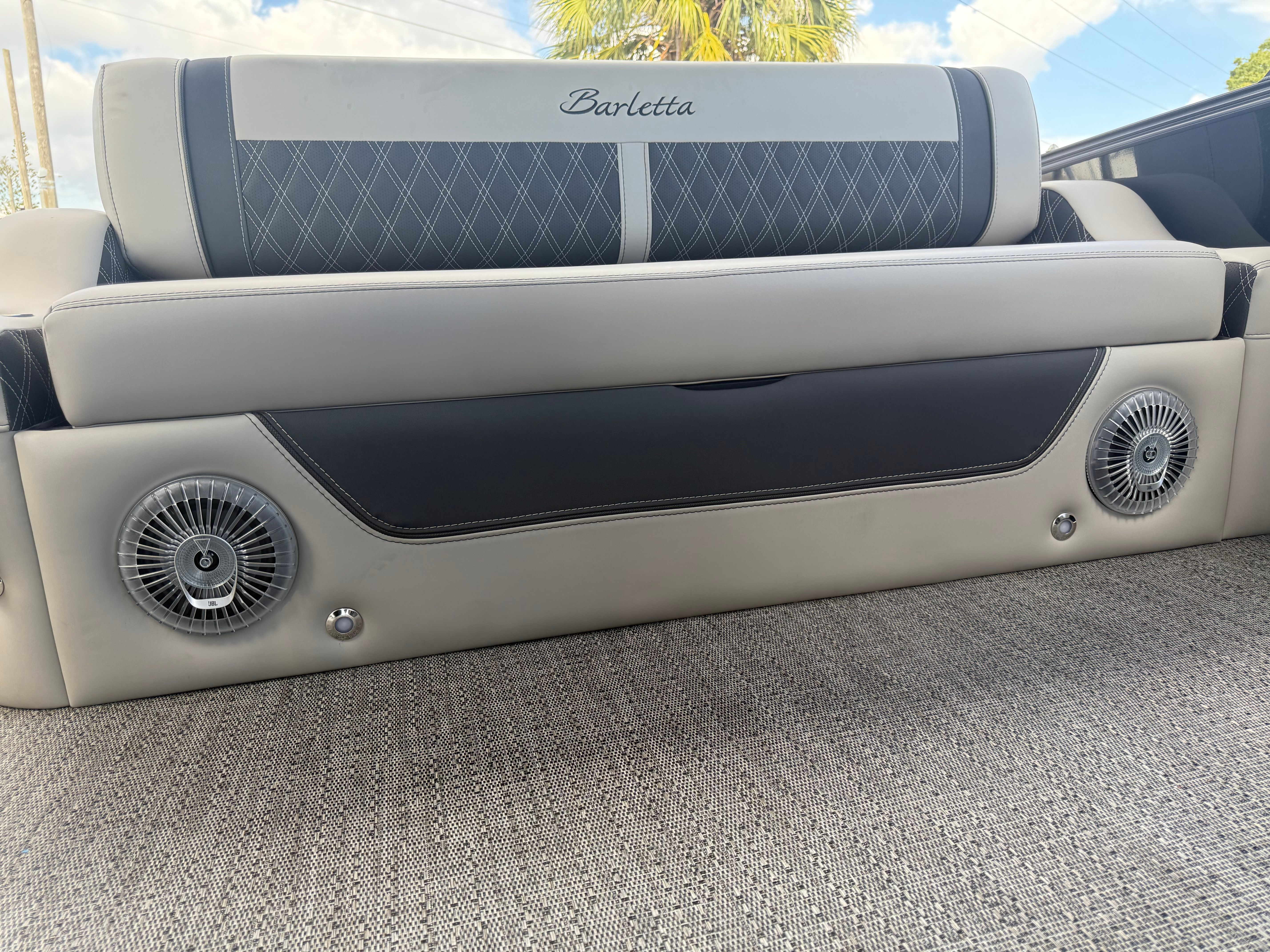 Step aboard the Barletta Lusso L23UC and immerse yourself in a world of comfort and elegance. The Blackout Package Lusso adds a touch of sophistication, enhancing the boat’s modern appeal. The furniture, finished in Marquesan Gray/Onyx, offers plush seating and ergonomic design, ensuring every passenger enjoys maximum comfort. The Amore Gray flooring provides a stylish and practical foundation, resistant to wear and easy to maintain.This pontoon is part of the exclusive Coastal Edition Lusso, tailored for those who appreciate both luxury and resilience in their watercraft. The double bimini setup, including an additional power bimini, delivers versatile shade options, allowing you to customize your onboard environment for sun-soaked days or cool, relaxing afternoons. Digital gauges keep you informed and in control, while the Mercury Digital DTS Pre-Rig and Vessel Link system streamline engine management for a truly modern boating experience.