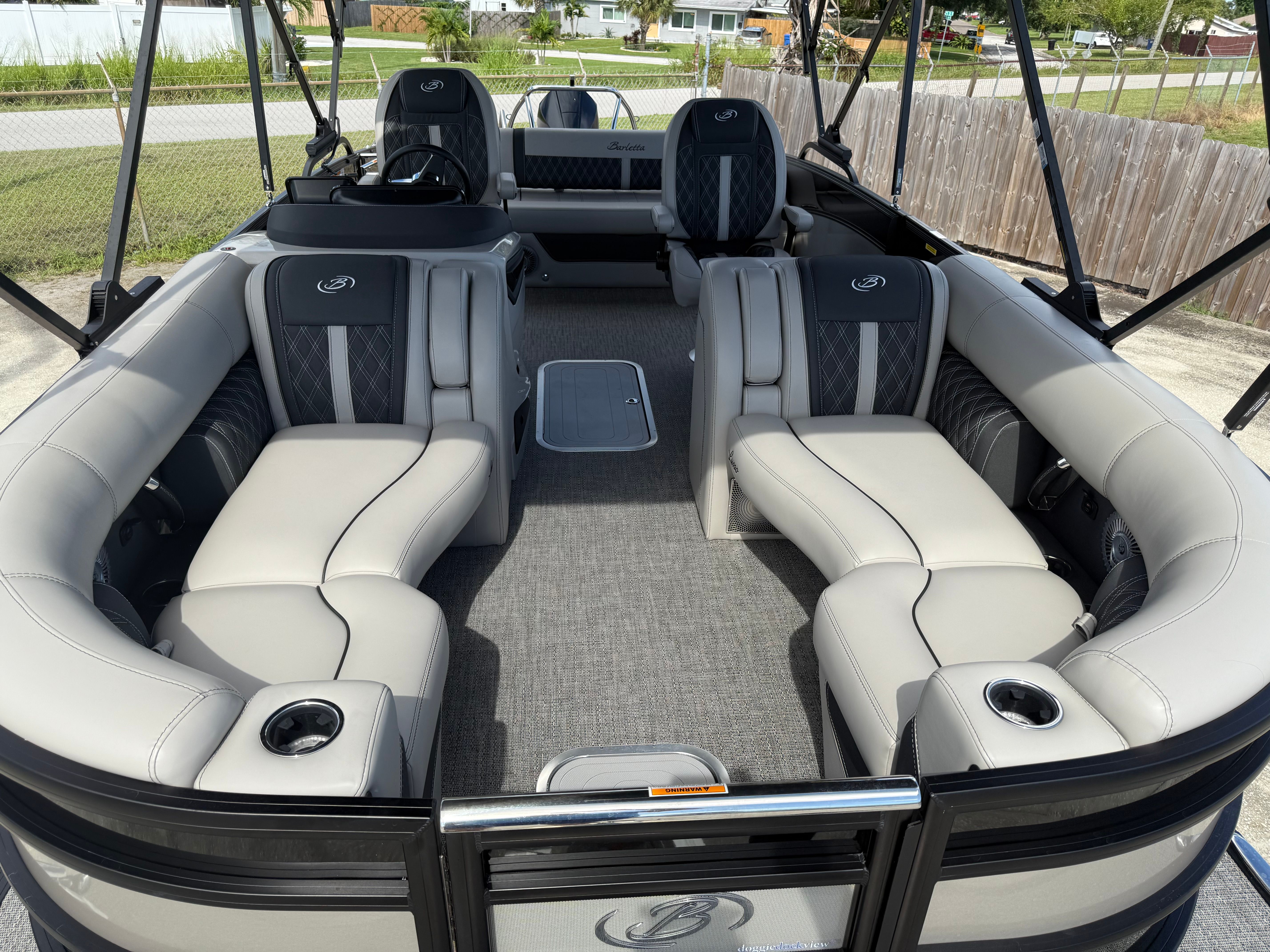 Owning the Barletta Lusso L23UC Pontoon means embracing a lifestyle of fun, relaxation, and social connection. The spacious deck layout is perfect for hosting family gatherings, lively parties, or intimate sunset cruises. The luxurious seating and ample room encourage guests to unwind and enjoy the journey, while the advanced steering and engine systems ensure a smooth, quiet ride every time.The double bimini setup offers flexible protection from the sun, making it easy to create the ideal atmosphere for any occasion. Whether you’re lounging with friends, enjoying a meal, or simply soaking in the scenery, the Lusso L23UC provides the perfect backdrop for unforgettable moments. The stylish Black Diamond and Champagne color scheme, paired with the Blackout Package, ensures you’ll arrive in style wherever your adventures take you.
