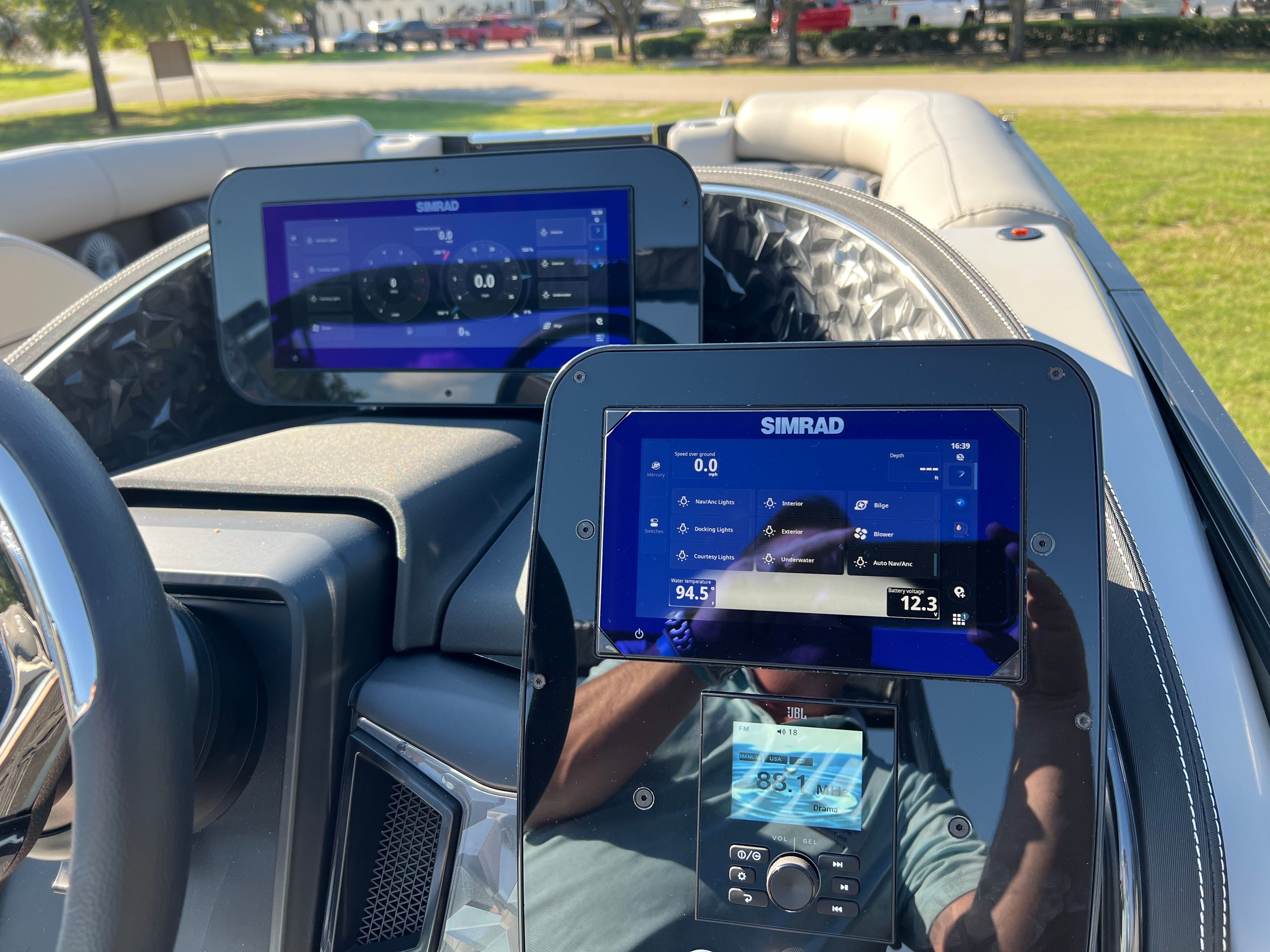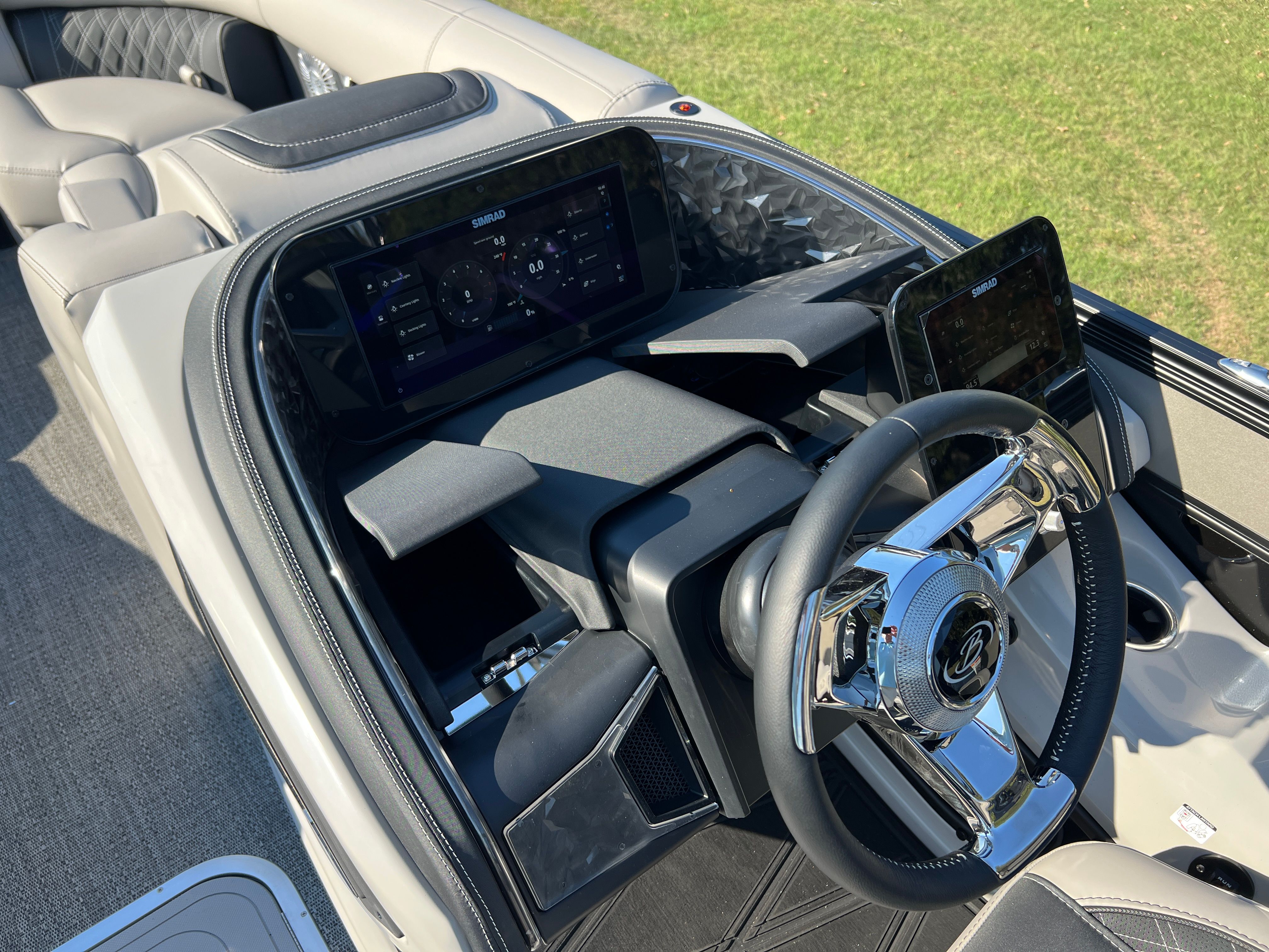 Powering the Lusso L23UC is a robust Mercury (D) 300L Verado V8 engine, delivering an impressive 300 horsepower. This single-engine setup is expertly rigged with a stainless steel prop, ensuring smooth acceleration and reliable performance. The Mercury Digital DTS Pre-Rig for VERADO engines with Vessel Link offers seamless digital control, while hydraulic and power assist steering make handling effortless, even in challenging conditions. Digital gauges provide precise, real-time feedback, allowing you to monitor your boat’s performance with confidence. Whether you’re cruising at a leisurely pace or opening up the throttle for some excitement, this Barletta pontoon boat offers a thrilling yet stable ride.