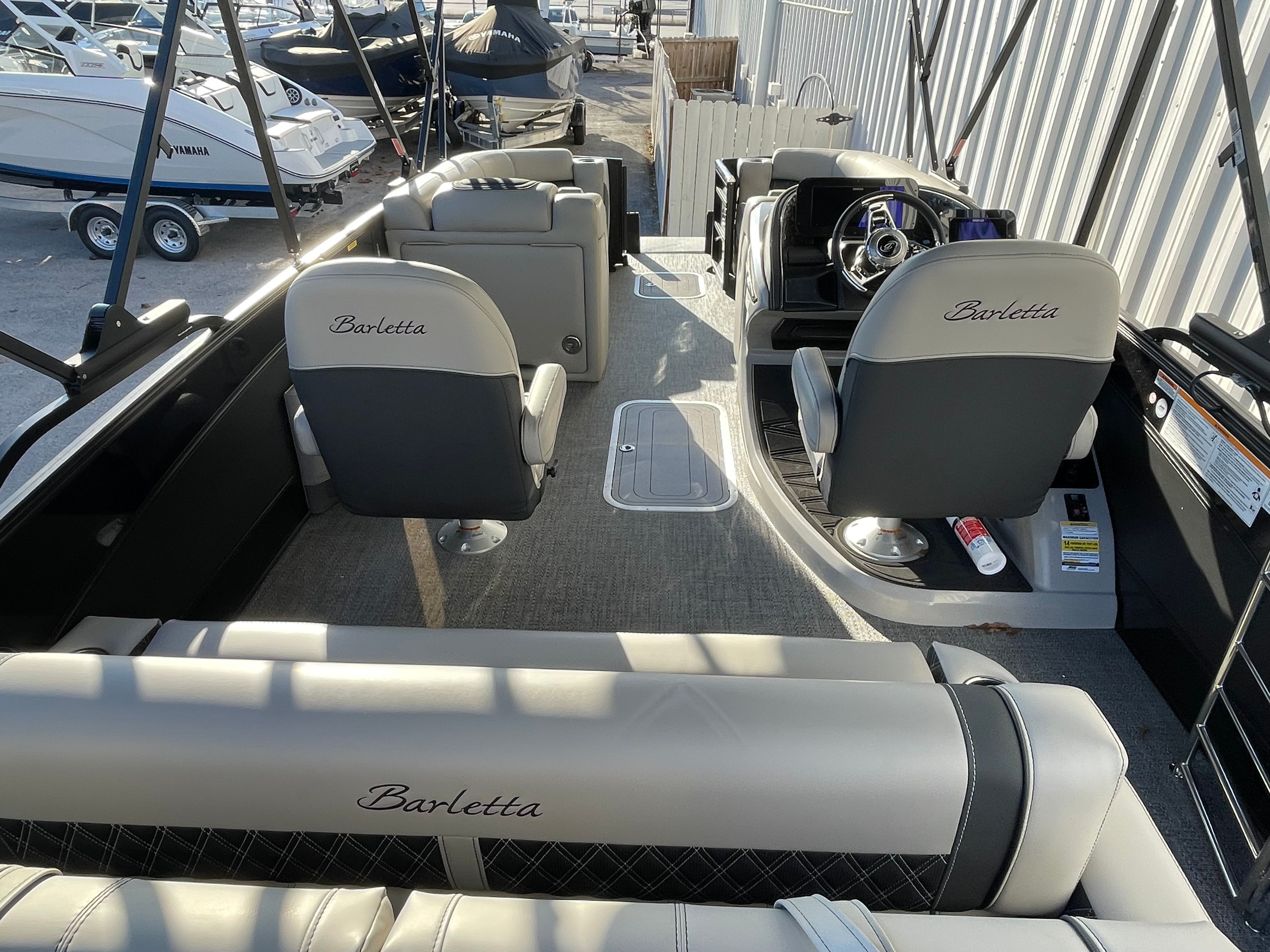 The 2026 Barletta Lusso L23U is a new 25.5-foot pontoon that commands attention both at the dock and on the open water. With its sleek lines and modern profile, this pontoon boat is a true head-turner. The Black Diamond sweep color and accent color create a bold, unified look, while the Blackout Package Lusso railskin package adds a touch of sophistication and exclusivity. Every inch of this vessel has been thoughtfully designed to maximize comfort, style, and functionality, making it an ideal choice for discerning boaters looking for a Barletta boat for sale that stands out from the crowd.