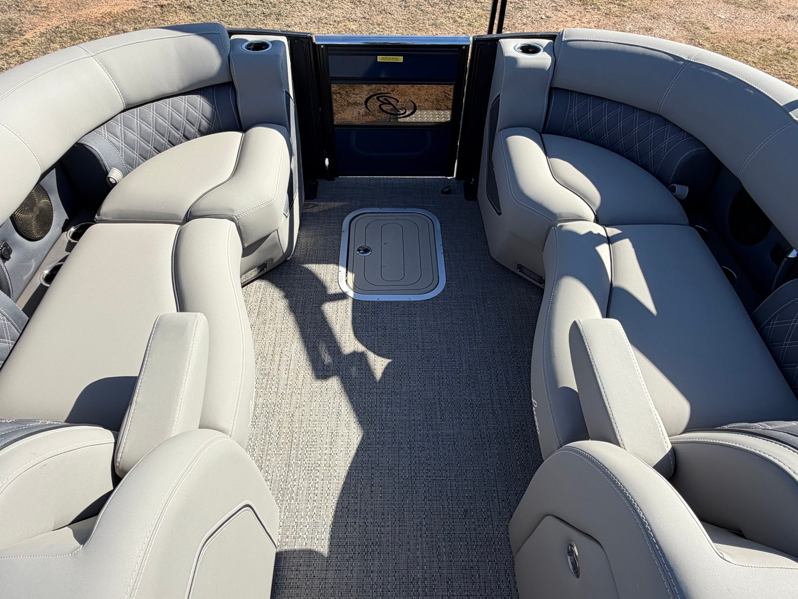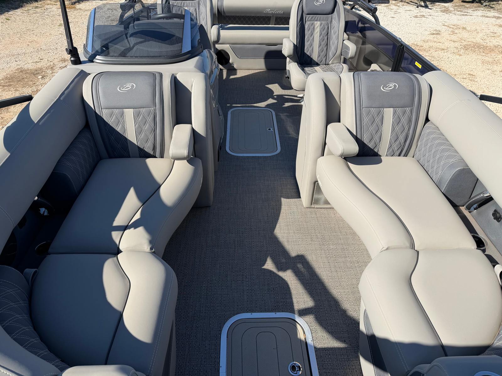 The 2024 Barletta Lusso L23UC is designed with both comfort and convenience in mind. Its spacious 25.42-foot deck provides ample room for guests to relax, socialize, and enjoy the scenery. The open layout is perfect for entertaining, with plush seating and thoughtfully placed amenities that enhance every outing. Special features of the Lusso L23UC include high-quality upholstery, a stylish helm, and a user-friendly control panel that puts everything you need at your fingertips. The pontoon’s sturdy construction and premium materials ensure durability and a smooth ride, while the elegant design details set it apart from other pontoon boats for sale.