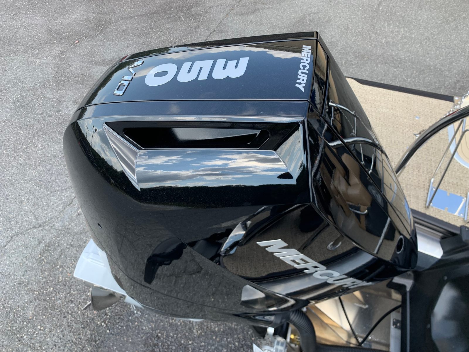 Practicality meets luxury in the Lusso L25M. The spacious layout provides plenty of room for storing gear, water toys, and personal items, keeping the deck clutter-free and organized. The efficient Mercury 350L Verado engine offers excellent fuel economy, allowing you to spend more time on the water and less time refueling. Docking and maneuvering are a breeze thanks to the responsive handling and advanced rigging, making this pontoon boat an excellent choice for both seasoned boaters and newcomers alike.The 2-bank battery charger ensures your boat’s electrical systems are always ready, so you can power up your devices, run lighting, and enjoy all the onboard amenities without worry. The Sport Bimini canvas provides quick and easy shade when you need it, enhancing comfort during hot summer days.