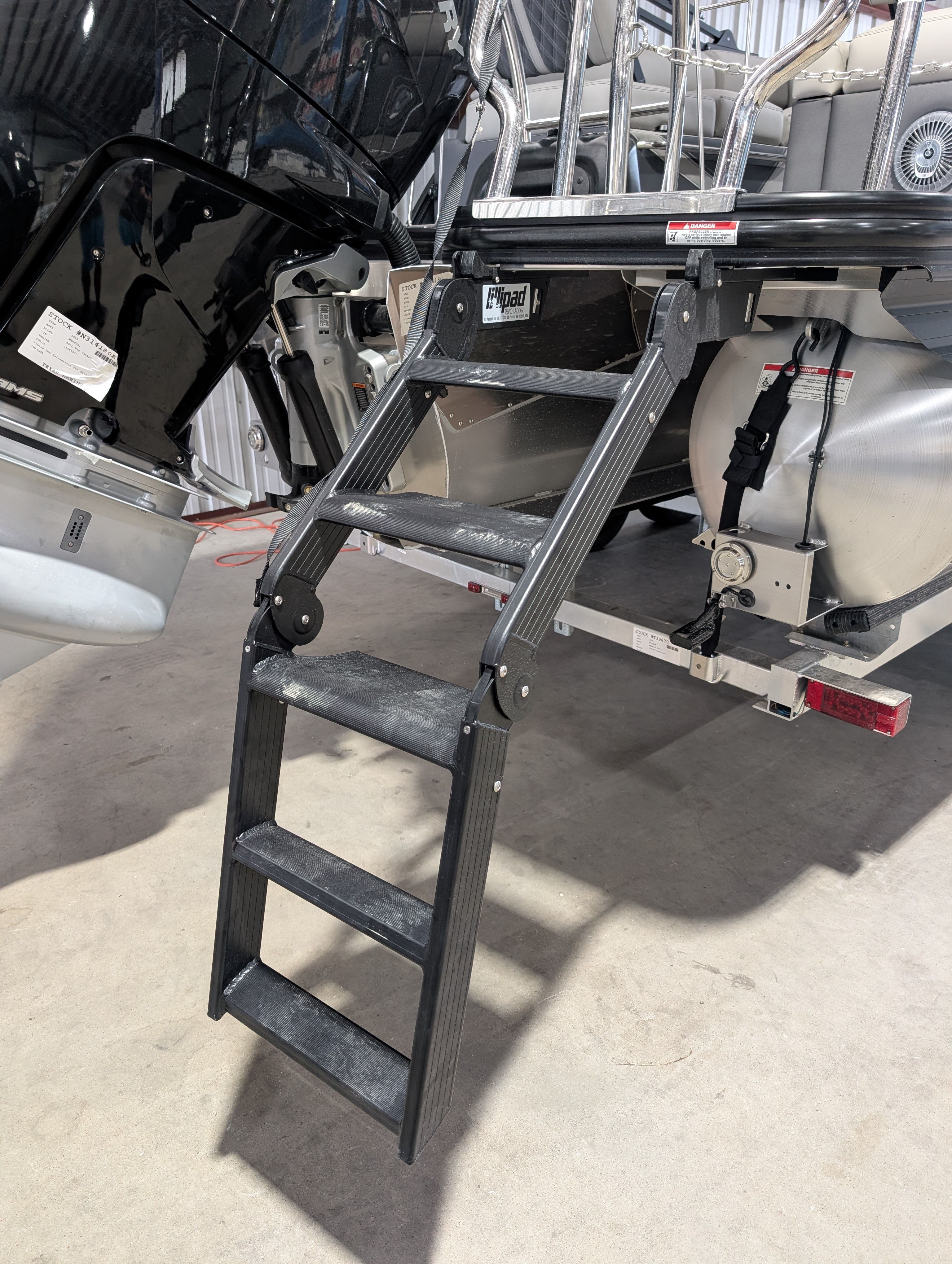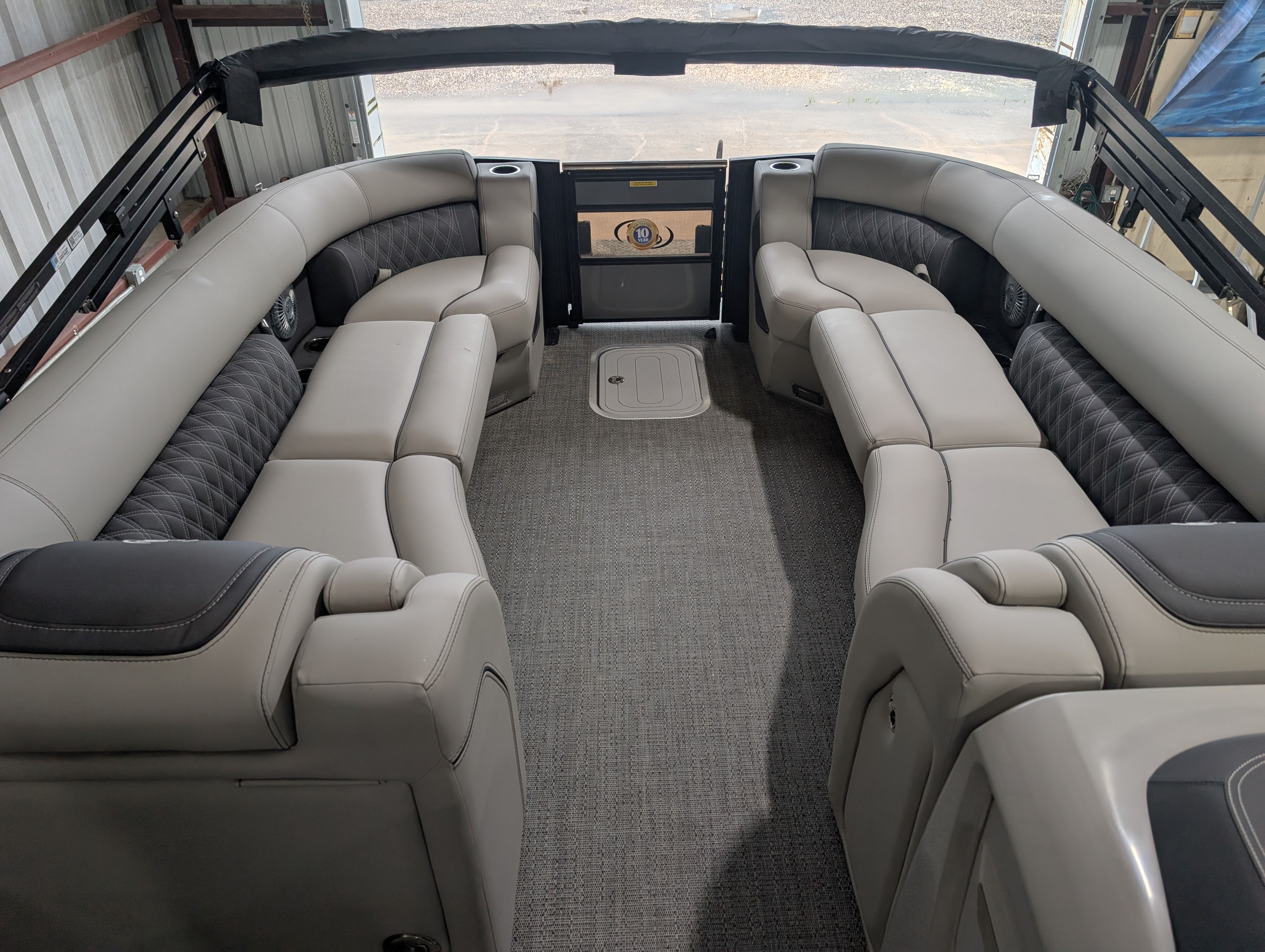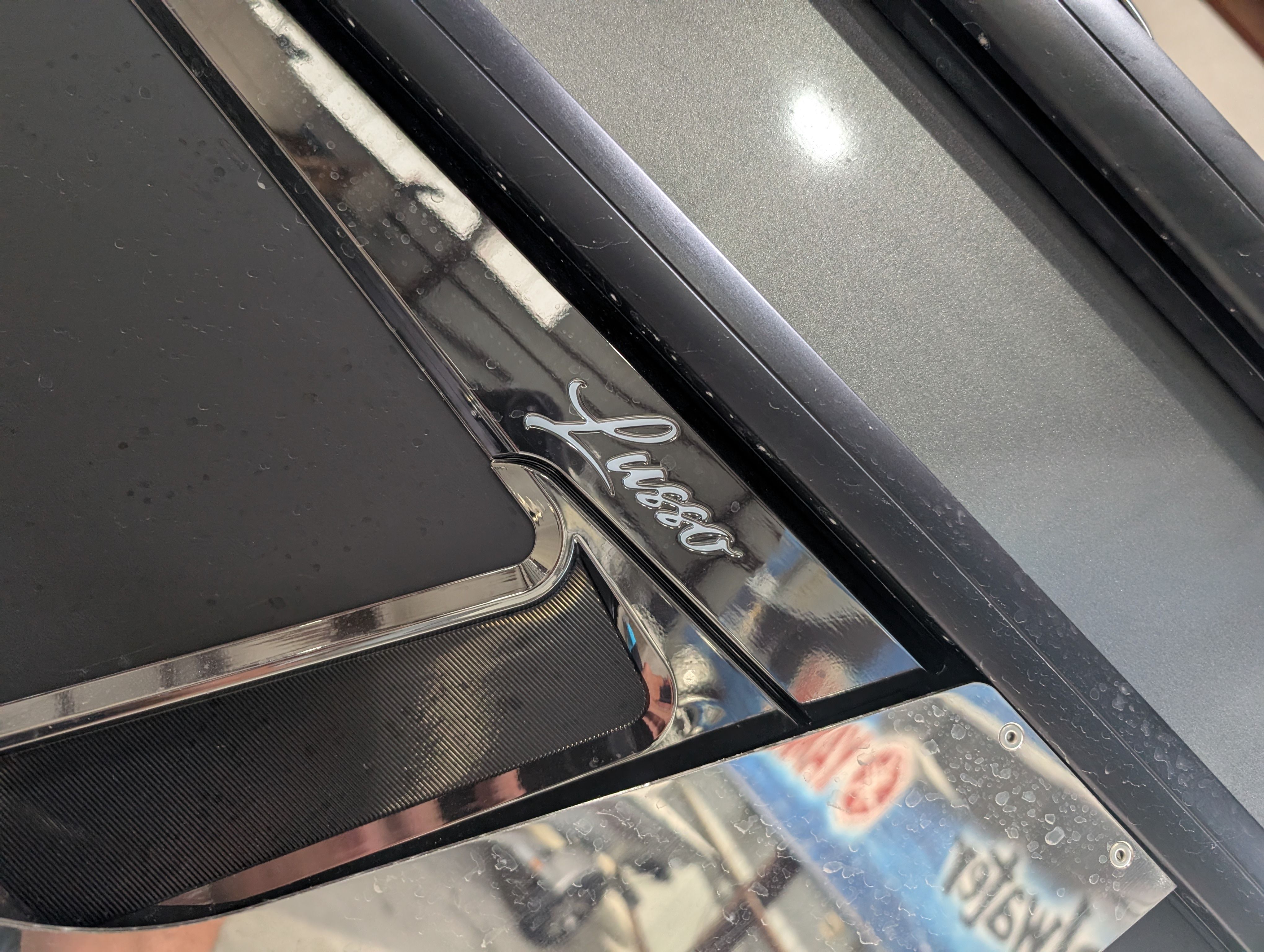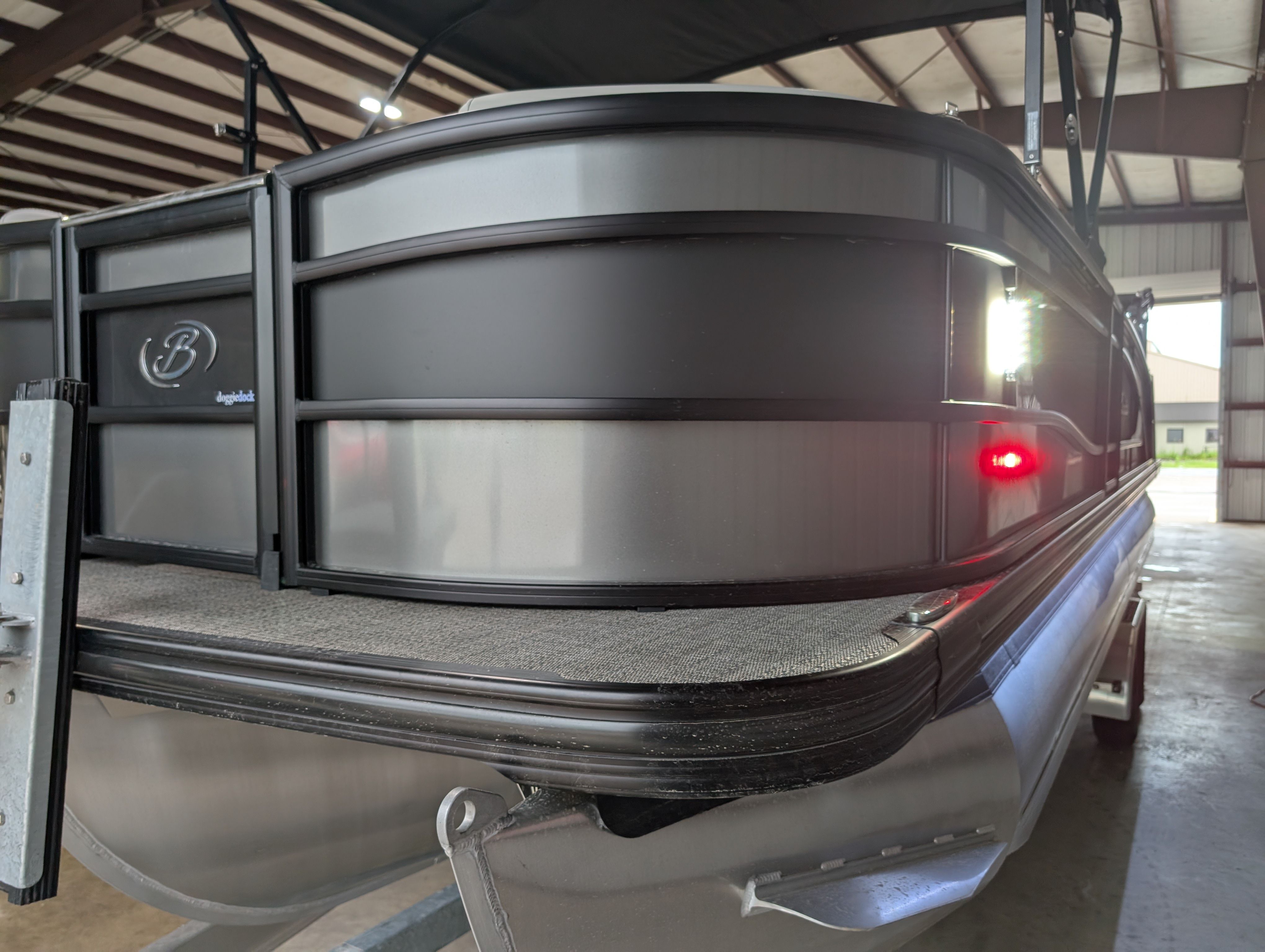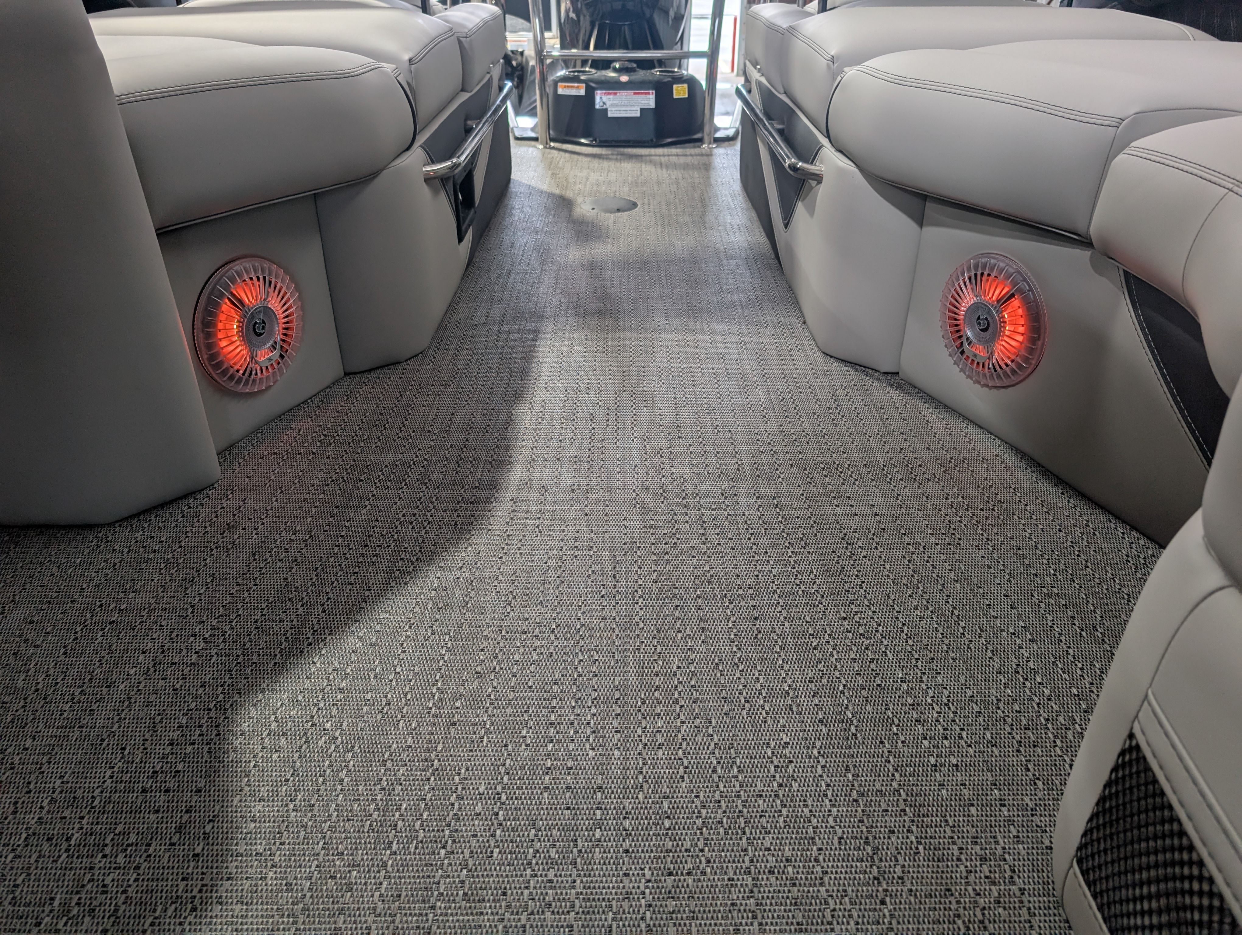 The Barletta Lusso L25M is packed with premium features that set it apart from other pontoon boats for sale. Step aboard and you’ll immediately notice the Amore Gray flooring, which provides a sophisticated foundation for the entire vessel. The interior is equally impressive, featuring Marquesan Gray furniture with Charcoal accents and a Matte Black accent color for a modern, upscale look.The captain’s chair at the helm is equipped with an adjustable pedestal, ensuring optimal comfort and visibility for the driver. Entertaining guests is a breeze thanks to the interior table, pedestal, and base, complete with Yeti-ready cupholders for your favorite beverages. Exterior lighting, including white underdeck and underwater lights, adds a dramatic flair for evening cruises and enhances safety after sunset.The Lusso L25M’s sweep color in Gray Moonstone complements its overall aesthetic, while the rigging and pre-rigging for the Mercury V10 engine ensure seamless integration and reliable performance. Every detail has been thoughtfully designed to maximize comfort, convenience, and enjoyment on the water.