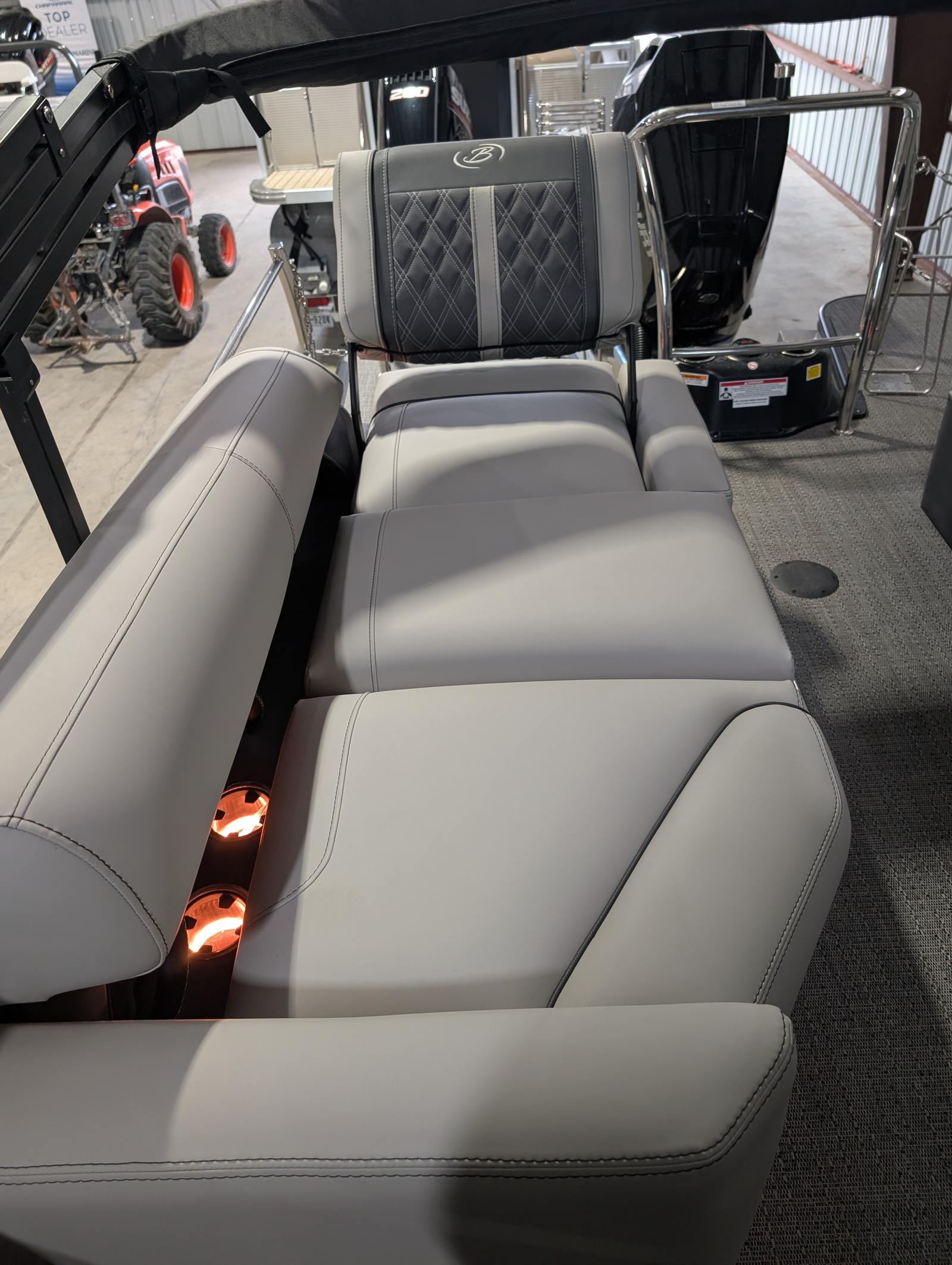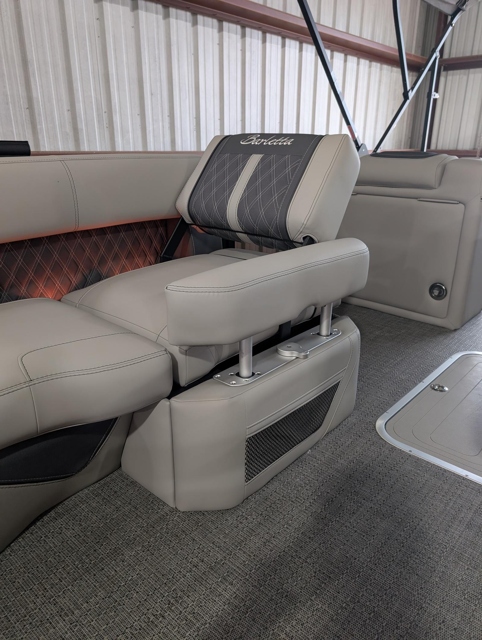 Owning the Barletta Lusso L25M means embracing a lifestyle of fun, relaxation, and adventure. The spacious deck layout provides plenty of room for family and friends to spread out, socialize, and soak up the sun. The high-quality flooring and plush furniture create a welcoming environment for lounging, dining, or celebrating special occasions.The adjustable captain’s chair ensures that every journey is comfortable, whether you’re navigating to a favorite fishing spot or cruising along the shoreline. The table and Yeti-ready cupholders make it easy to enjoy snacks and drinks while you’re anchored or underway, turning every outing into a memorable event.With exterior lighting illuminating the deck and underwater areas, you can extend your boating adventures into the evening, enjoying the tranquil ambiance of moonlit waters. The Lusso L25M’s stylish design and premium finishes make it a standout at any dock or marina, reflecting your taste for quality and sophistication.