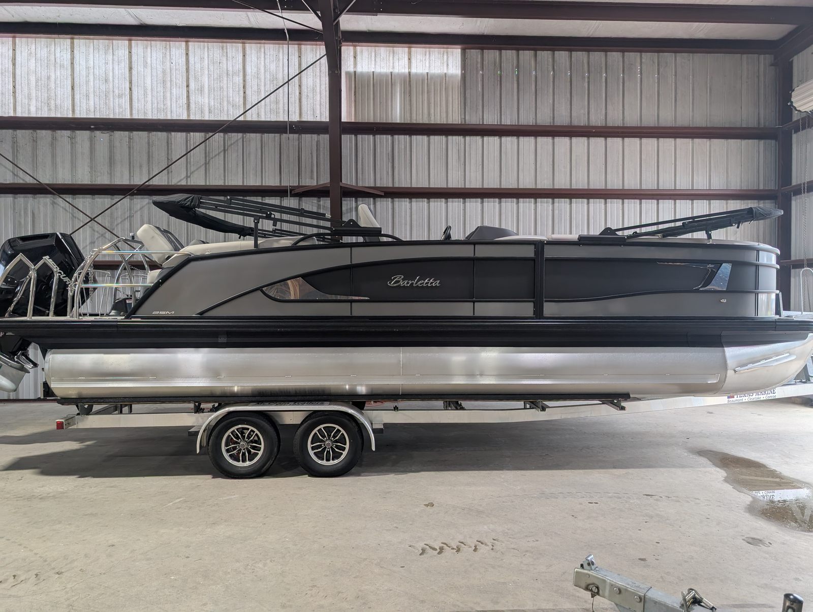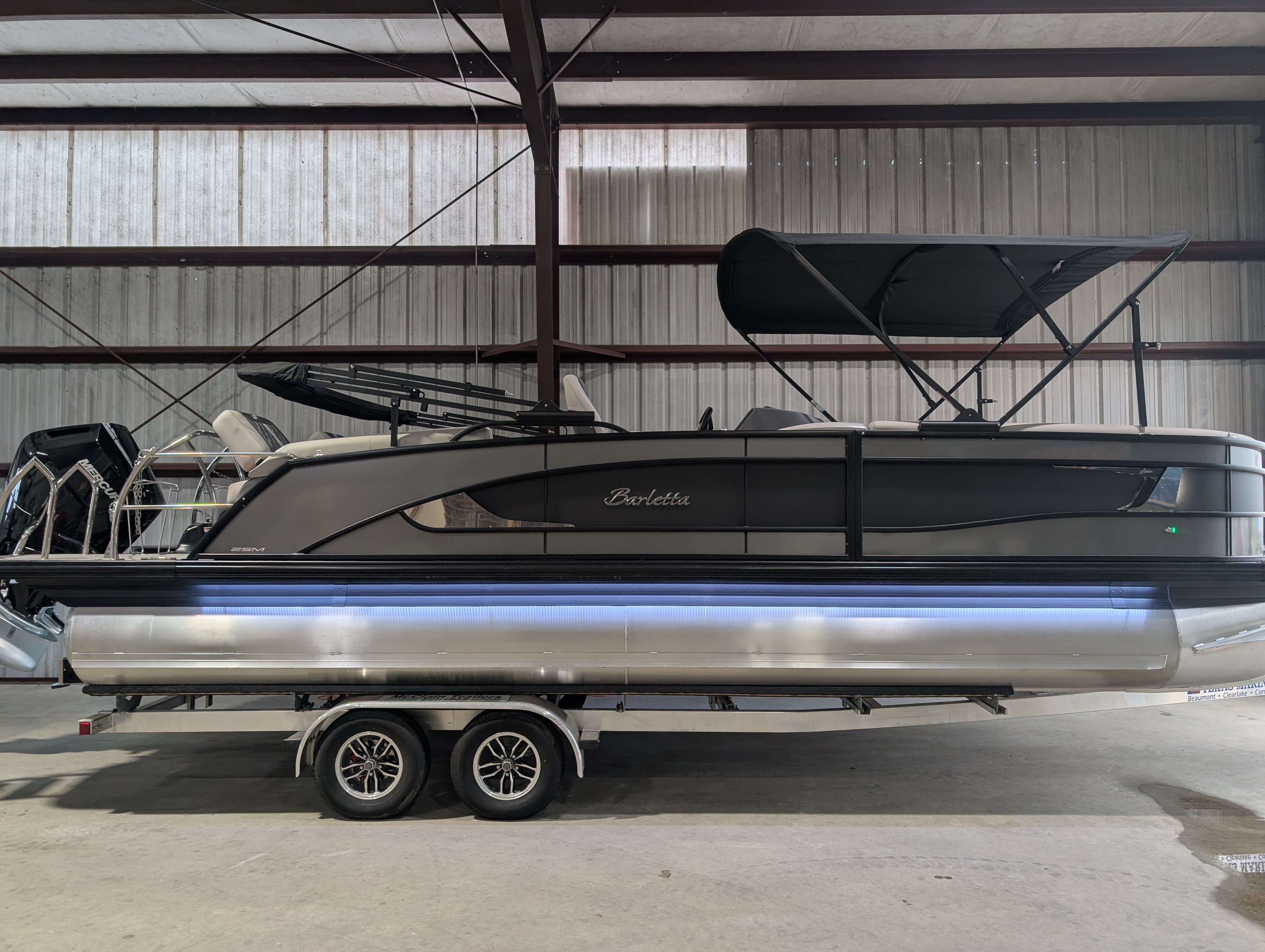 The 2025 Barletta Lusso L25M is a pontoon boat for sale that combines luxury, performance, and versatility in one exceptional package. With its powerful Mercury V10 Verado engine, stylish Amore Gray flooring, adjustable captain’s chair, dramatic exterior lighting, and sophisticated interior accents, this new pontoon is designed to elevate every moment on the water.Whether you’re seeking a Barletta boat for sale for family adventures, entertaining friends, or enjoying solo escapes, the Lusso L25M delivers unmatched comfort, style, and reliability. Don’t miss your chance to experience the ultimate in pontoon boating – contact your dealer today to learn more about the Barletta Lusso L25M and start planning your next aquatic adventure.