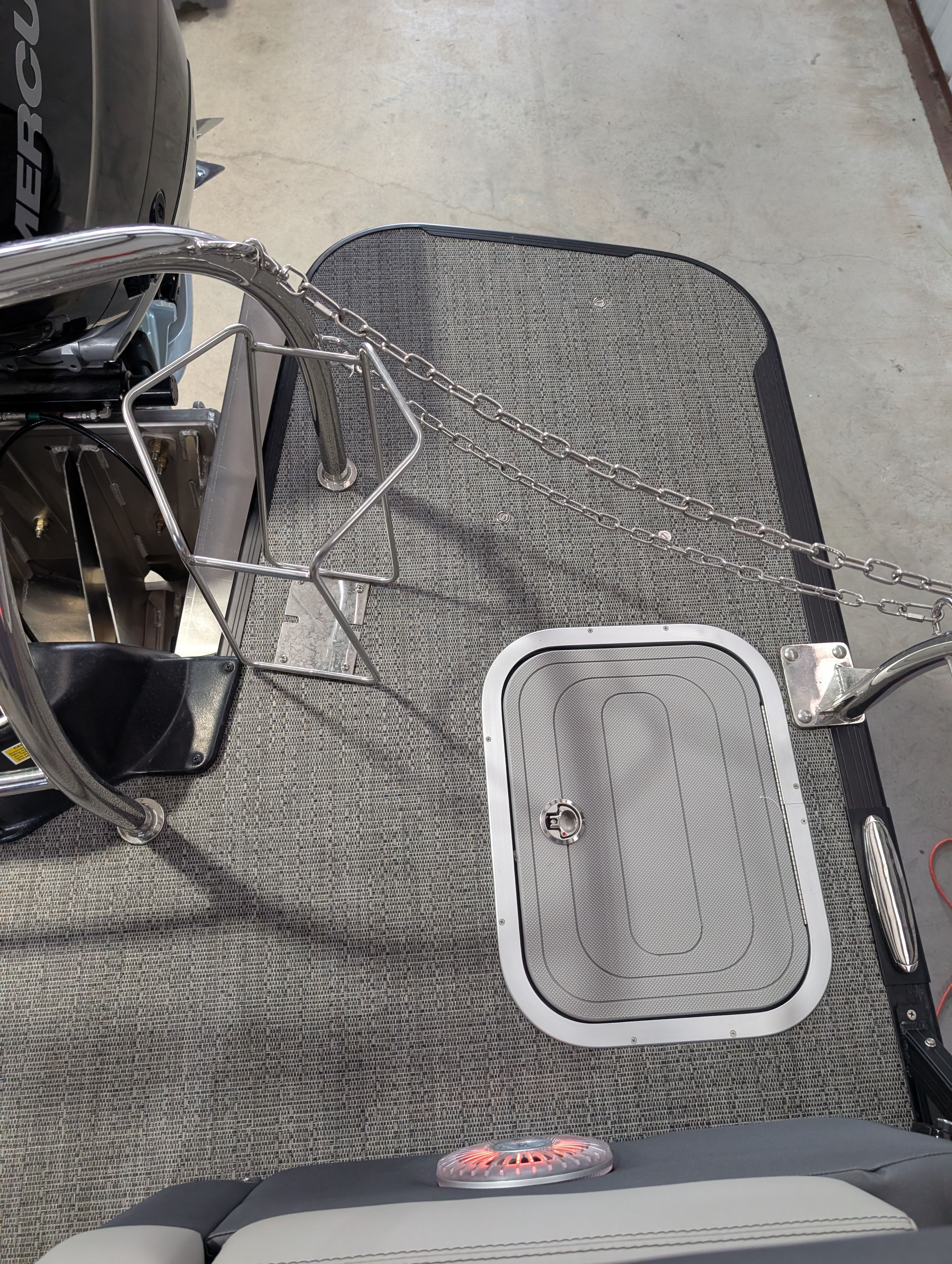 At the heart of the Barletta Lusso L25M is a single Mercury (D) 400L V10 Verado engine, delivering a robust 400 horsepower. This powerhouse ensures smooth acceleration, impressive top speeds, and effortless cruising, whether you’re gliding across calm lakes or tackling choppier waters. The V10 Verado is engineered for quiet operation and fuel efficiency, making every outing enjoyable and cost-effective. Rigged with a V10 prop and Mercury Digital Pre-Rig for V10, this pontoon boat offers responsive handling and precision control, giving you confidence behind the helm.