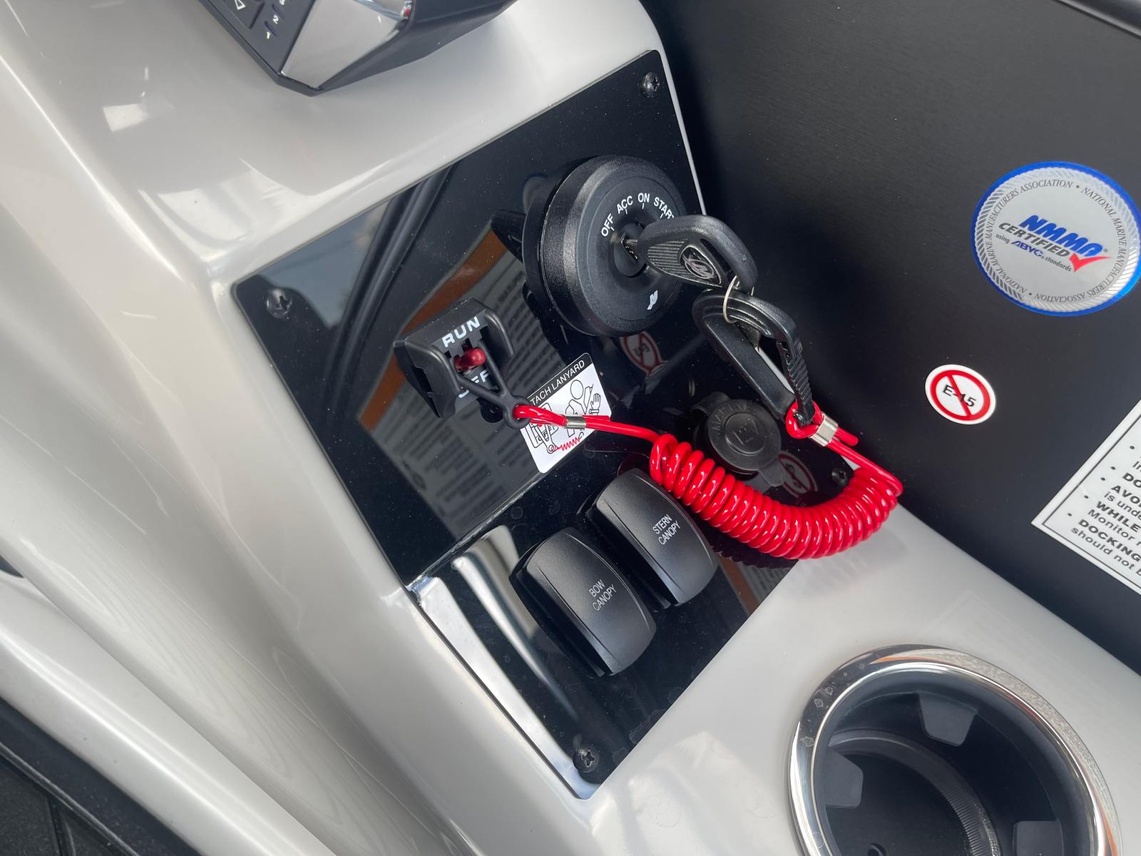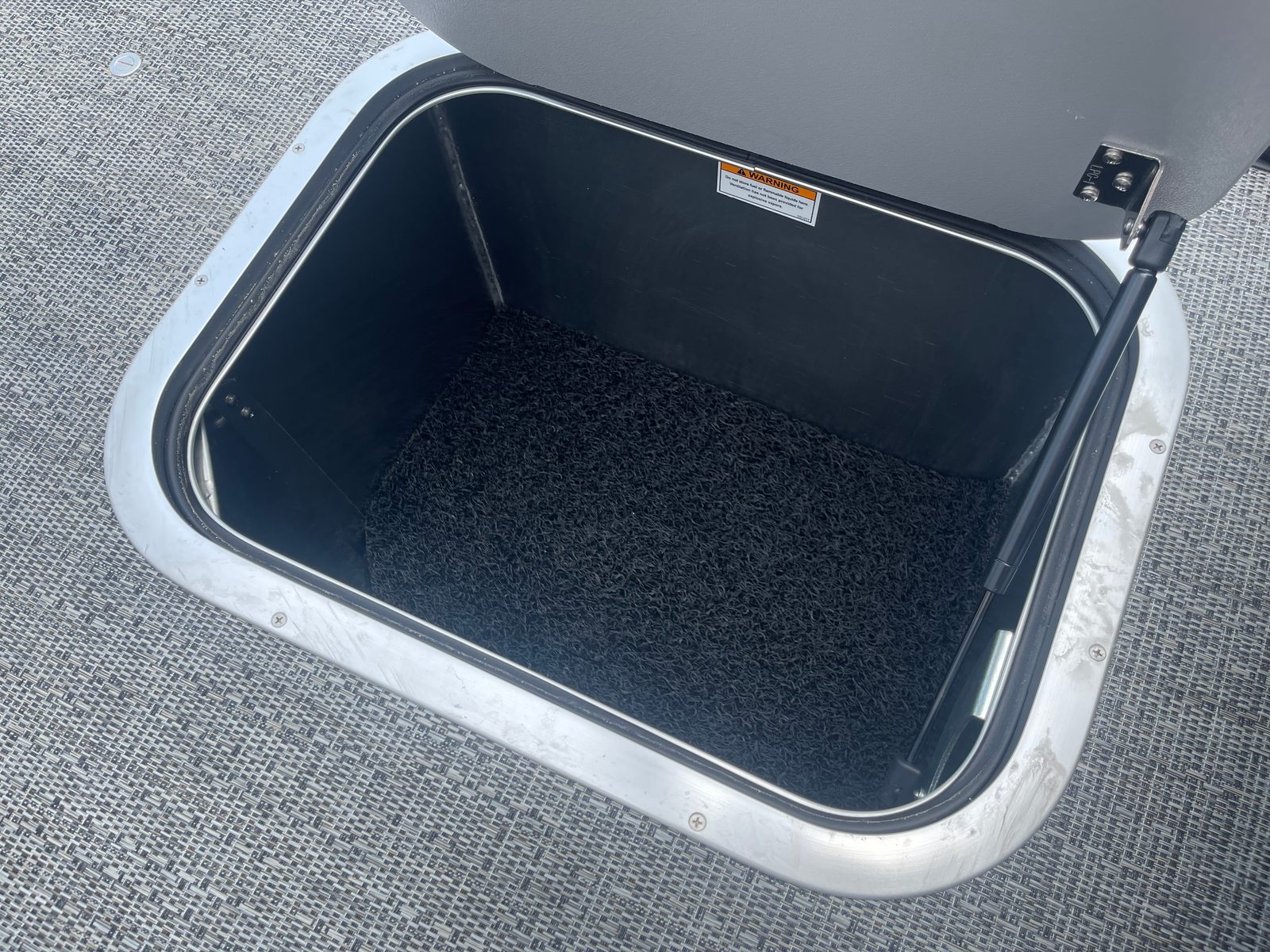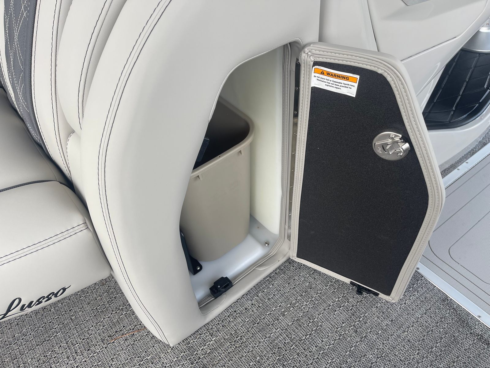 The Barletta Lusso L25M is not only about luxury and style; it is also designed with practical features that make ownership a breeze. The sturdy construction and metal jacket protectant ensure long-lasting durability, while the efficient single-engine setup offers reliable performance and straightforward maintenance. The Mercury Digital Pre-Rig for V10 streamlines the boating experience, providing intuitive controls and enhanced safety.Storage is thoughtfully integrated throughout the boat, allowing you to bring along all your essentials for a day of fun. The easy-to-clean Amore Gray flooring and durable upholstery make maintenance simple, so you can spend more time enjoying the water and less time worrying about upkeep. Docking and maneuvering are effortless, thanks to the responsive handling and advanced engineering of the Lusso L25M.