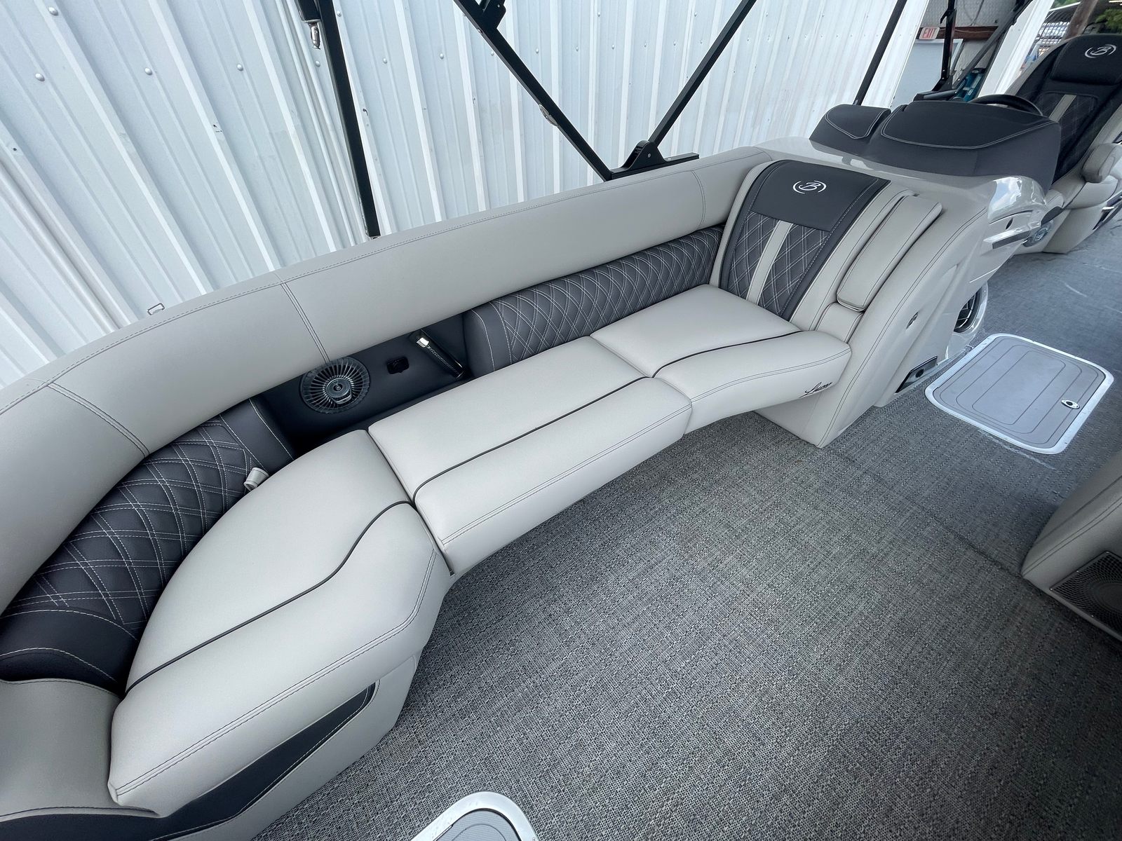 In summary, the 2025 Barletta Lusso L25M stands out as a premier pontoon boat for sale, combining cutting-edge performance, luxurious features, and unmatched versatility. With its powerful 400-horsepower engine, innovative Mercury Digital Pre-Rig for V10, double bimini system, stylish interior and exterior finishes, and thoughtful amenities like the adjustable captain’s chair and Yeti-ready cupholders, this boat is ready to deliver the ultimate on-water experience.If you are ready to elevate your boating lifestyle and enjoy the best that Barletta has to offer, the Lusso L25M is the perfect choice. Don’t miss your chance to own this exceptional pontoon boat – contact your local dealer today to learn more and schedule a viewing. Your next adventure awaits aboard the Barletta Lusso L25M!